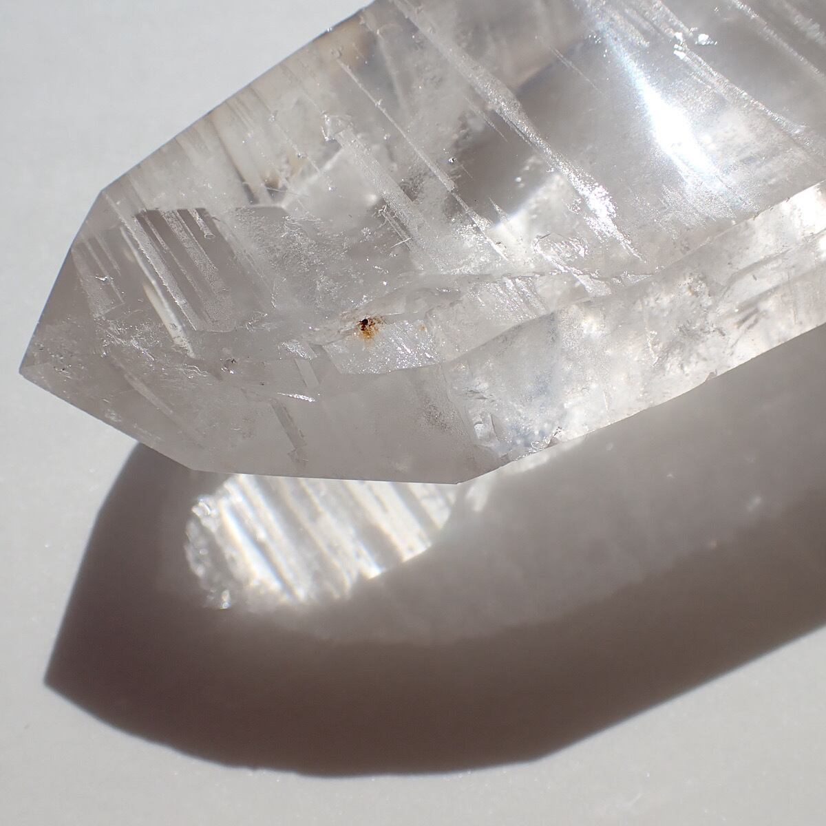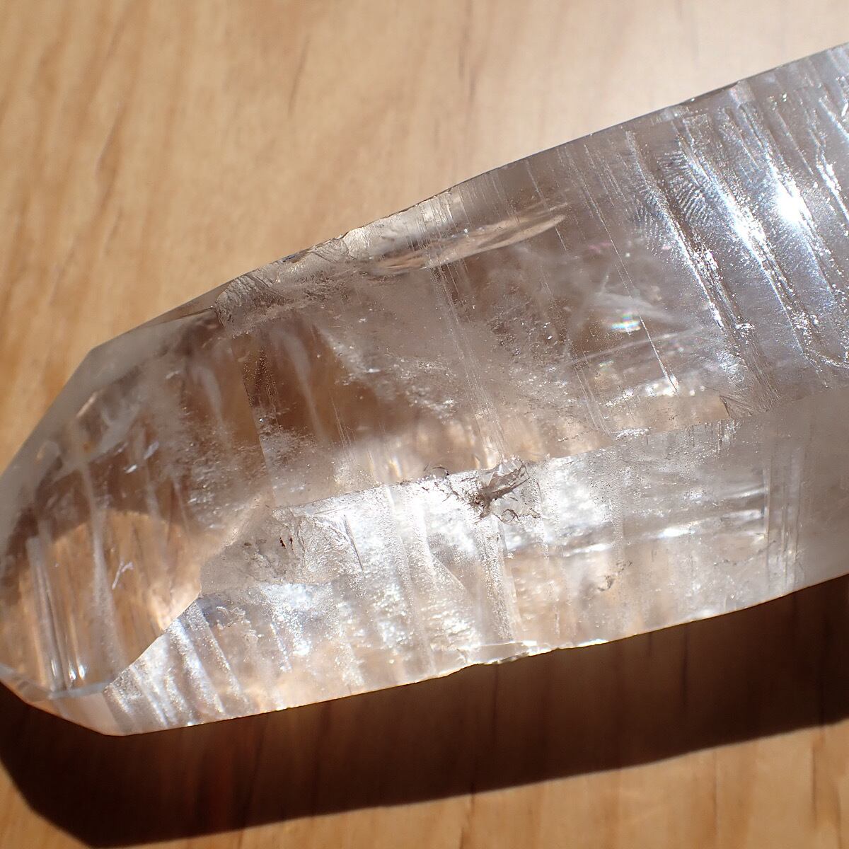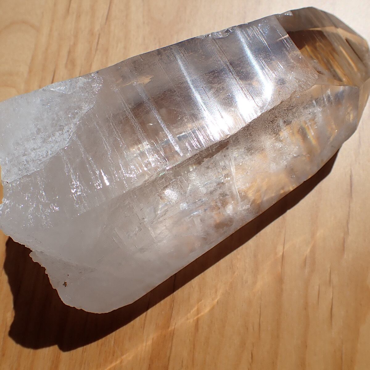ブラジル・バイーア州の大きなレムリアンシードクリスタルです。完全な原石ではなくリッジを残しつつ部分的に研磨されているタイプのクリスタルだと思います。ブラジルでも産地によってエネルギーが少しずつ違うように感じるレムリアンシードですが、バイーア産からは精霊たちの音楽といいますかメロディが聞こえてくるような感覚があります。このクリスタルから私が感じるエネルギーは「放出」です。体のつま先から頭頂に上下を向けるのではなく、例えばハート(心臓)なら、石の底部をハートに当てて前に放出するような感じで使うと良いと思います。またこの石自体が本当に美しい光を放っているように思います。それはどこか金字塔のように水晶が祀られていた場所のようであり、尊い光のようで、レムリアのエネルギーも感じる事ができるのではないでしょうか。置いているだけであらゆるものを癒してくれる石なのかもしれません☆必要な方に届きますように。