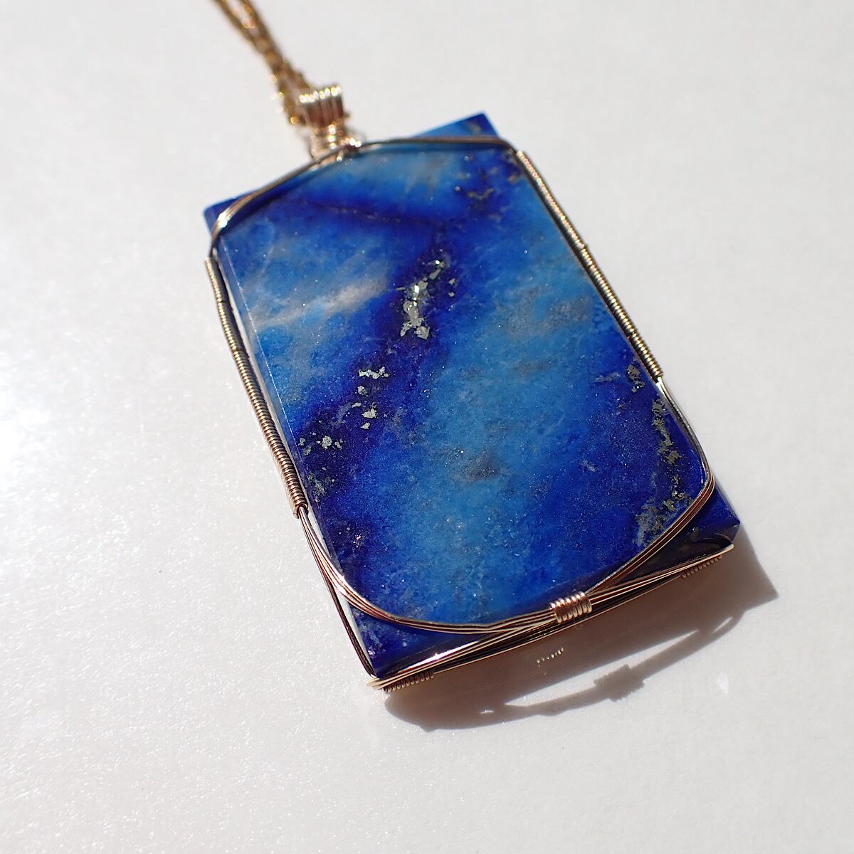 ラピスラズリのスクエアの女神巻きジュエリーです。模様の入り方がまるで宇宙のような、別次元で空を舞う天使やスピリットたちを見ているような美しさです。