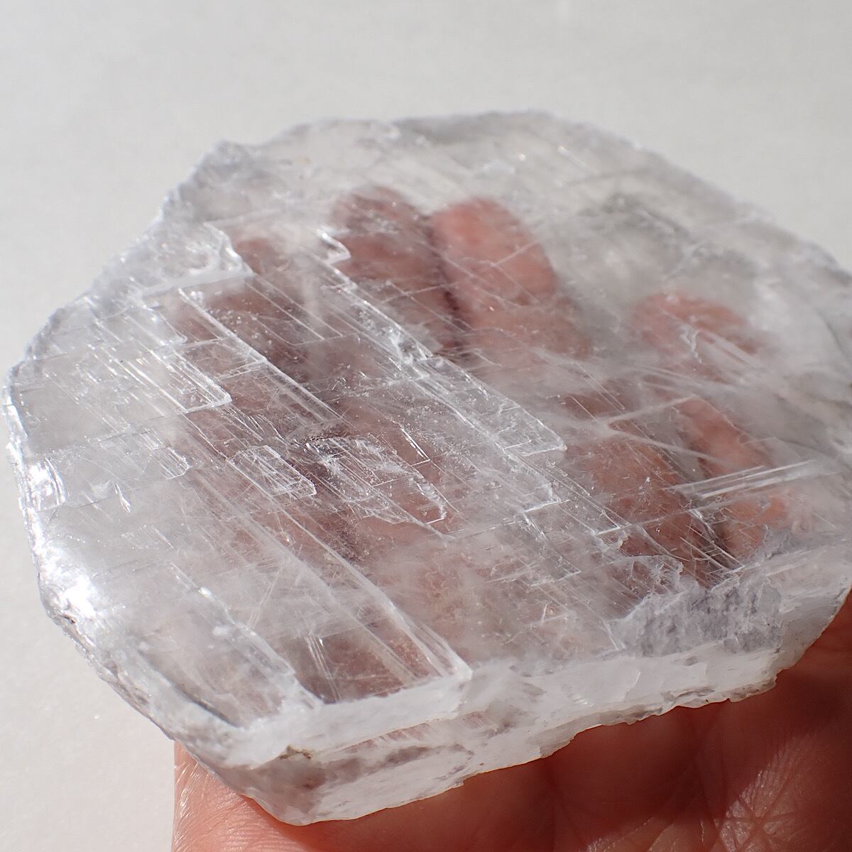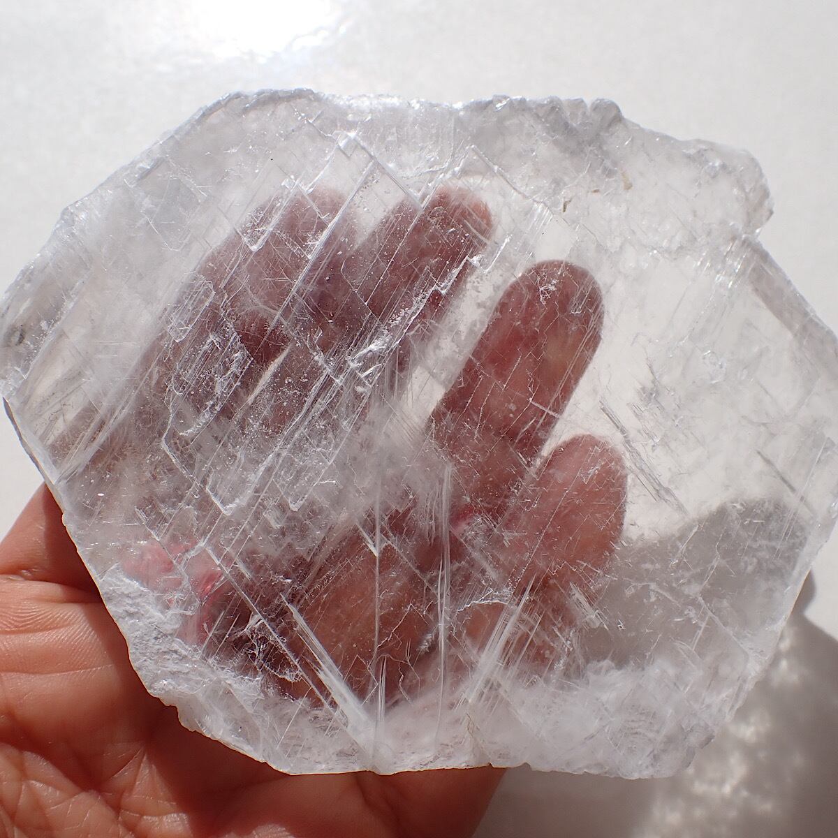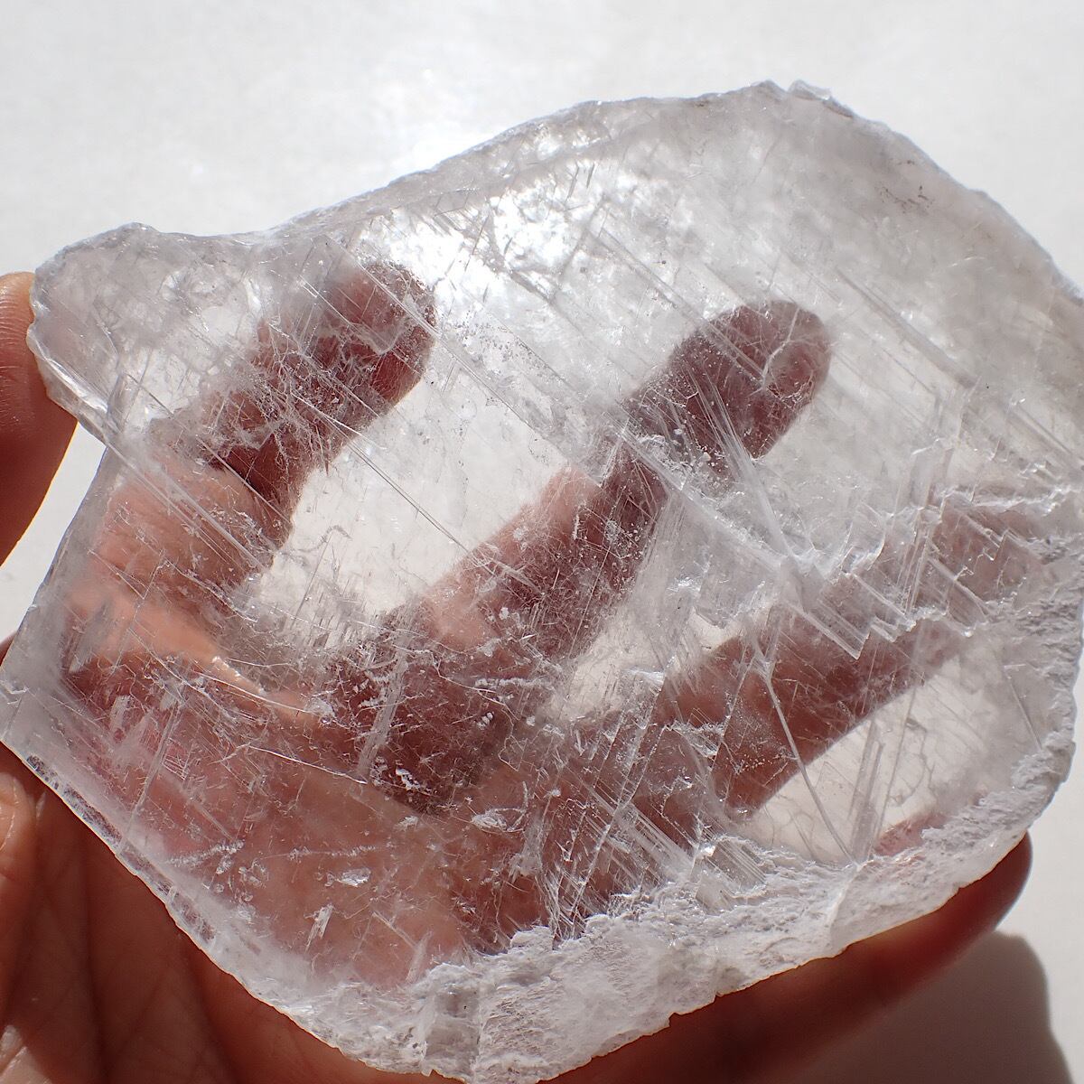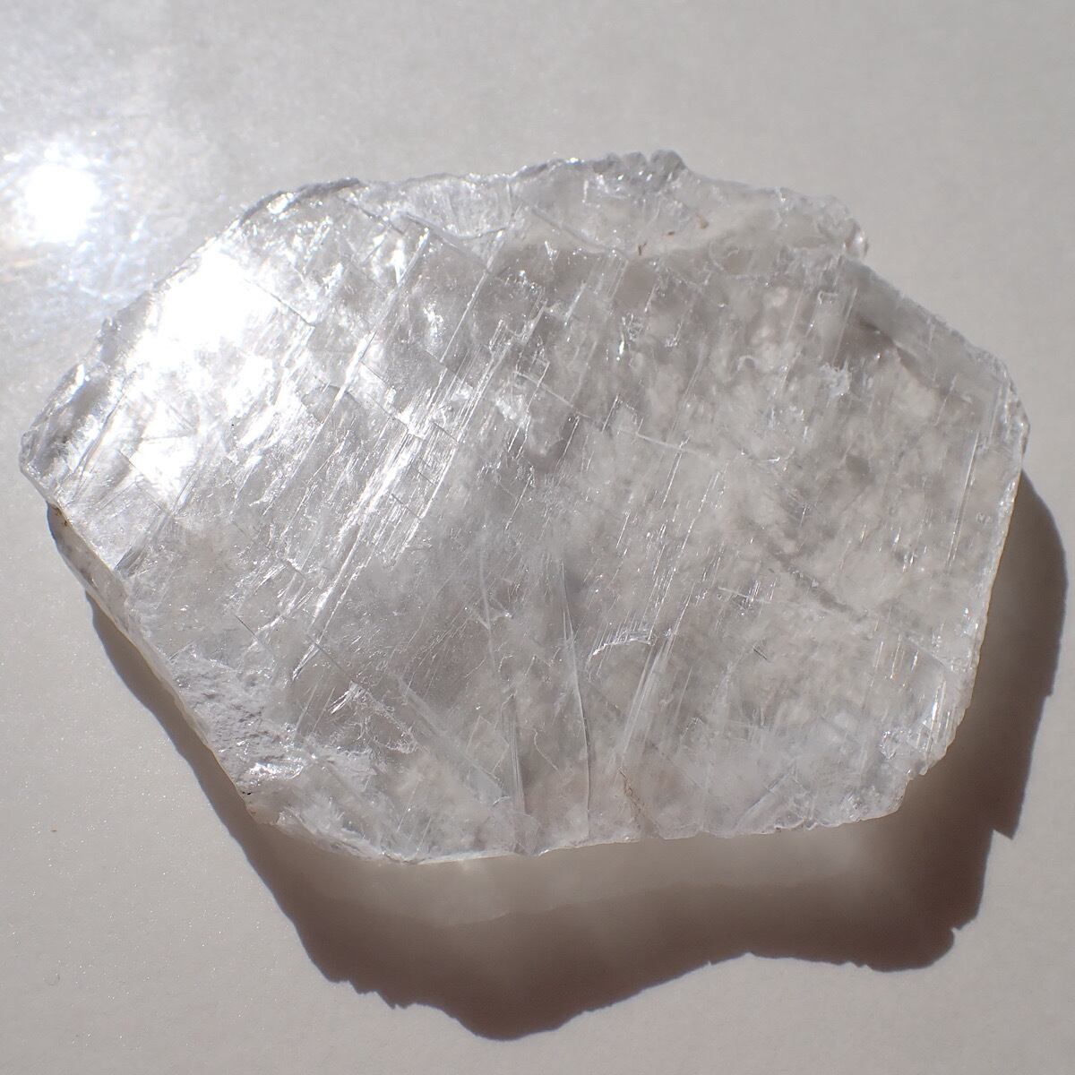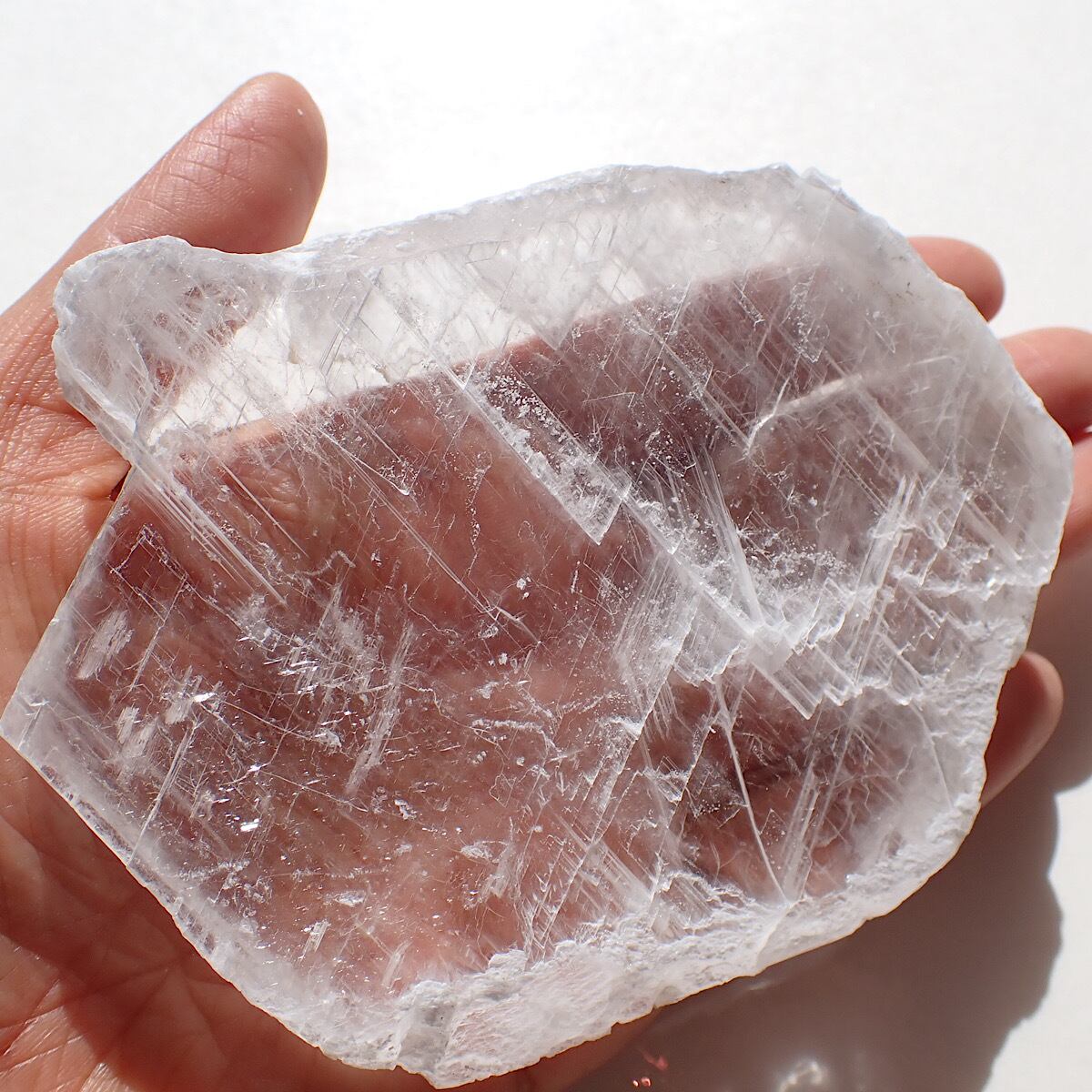 ザンビア産のセレナイトです。セレナイトは非常に繊細で表面など剥がれやすく取り扱いには注意が必要ですが、その浄化力、ヒーリング力は素晴らしいです。アクセサリーや小さな石を置いての浄化や部屋のインテリアにおすすめのプレートタイプです。