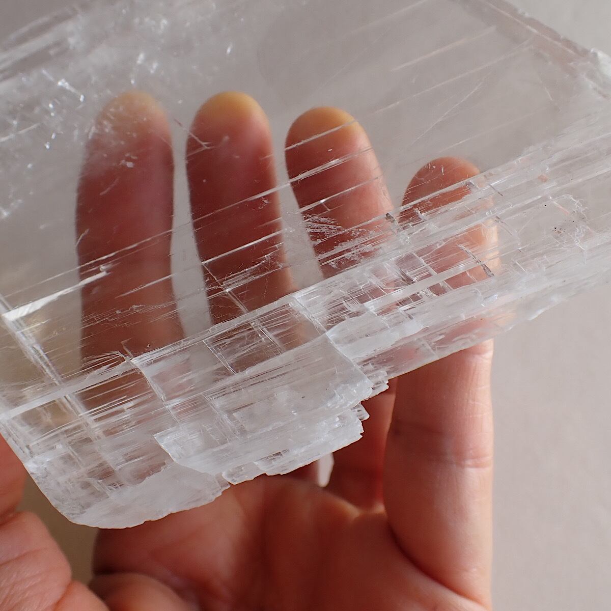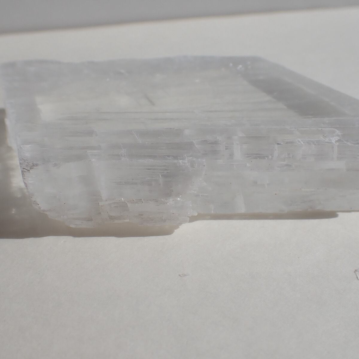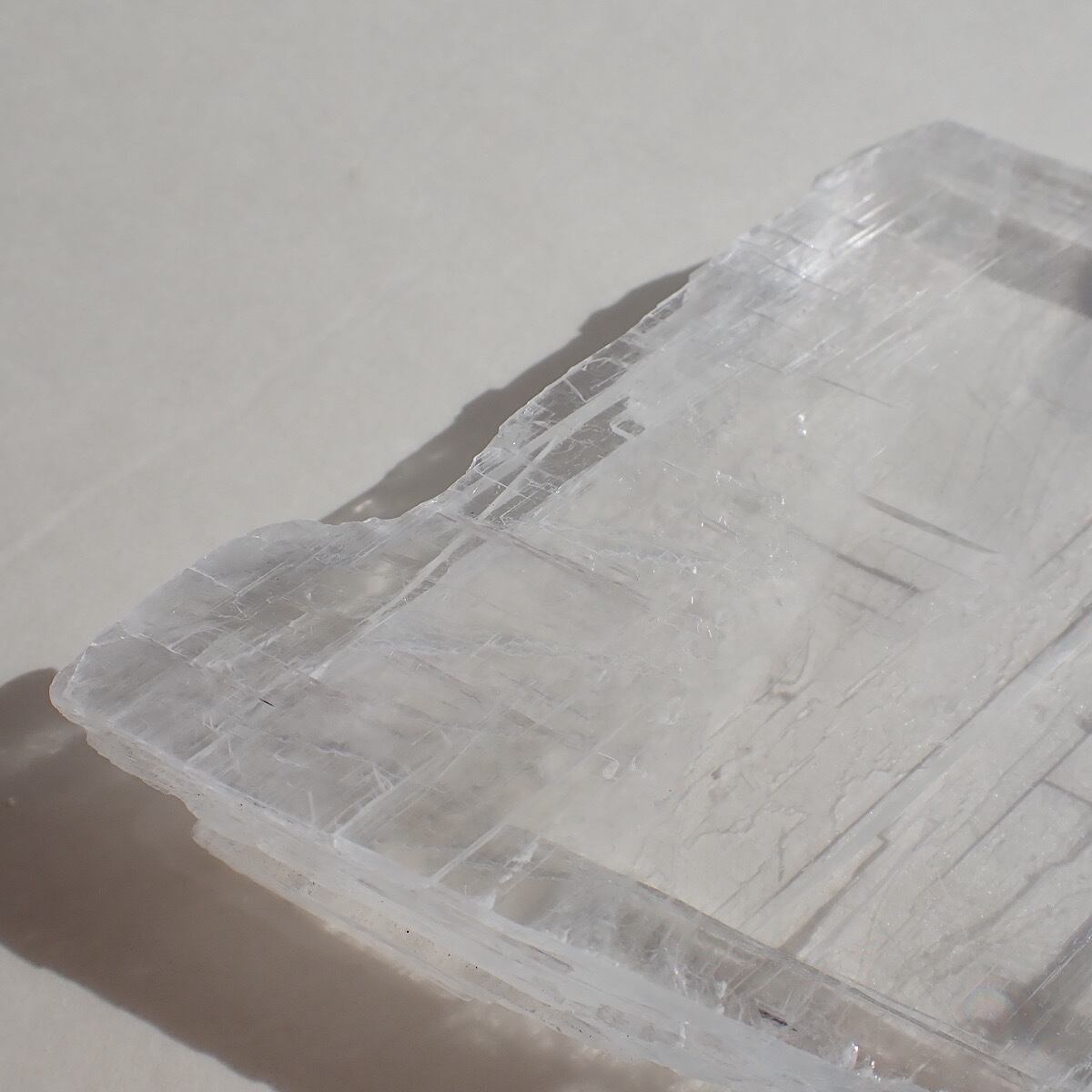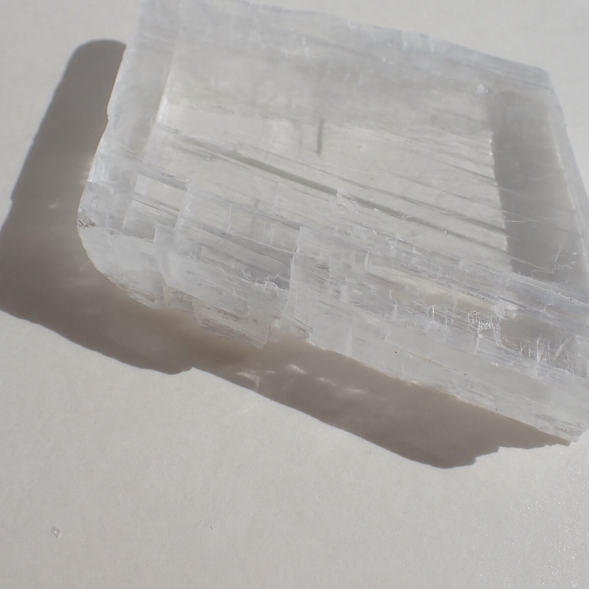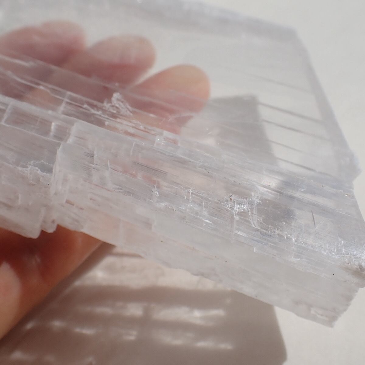 ザンビア産のセレナイトです。セレナイトは非常に繊細で表面など剥がれやすく取り扱いには注意が必要ですが、その浄化力、ヒーリング力は素晴らしいです。アクセサリーや小さな石を置いての浄化や部屋のインテリアにおすすめのプレートタイプです。