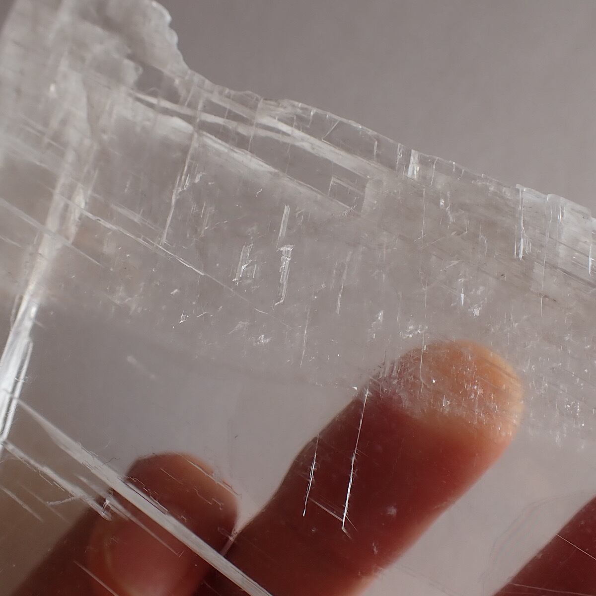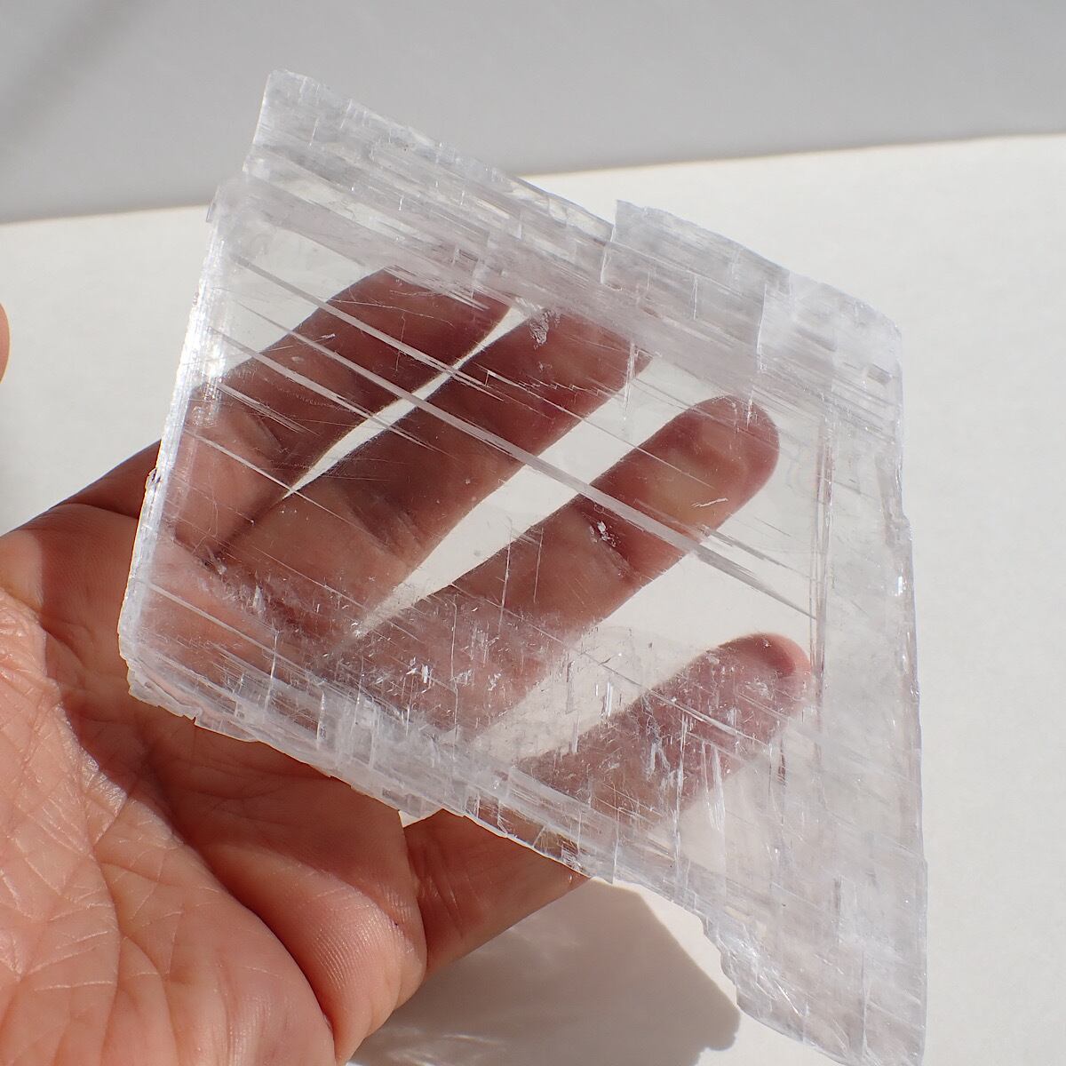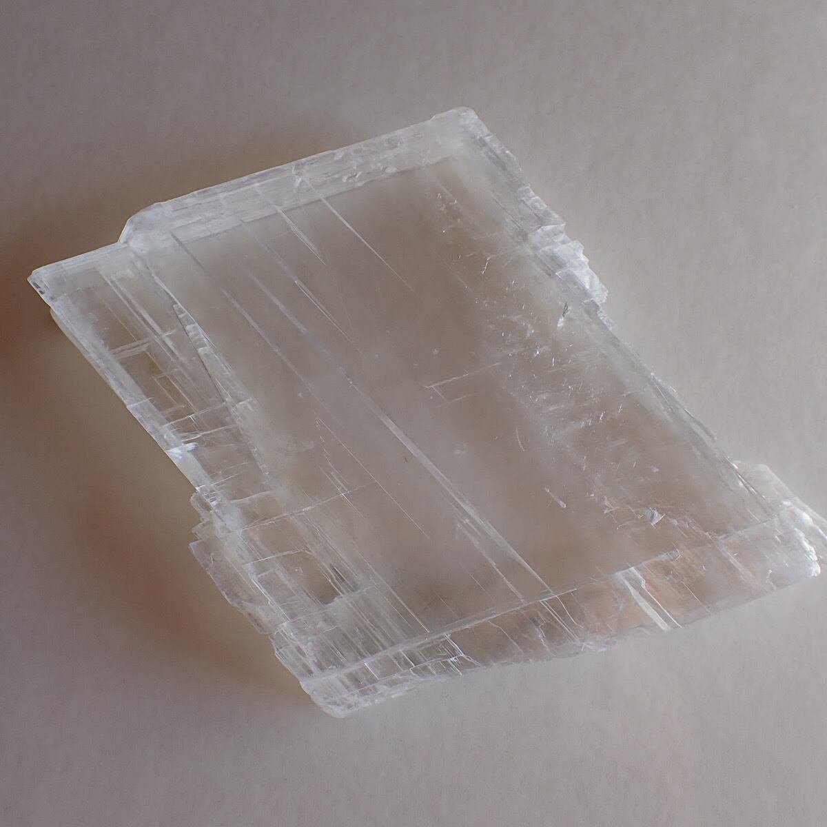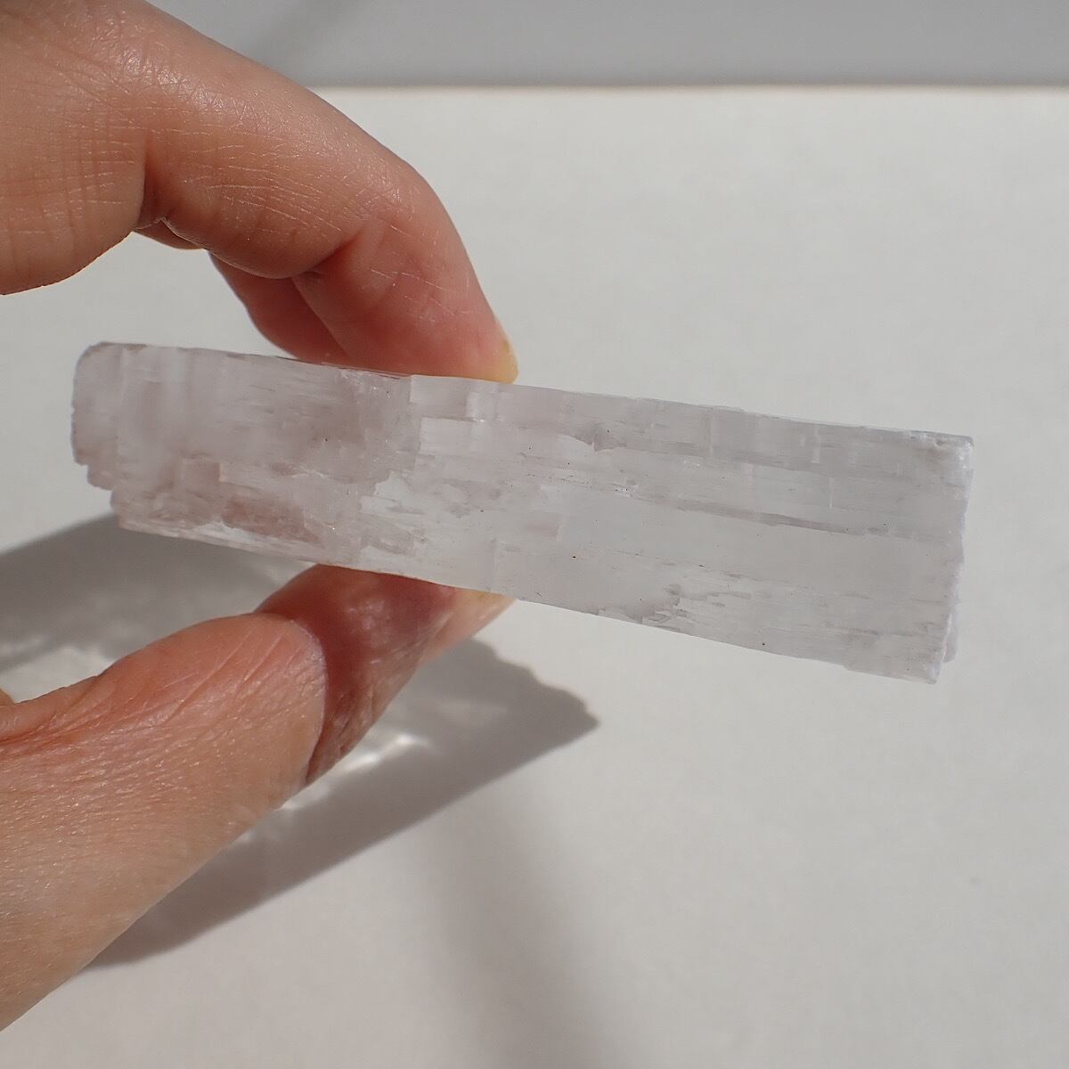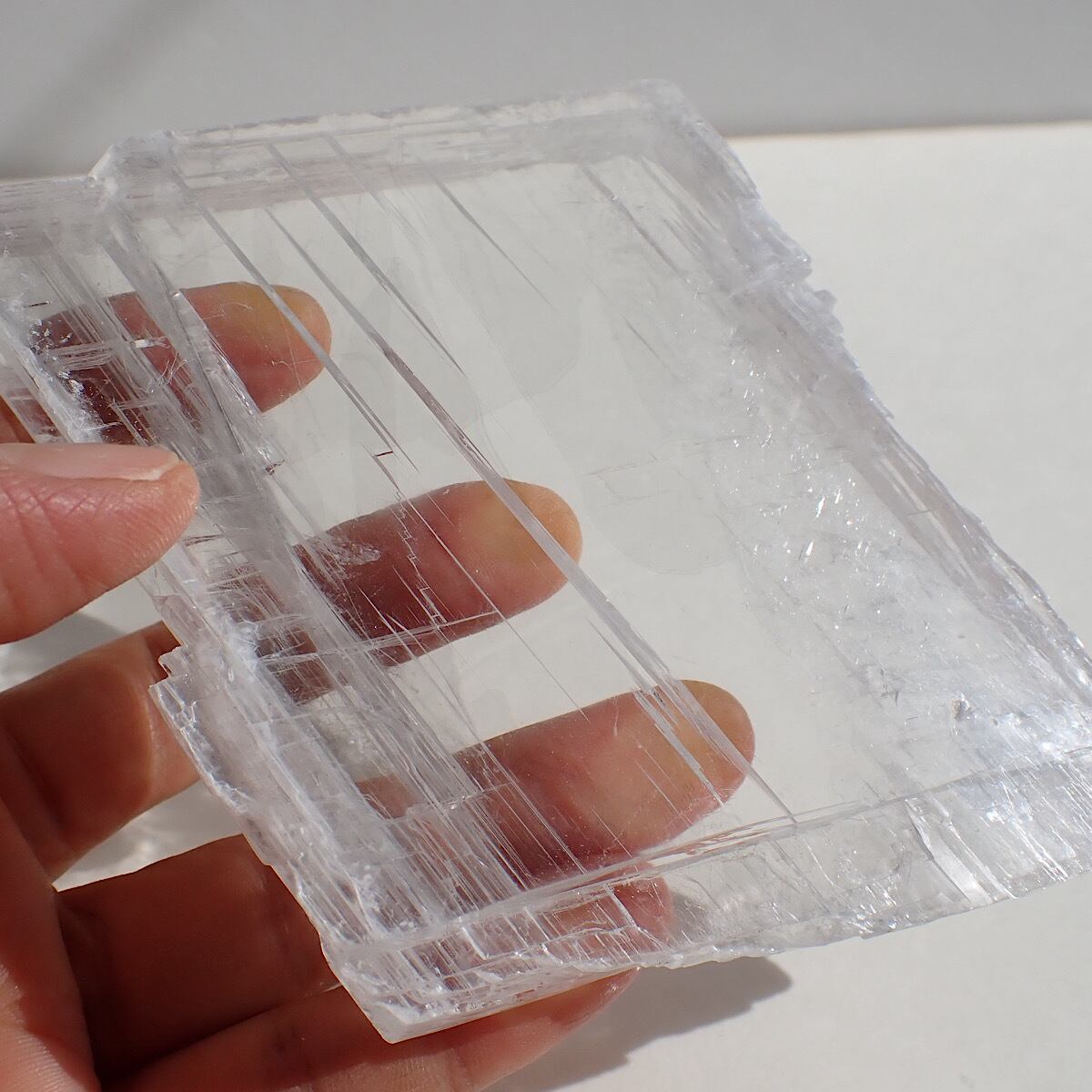 ザンビア産のセレナイトです。セレナイトは非常に繊細で表面など剥がれやすく取り扱いには注意が必要ですが、その浄化力、ヒーリング力は素晴らしいです。アクセサリーや小さな石を置いての浄化や部屋のインテリアにおすすめのプレートタイプです。