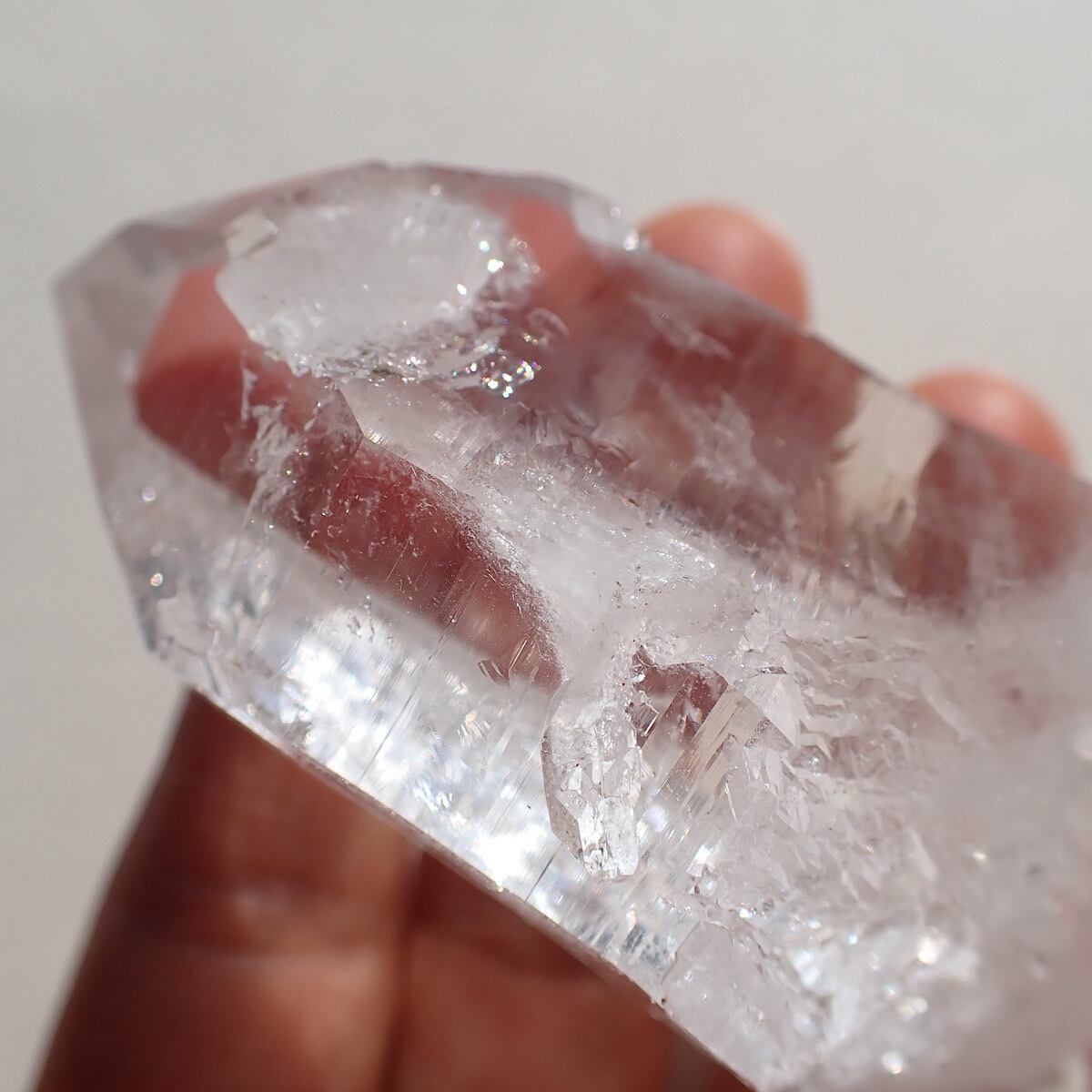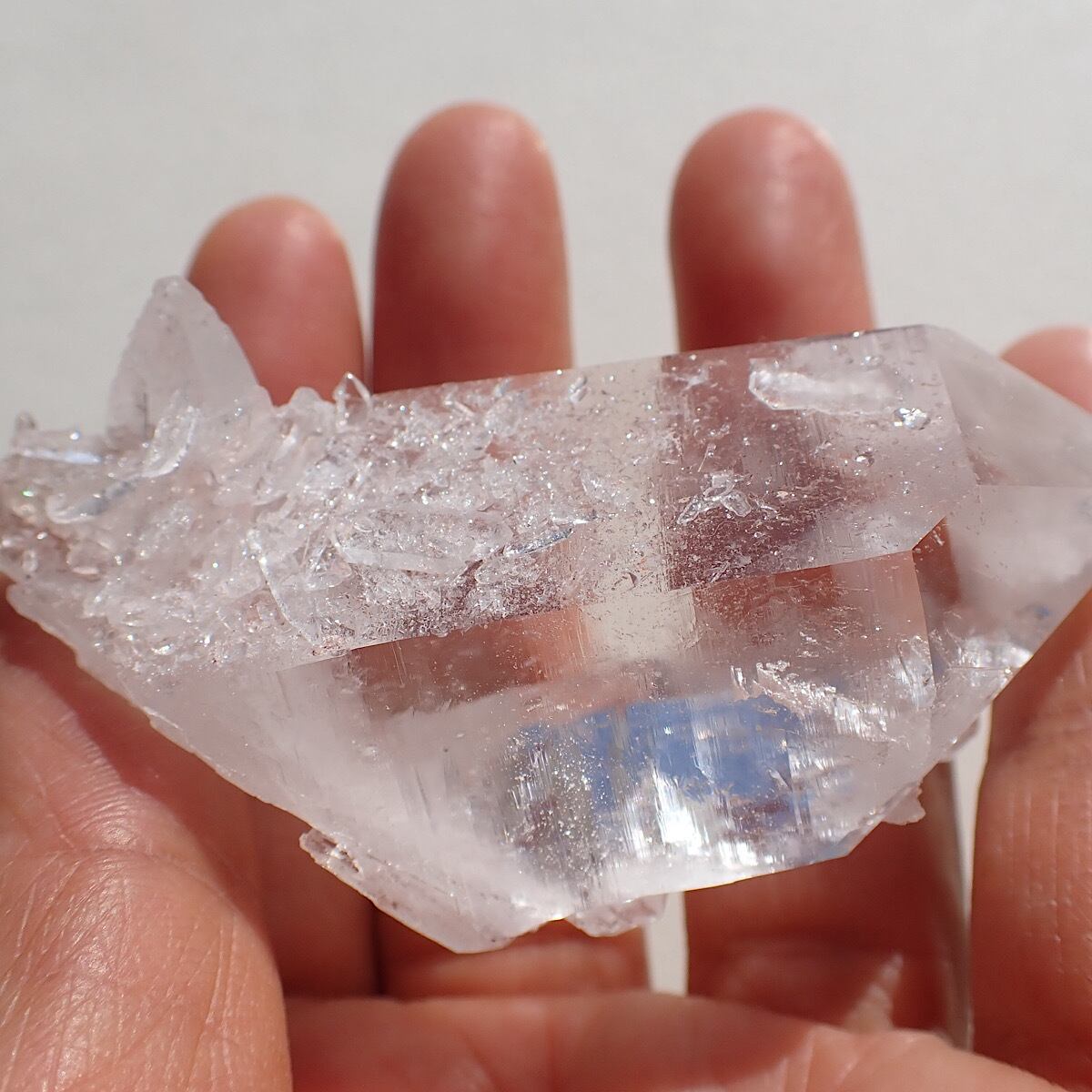 コロンビアレムリアンシードシードです。表面についている細かな水晶が少しピンク色に見えます。クリスタルはあらゆるものを調整する力がありますがこちらも体や精神のズレを調整してくれそうな印象です。頭が疲れているような時にも良いのではないでしょうか。