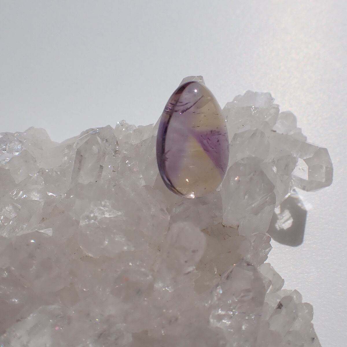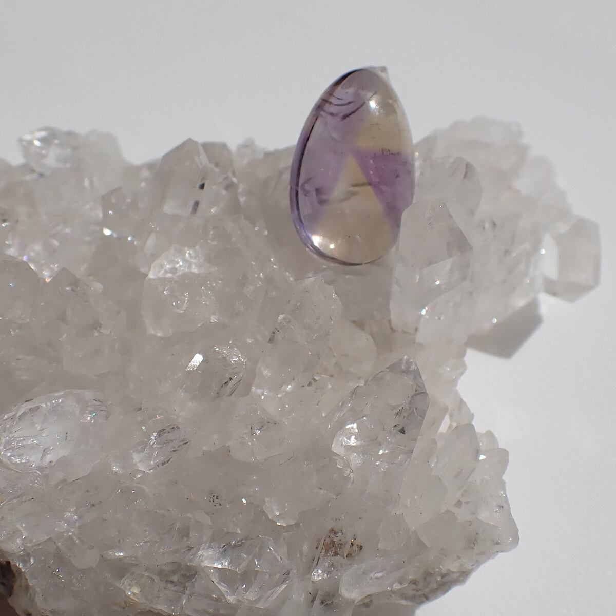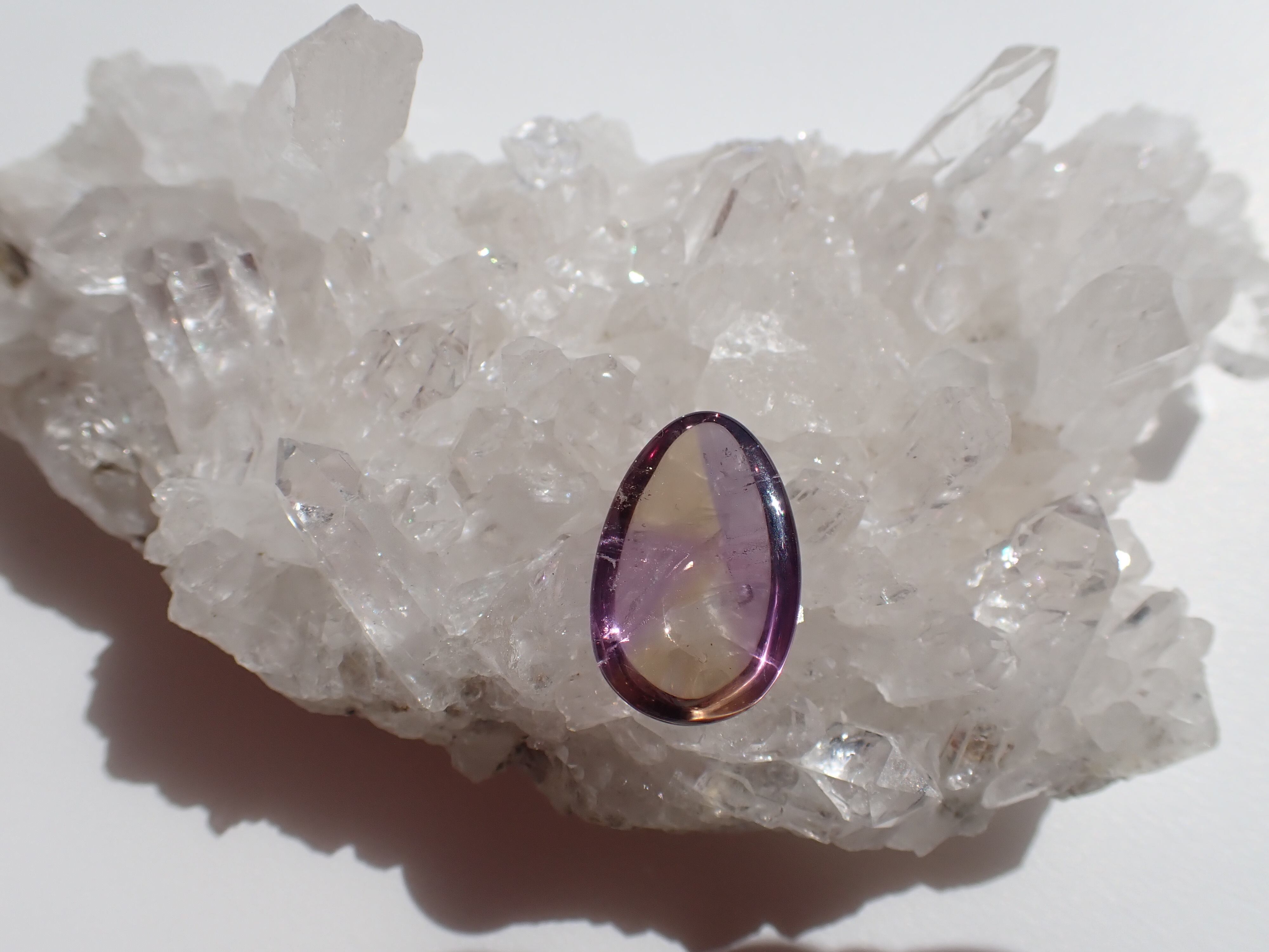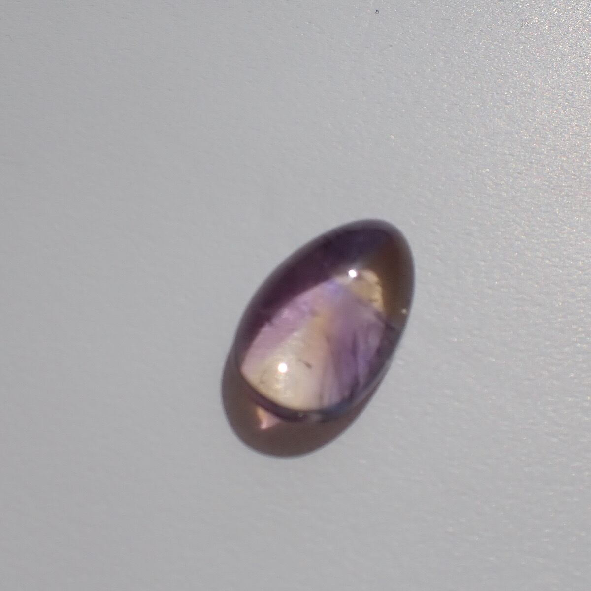 ブラジルのアメトリンです。紫と黄色のコントラストが割とはっきりしていて模様を描いたように見えます。個性的で何か主張しているような面白いルースです☆