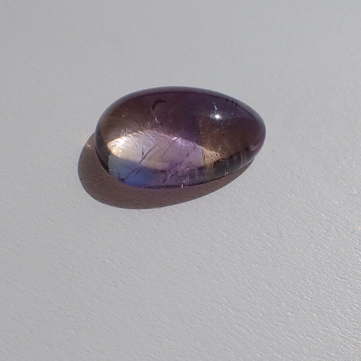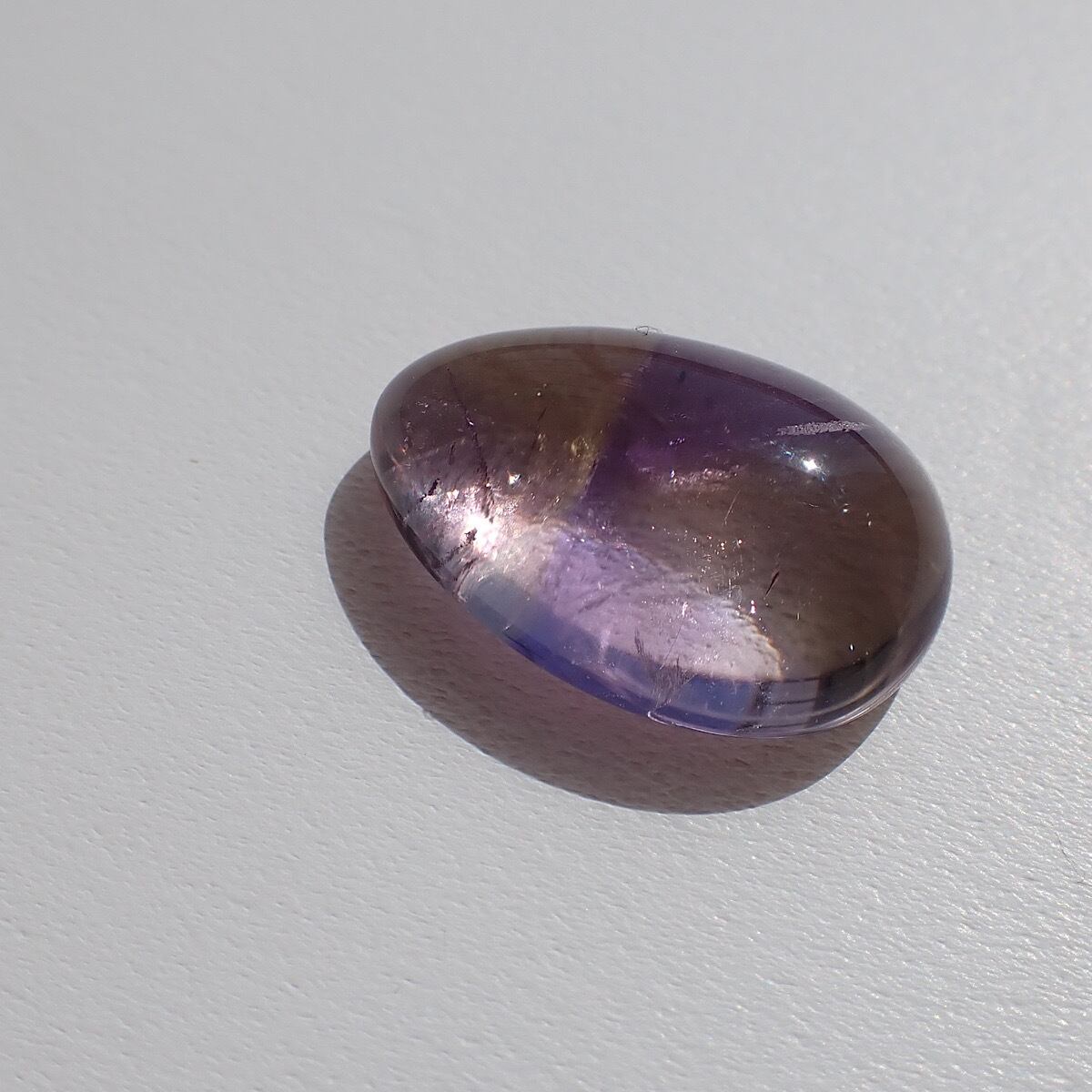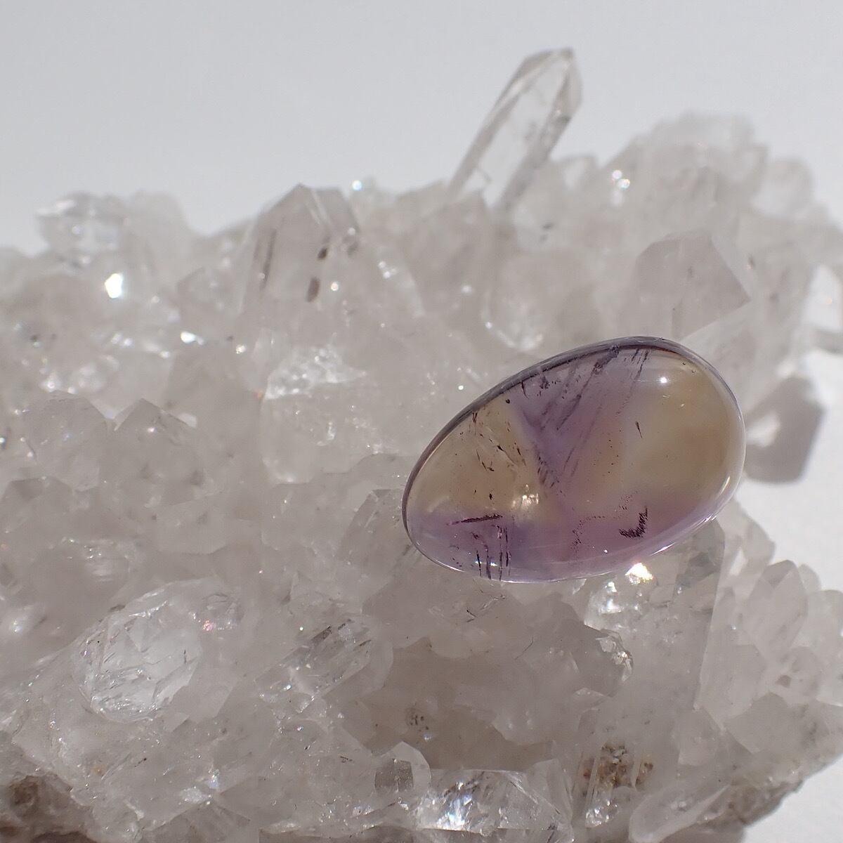 ブラジルのアメトリンです。紫と黄色のコントラストが割とはっきりしていて模様を描いたように見えます。個性的で何か主張しているような面白いルースです☆