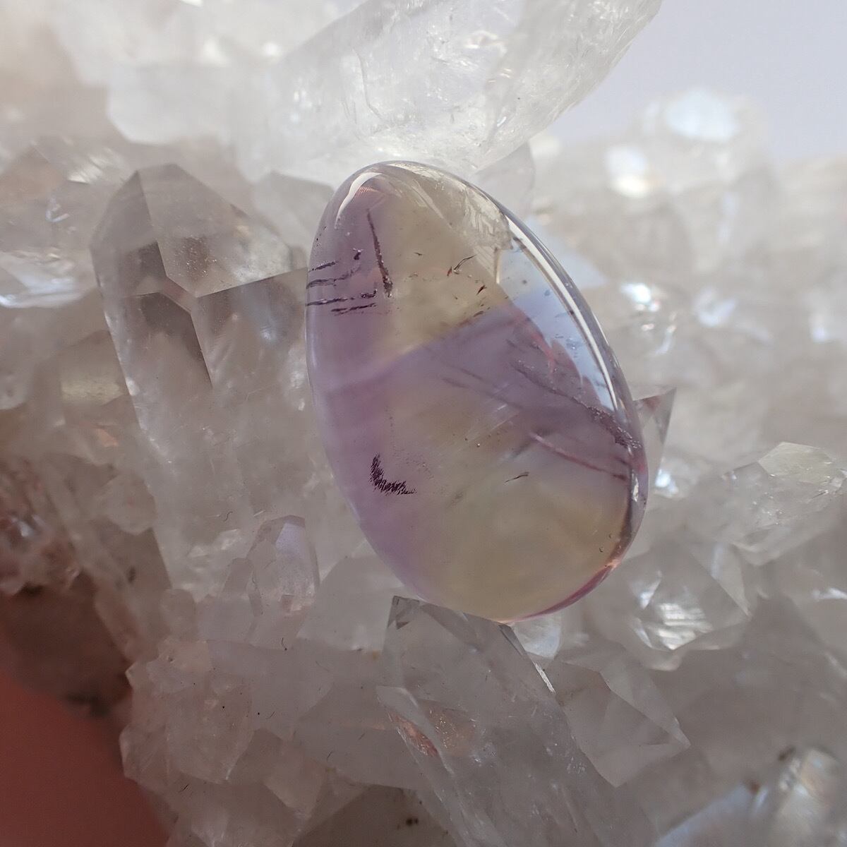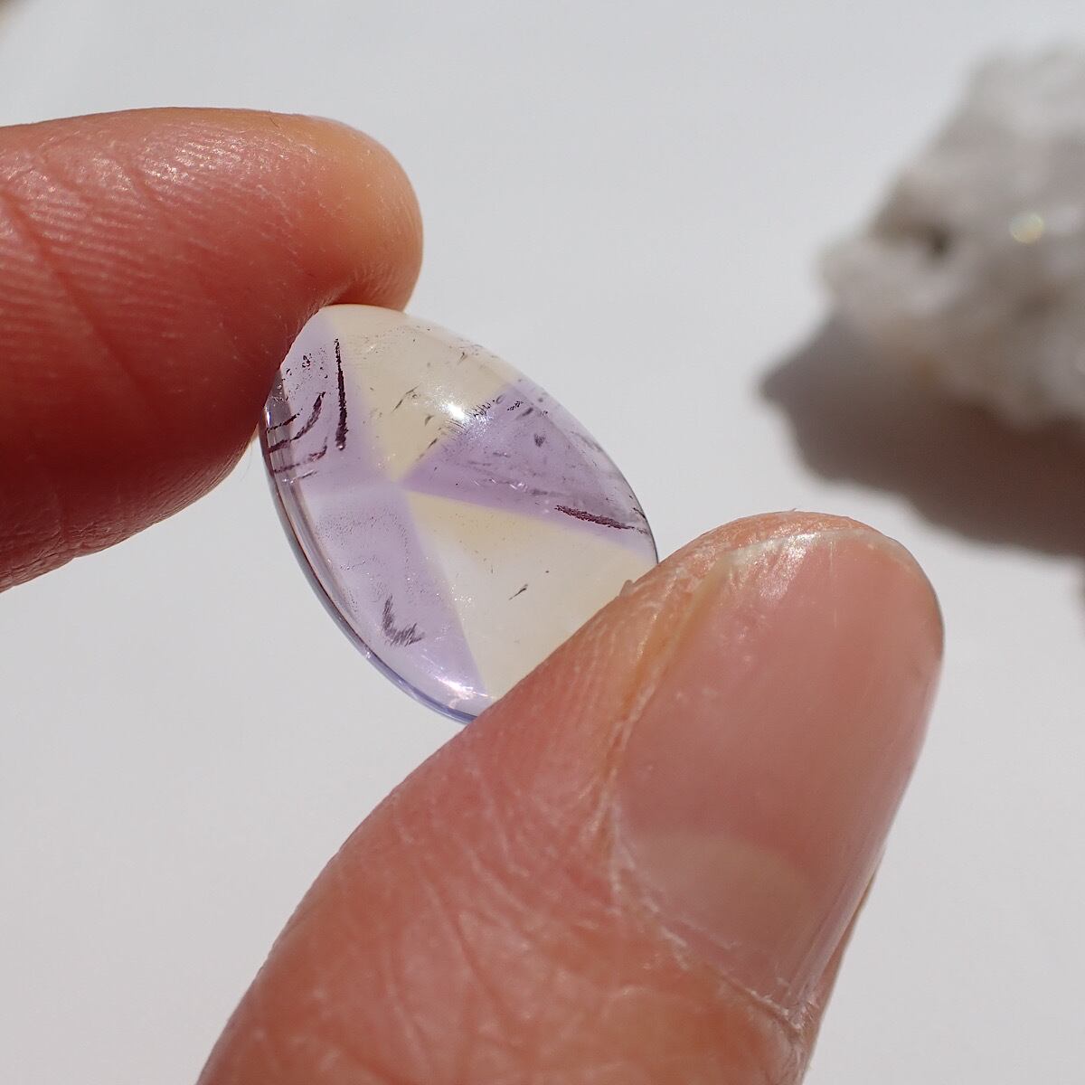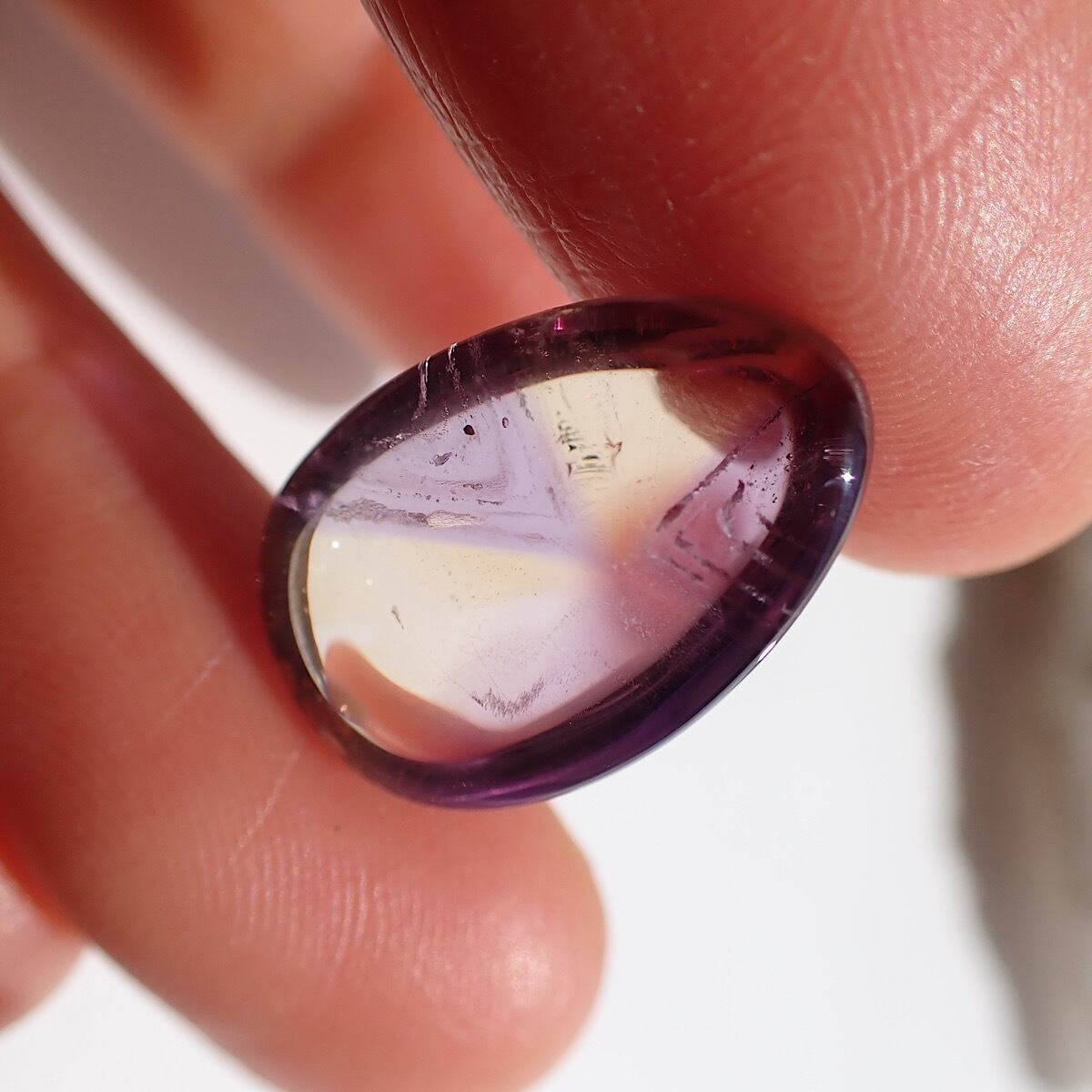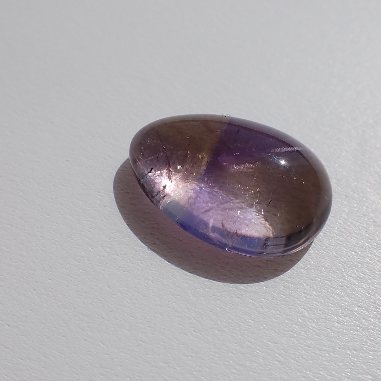 ブラジルのアメトリンです。紫と黄色のコントラストが割とはっきりしていて模様を描いたように見えます。個性的で何か主張しているような面白いルースです☆