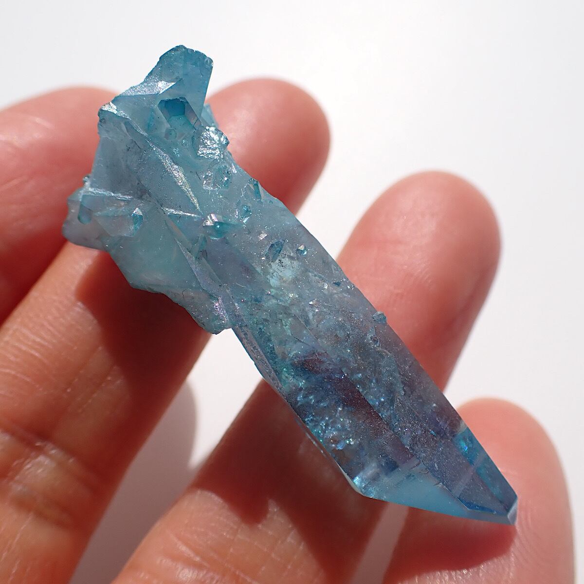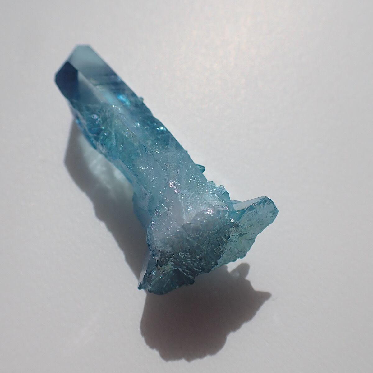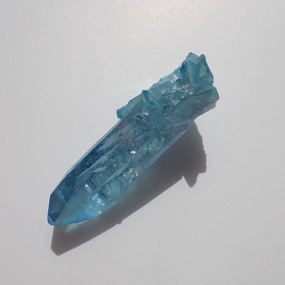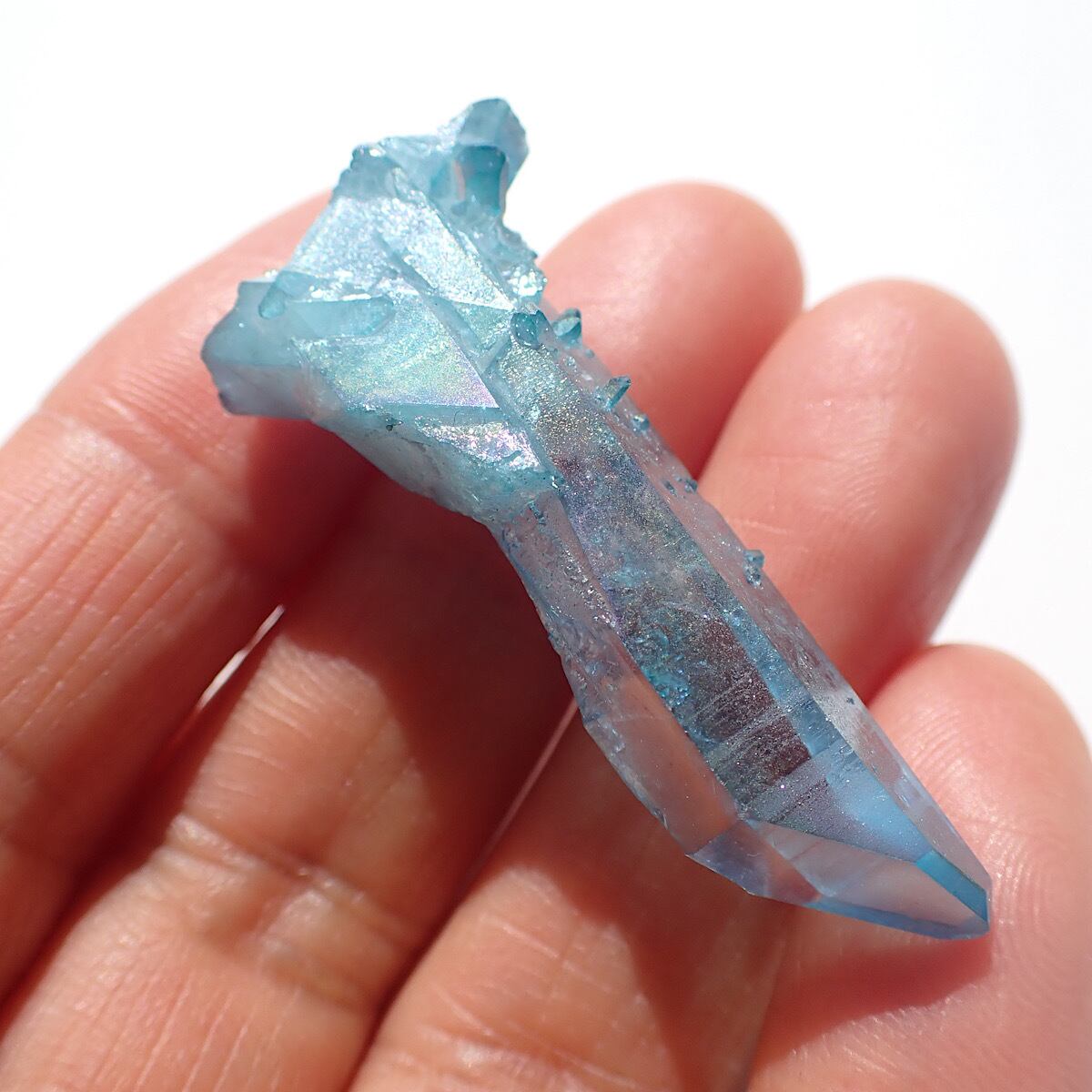 アメリカ、アーカンソー産のアクアオーラです。上部にでっぱりがあるポイント水晶です。