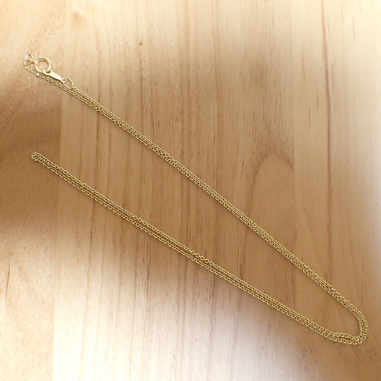 14金ゴールドフィルドの50cmのあずきチェーンです。シンプルで合わせやすいので1つあると重宝しますよ(^ ^)