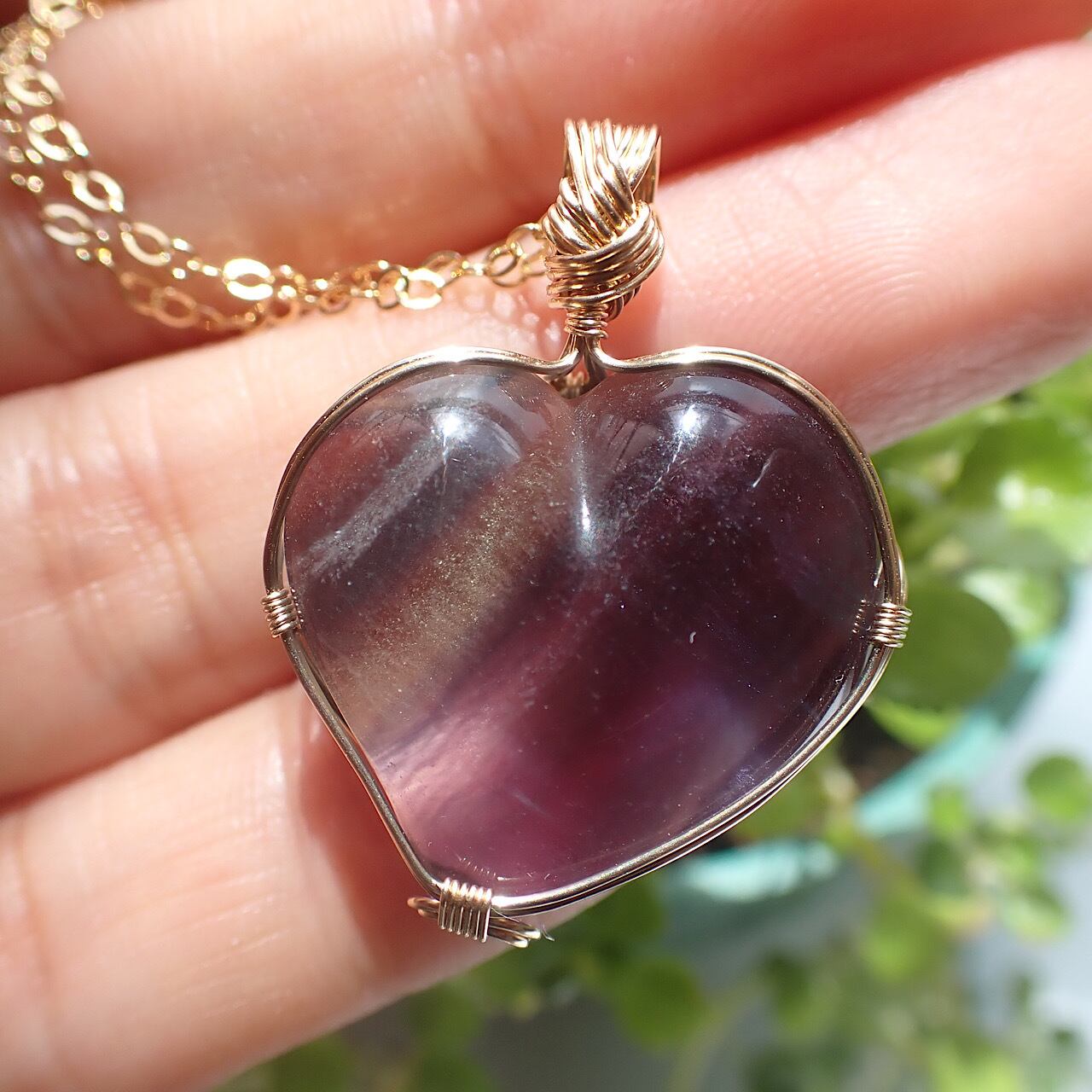 アシンメトリーなハートのフローライトを女神巻きペンダントトップにしました。レインボーカラーのフローライトに黄色が入っていてかわいいです。小さくてかわいいのですが安定したエネルギーを放出してくれるように感じます(*^^*)