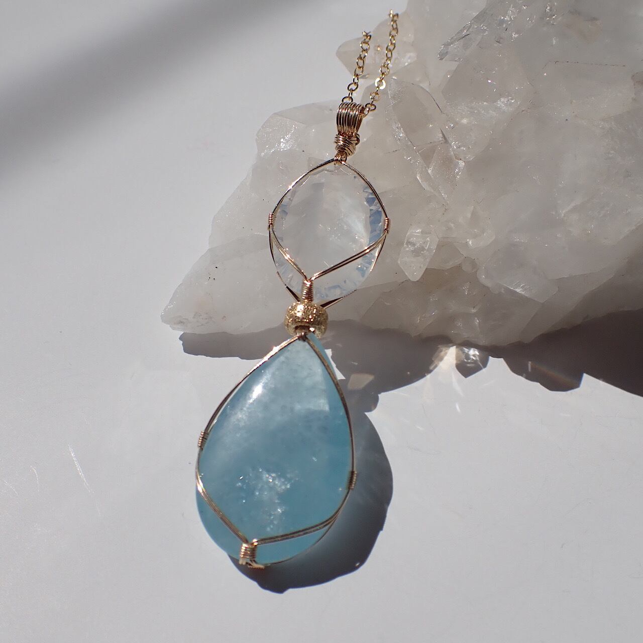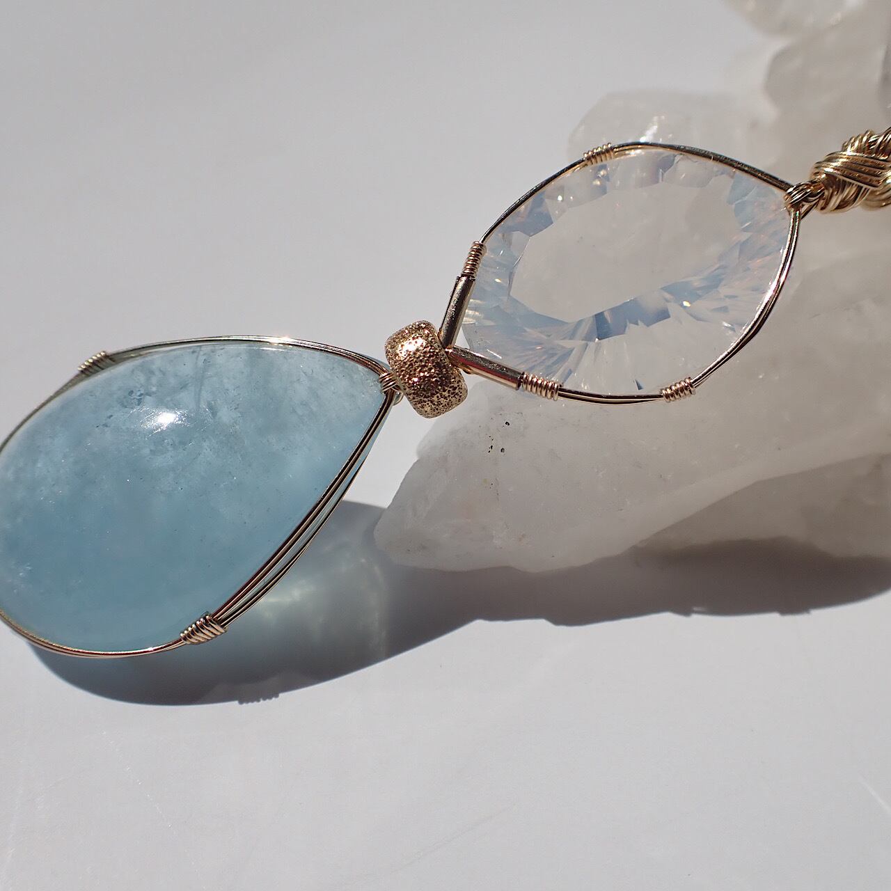女神巻き®︎ミルキークォーツとアクアマリンのツインペンダントトップ