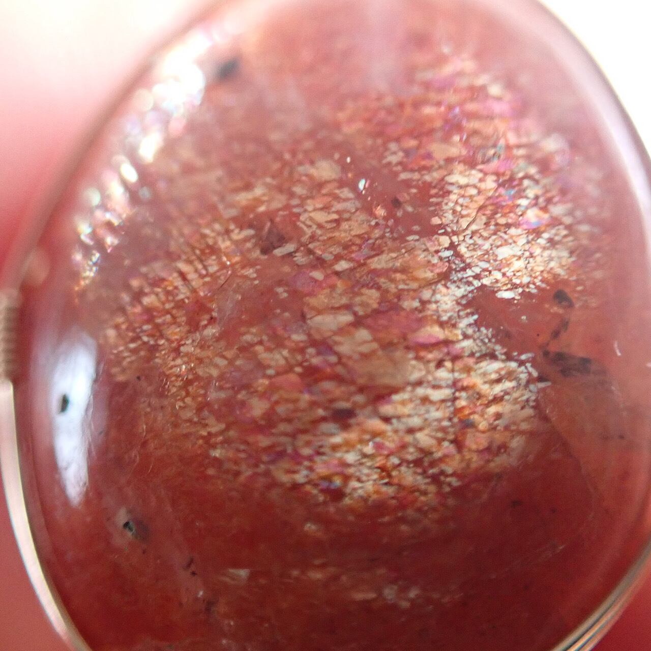 光が凝縮されているようなサンストーンです。キラキラと混ざり合う強い光が色んな輝きを見せてくれて楽しい気分になります。とっても綺麗です☆