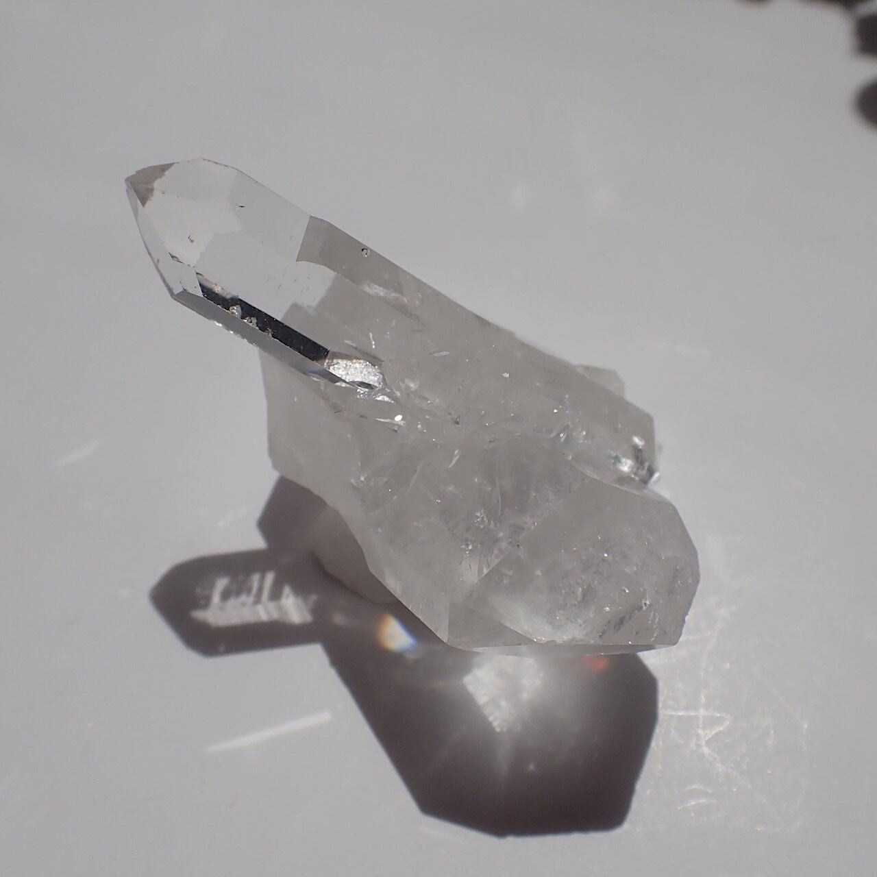 ブラジル・ミナスジェライス州トマスゴンサガ産の小さなクリスタルです。小さいですがトマスゴンサガ水晶の透明感、清らかなエネルギーが見る者を癒してくれます☆こちらは2つのポイントが重なり合っていてかわいいです(*^^*)