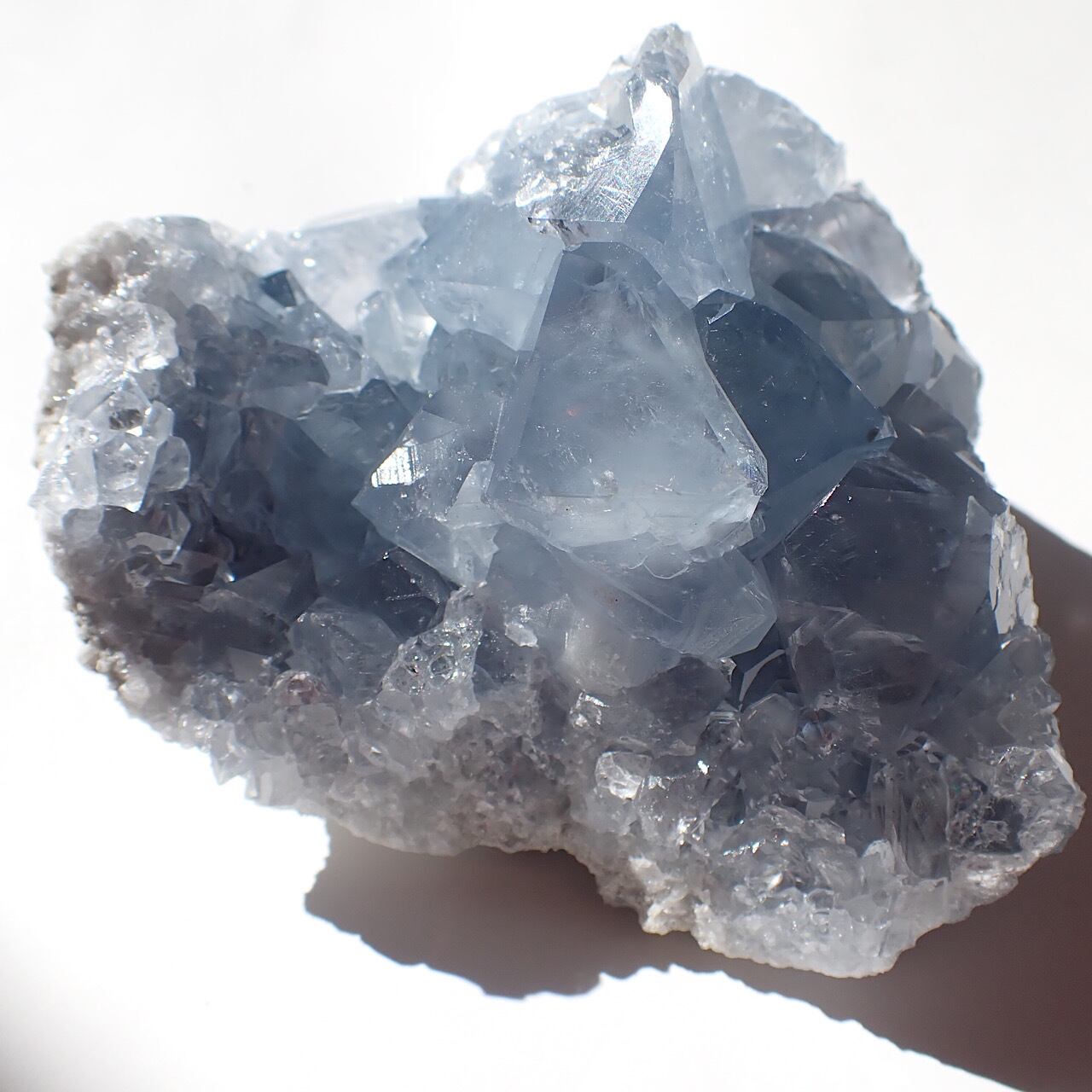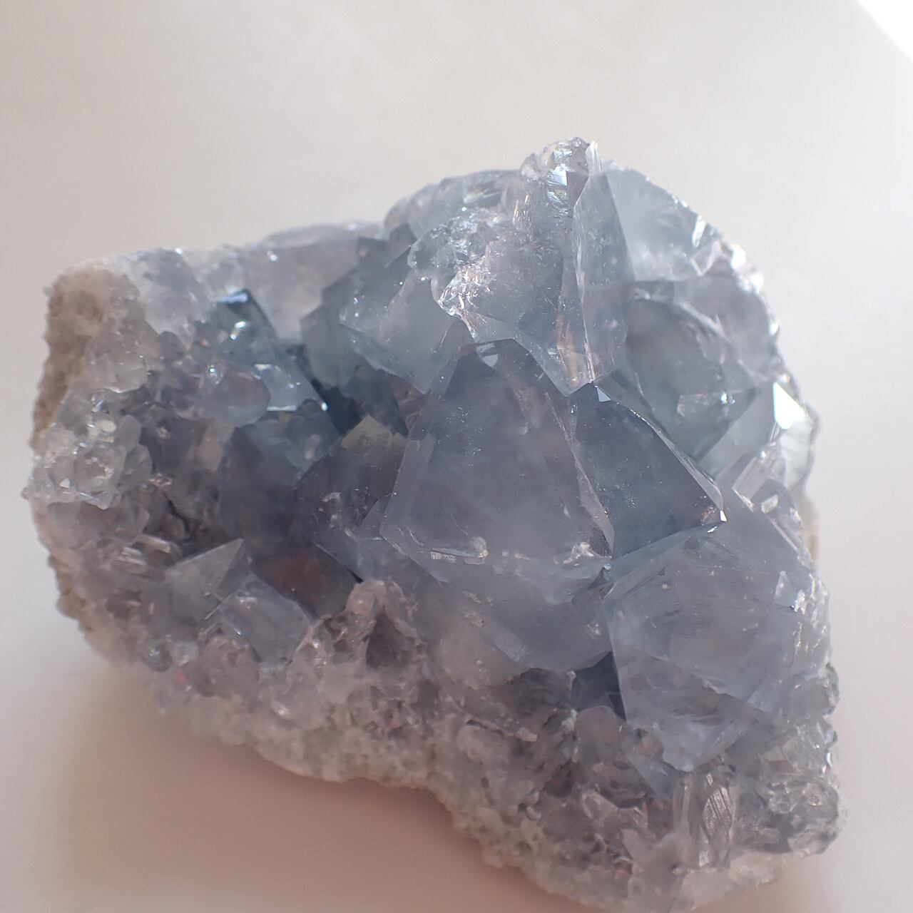 セレスタイトのクラスターです。キラキラしています。どのセレスタイトも松果体が反応するような細かな振動、スピリチュアルなエネルギーを発しているように感じます。必要な石が、必要な人に届くように私の元に来てくれていると思っていますが、セレスタイトは多くの方が必要としている石なのかもしれません☆