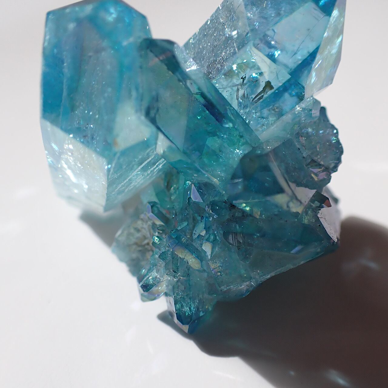 小さなアクアオーラ原石です。人間の力が加わったクリスタルは既に「意図」の力が入っていることでより強い力やサポート力を発揮するのではないかと個人的には思っています。