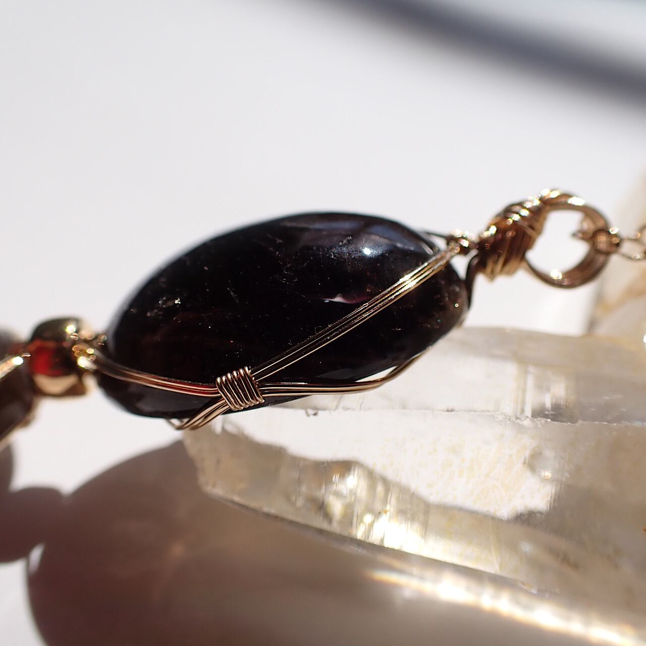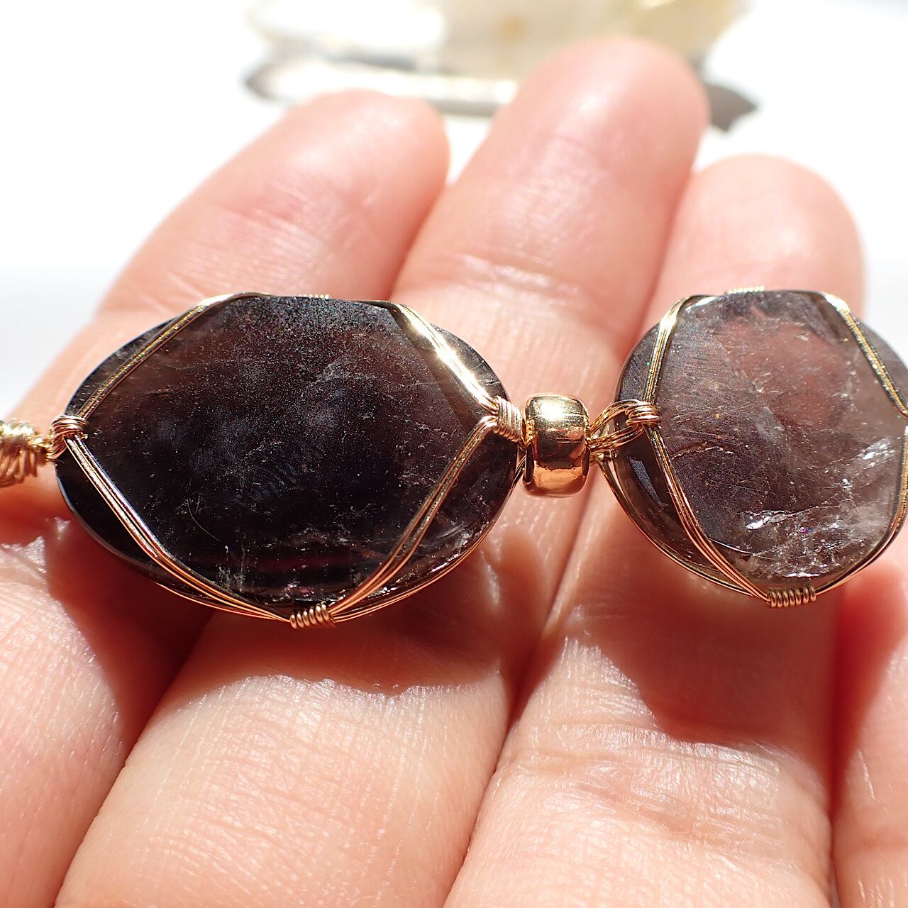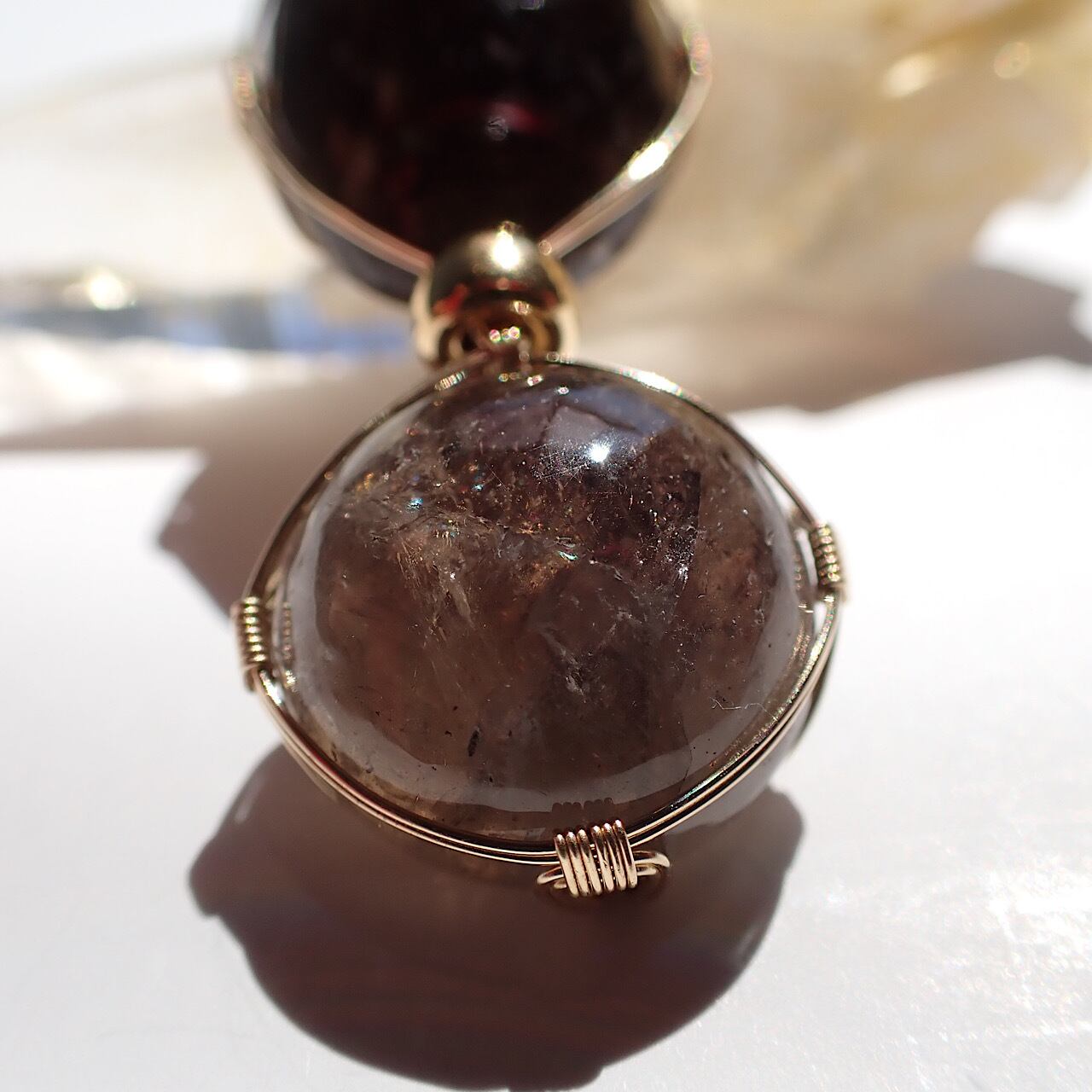 山梨県黒平産の水晶をツインペンダントにしました。色を見るとスモーキーかな?という感じですが、水晶という名称で販売されているのでそのまま記載させて頂きます。