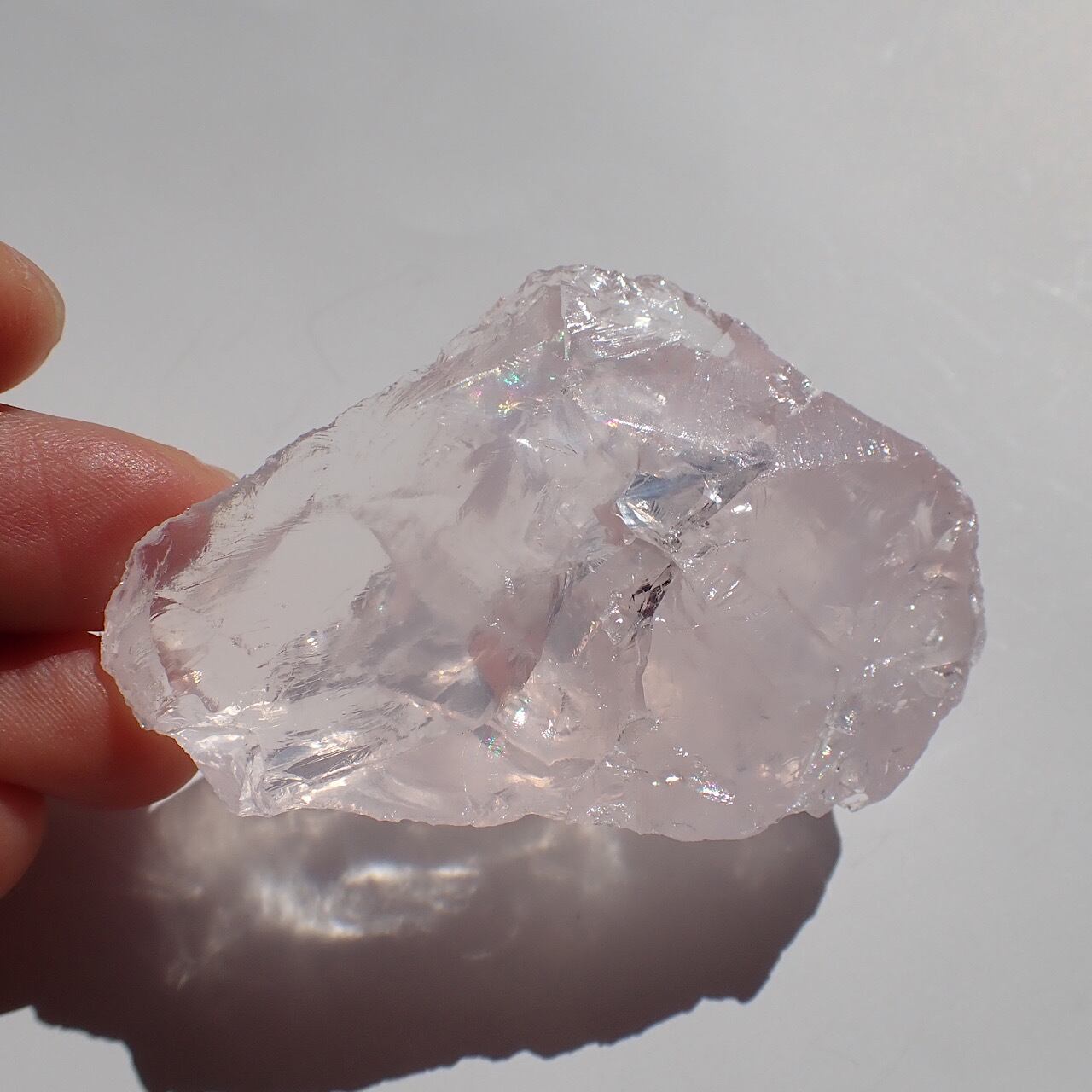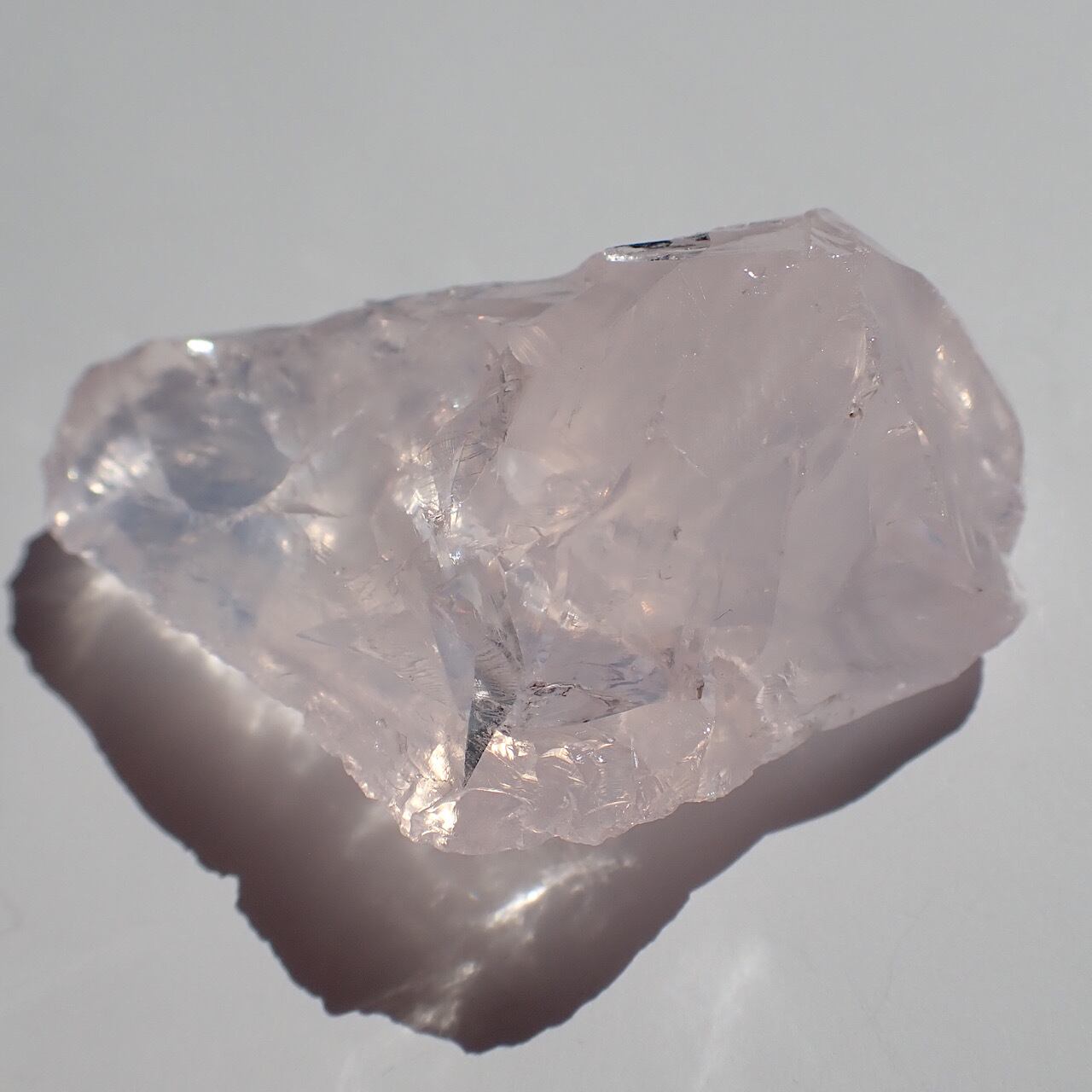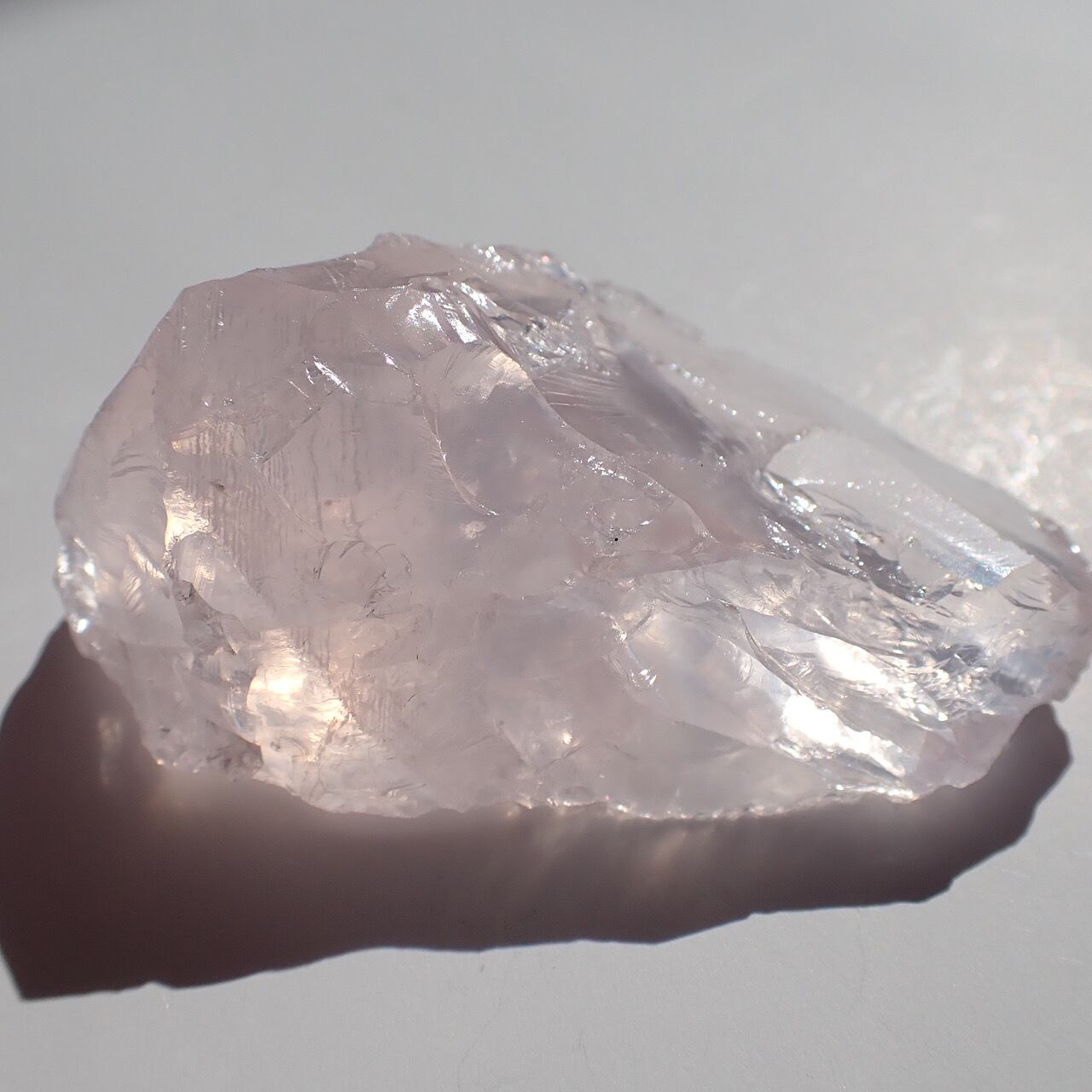 ブラジル・ミナスジェライス州のローズクォーツ原石です。同じタイミングで今回ローズクォーツ原石を2つ出しています。両方とも虹が出ていて、クリアなピンクが私はとても好きです。持ち歩いたり、握ってエネルギーを感じたり、横になってチャクラヒーリングをしたりと…ローズクォーツは本当におすすめです。ローズクォーツはハートを開く石です。またどんな自分も受け入れさせてくれる大きな愛の石でもあると思います。