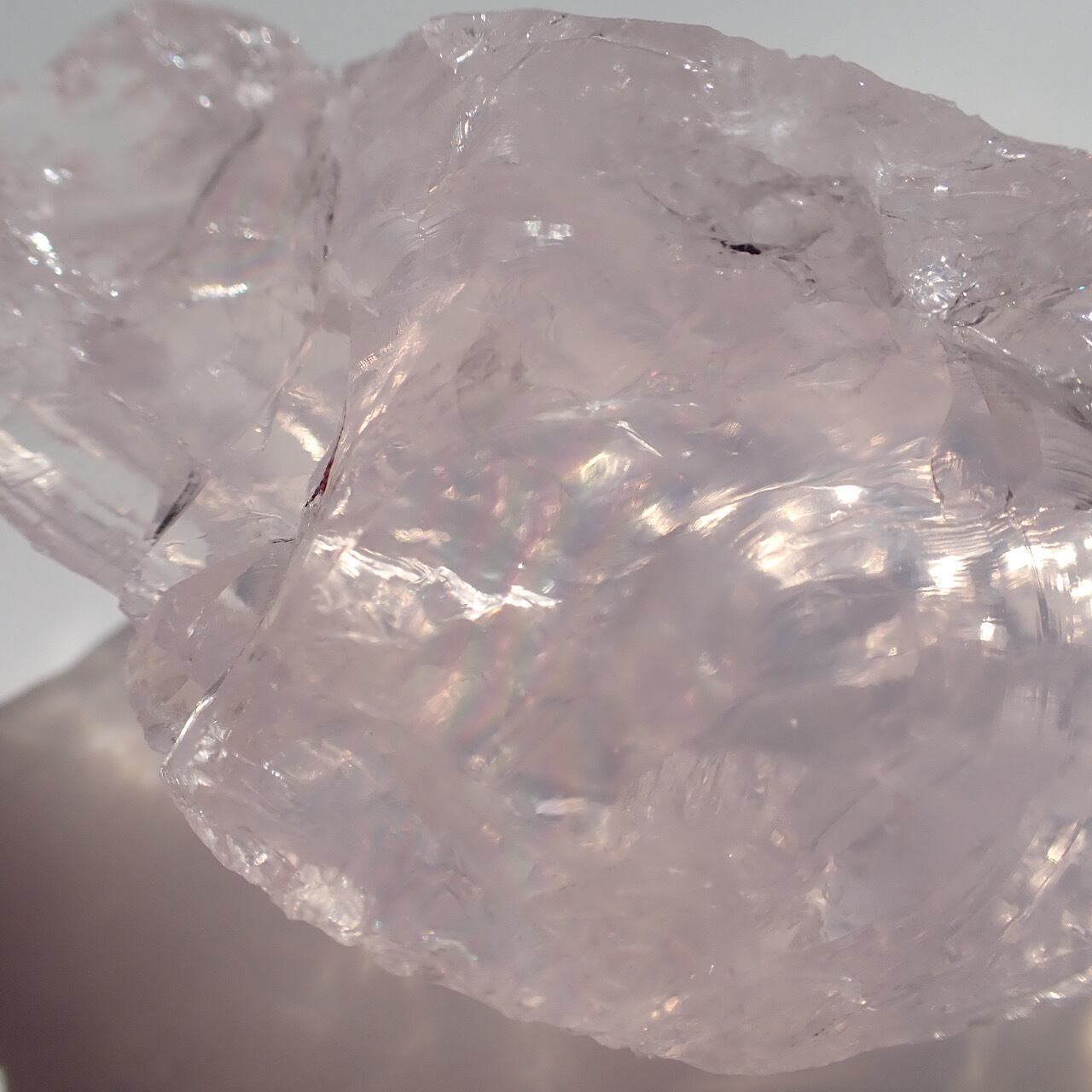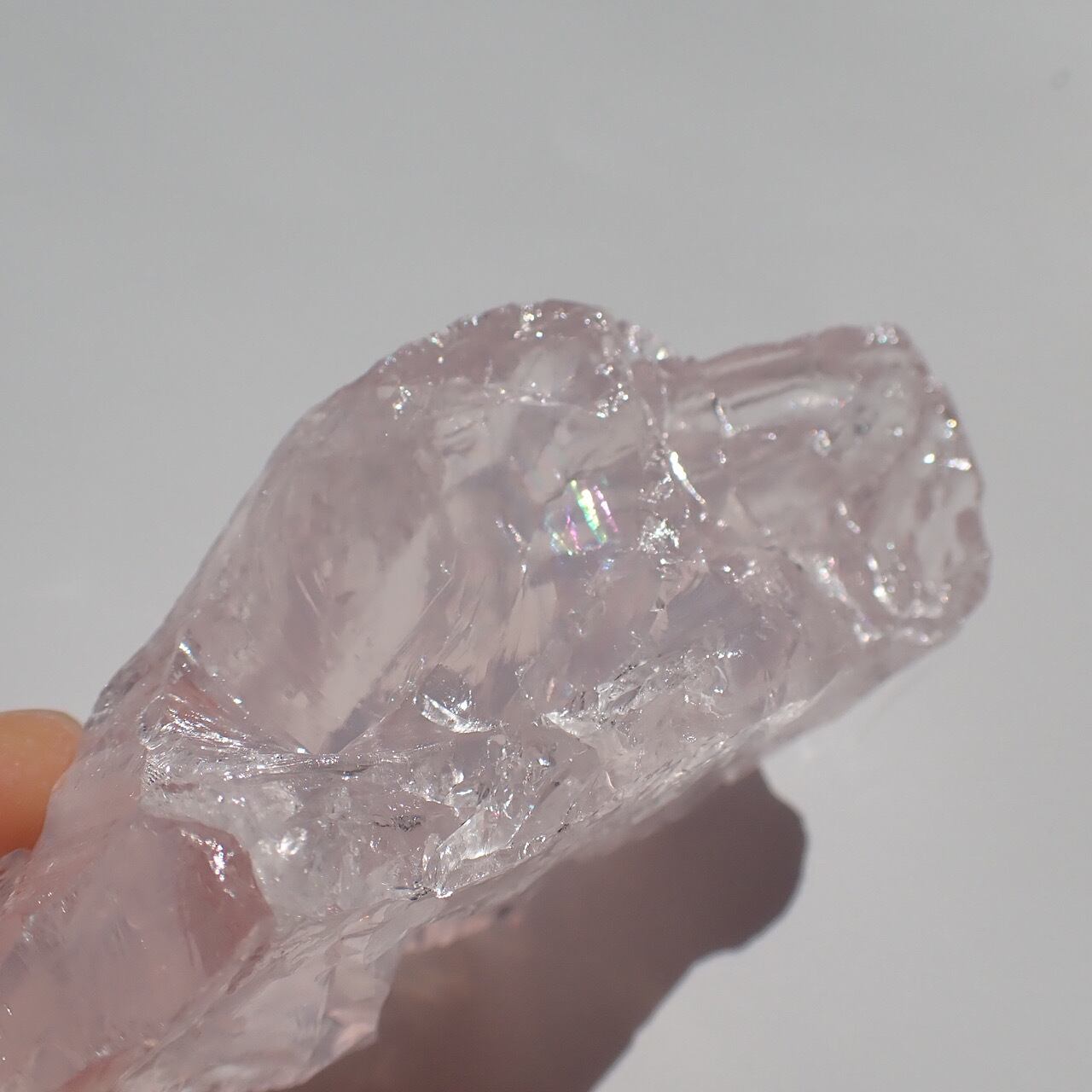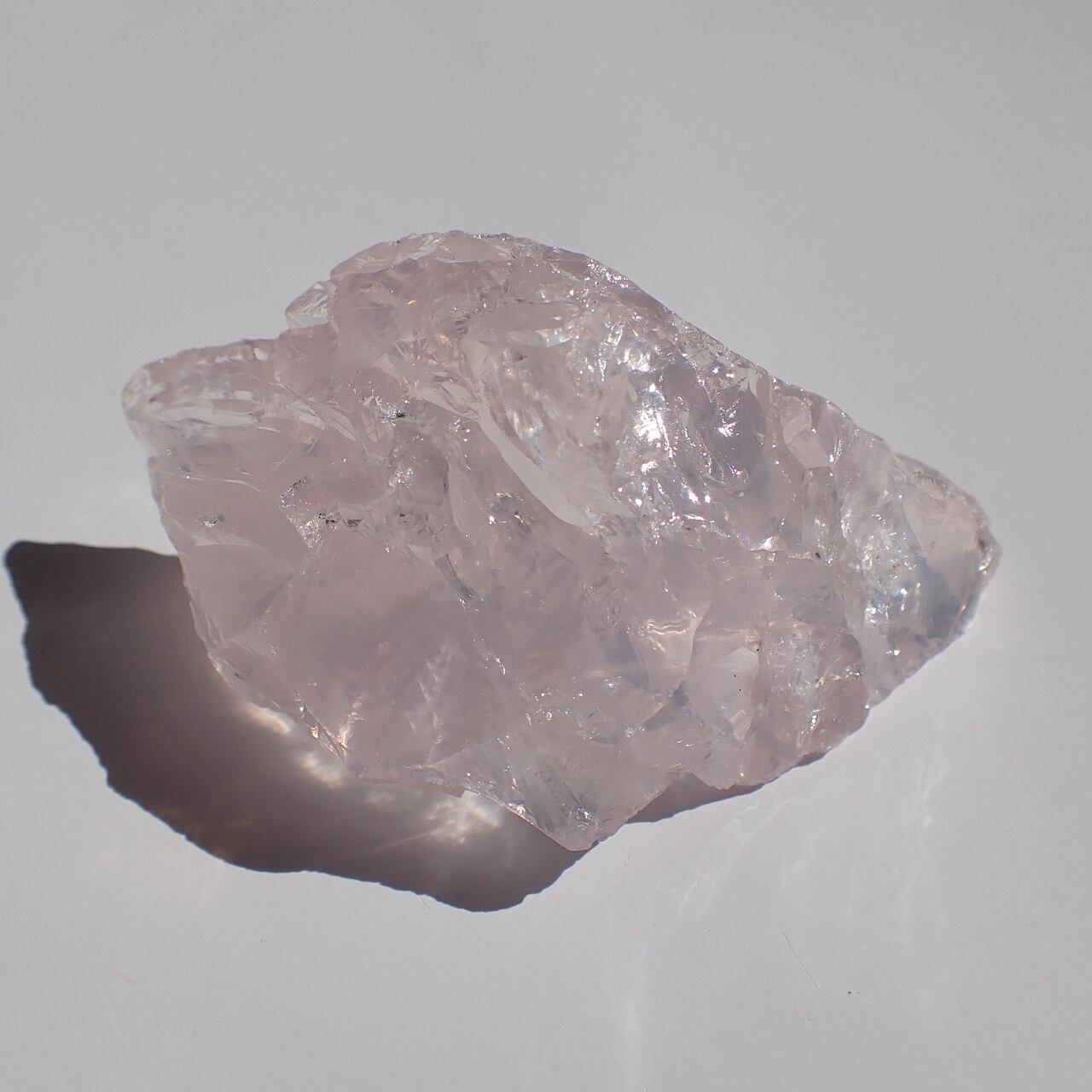 ブラジル・ミナスジェライス州のローズクォーツ原石です。同じタイミングで今回ローズクォーツ原石を2つ出しています。両方とも虹が出ていて、クリアなピンクが私はとても好きです。持ち歩いたり、握ってエネルギーを感じたり、横になってチャクラヒーリングをしたりと…ローズクォーツは本当におすすめです。ローズクォーツはハートを開く石でもあります。またどんな自分も受け入れさせてくれる大きな愛の石でもあります。