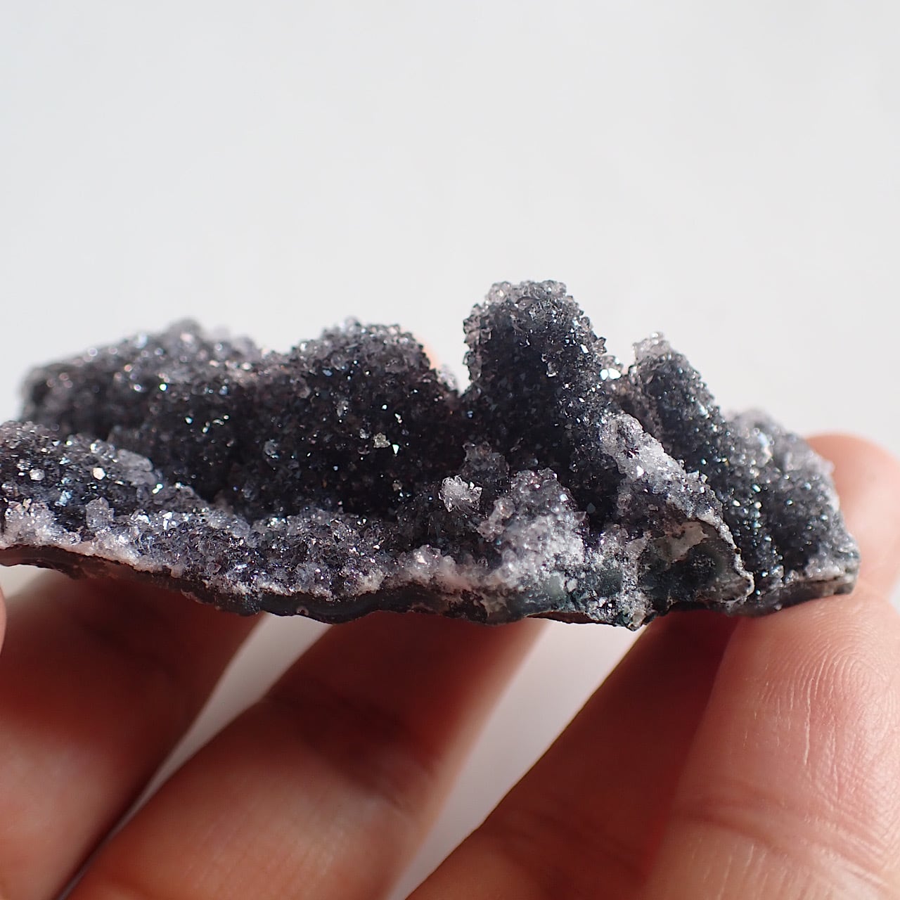 ウルグアイ産のドゥルージー結晶のアメジスト原石です。こちらは紫〜黒という感じでしょうか。ドゥルージーアメジストは天使が宿るヒーリングストーンとも言われていますが神秘的でとても美しいアメジストです。