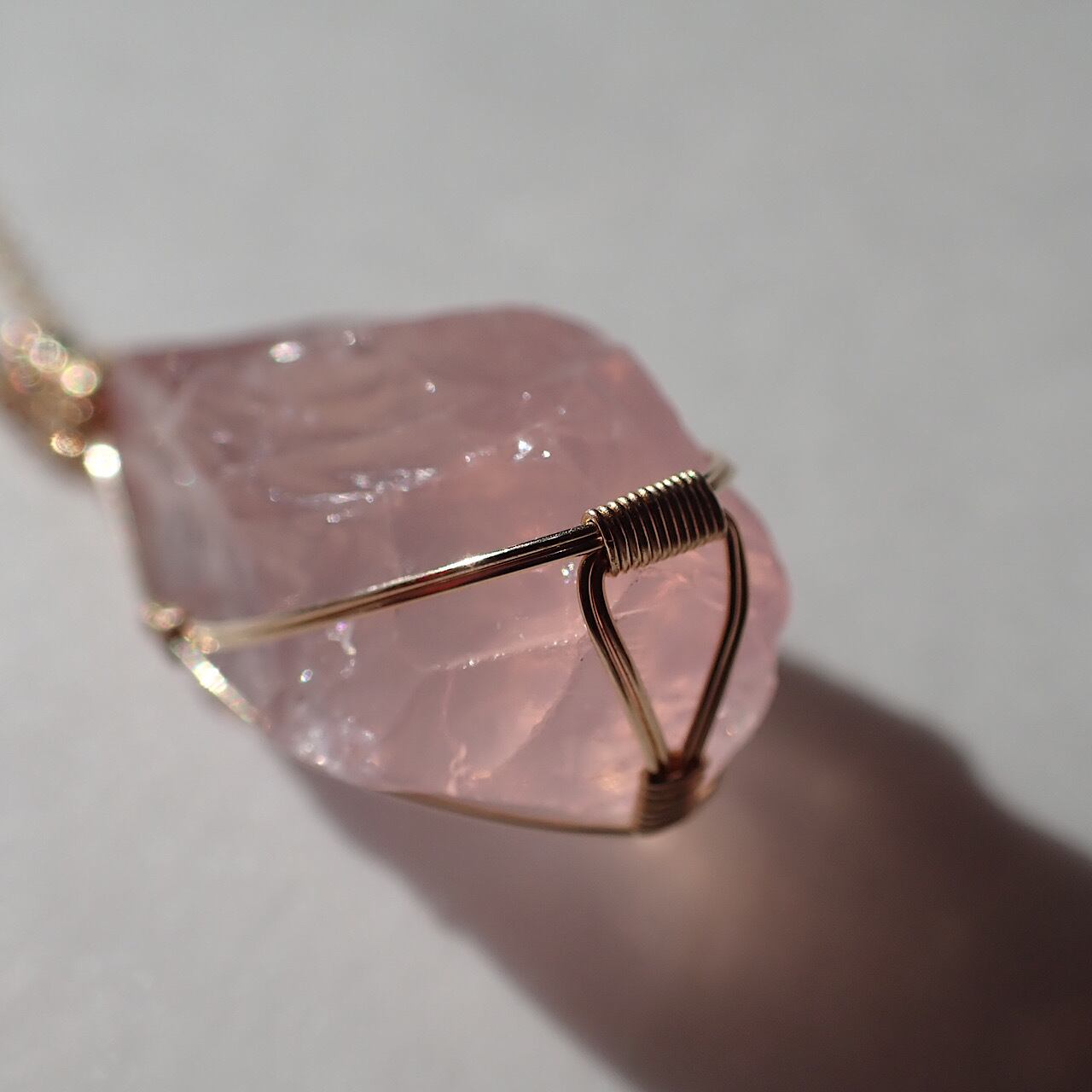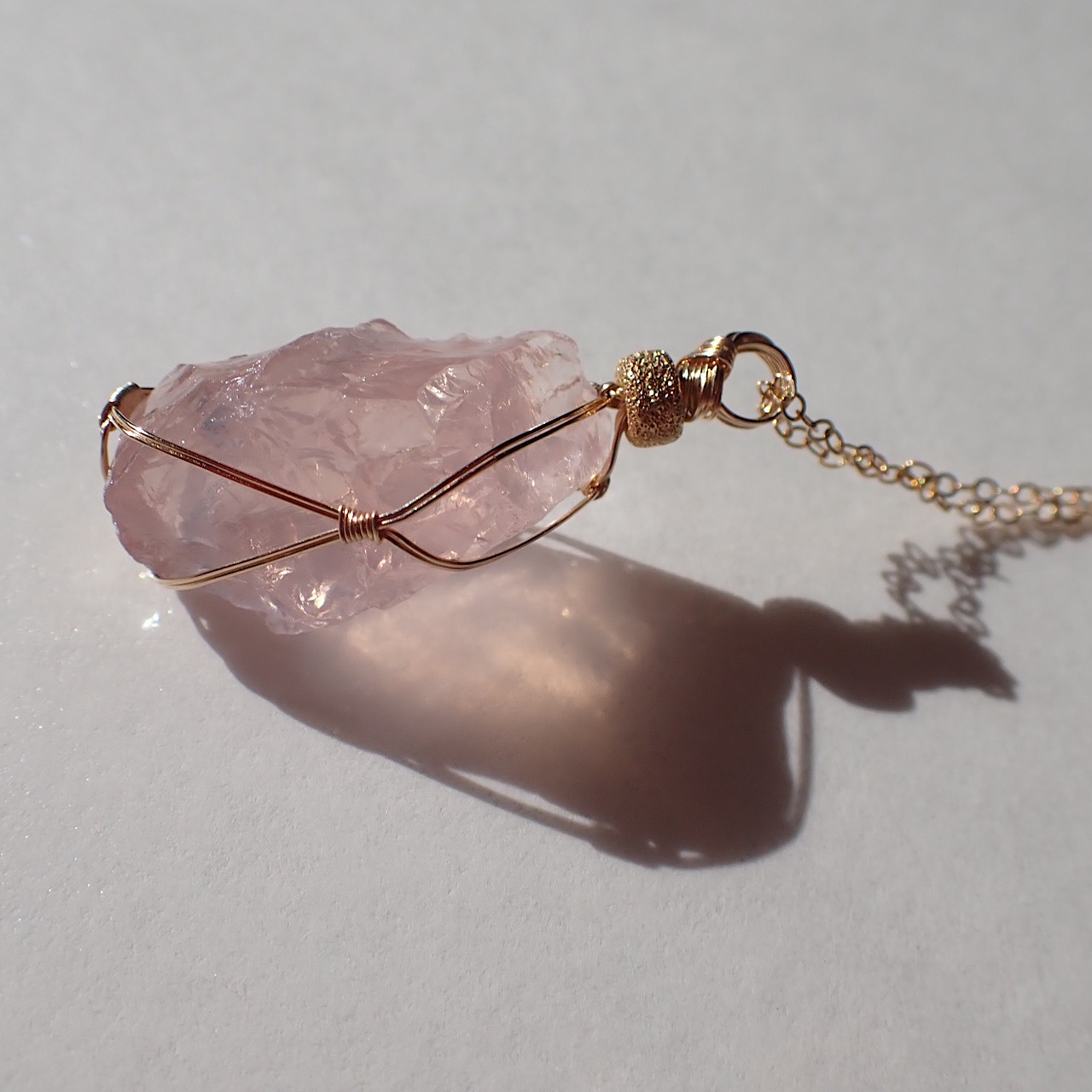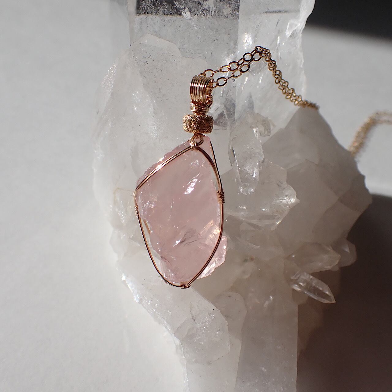 女神巻き®︎ローズクォーツ原石のペンダントトップ