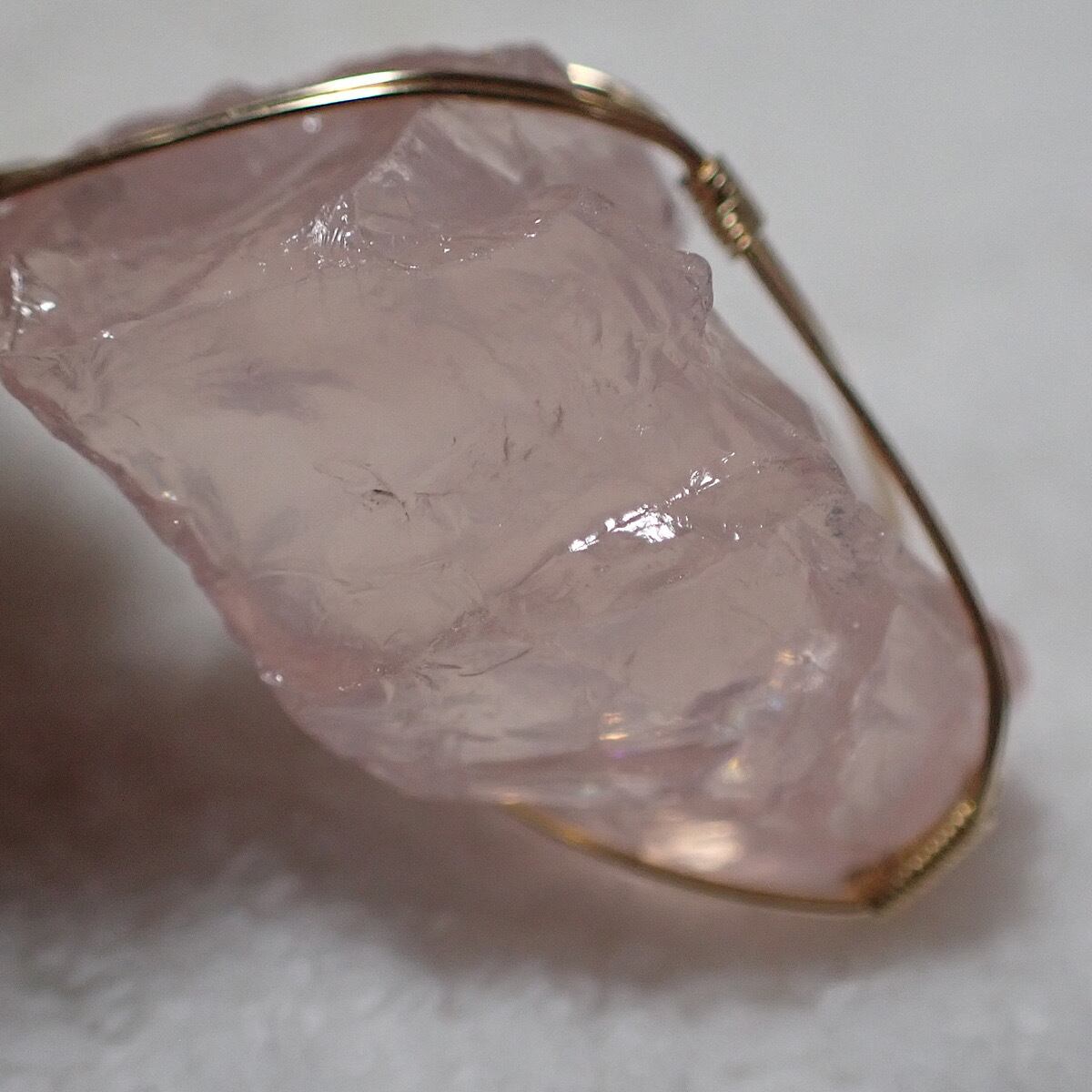 ブラジルのローズクォーツ原石の女神巻きペンダントトップです。透明感があり、かわいい見た目ですが、女神のようでもあります。すごく素敵です(*^^*)