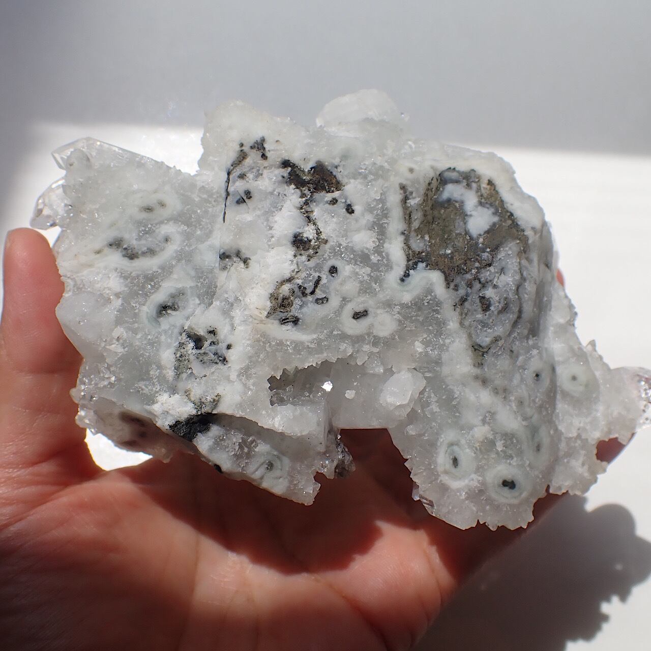 スピリットたちの複合体のような、この地球に存在するだけで幸せというような真っ直ぐでピュアなエネルギー。このアポフィライトに同調する事を意識すると頭も体もスーッと軽くなるような気がします。