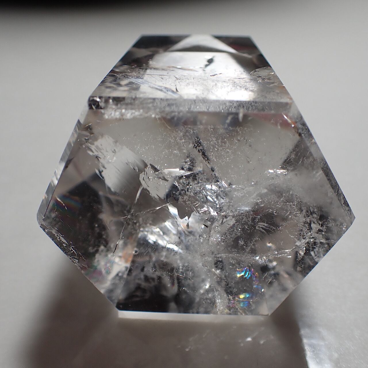 しっかりとした存在感のある六角柱のポイント水晶です。虹もとても美しく「ヒーラー」と呼びたくなる石です。