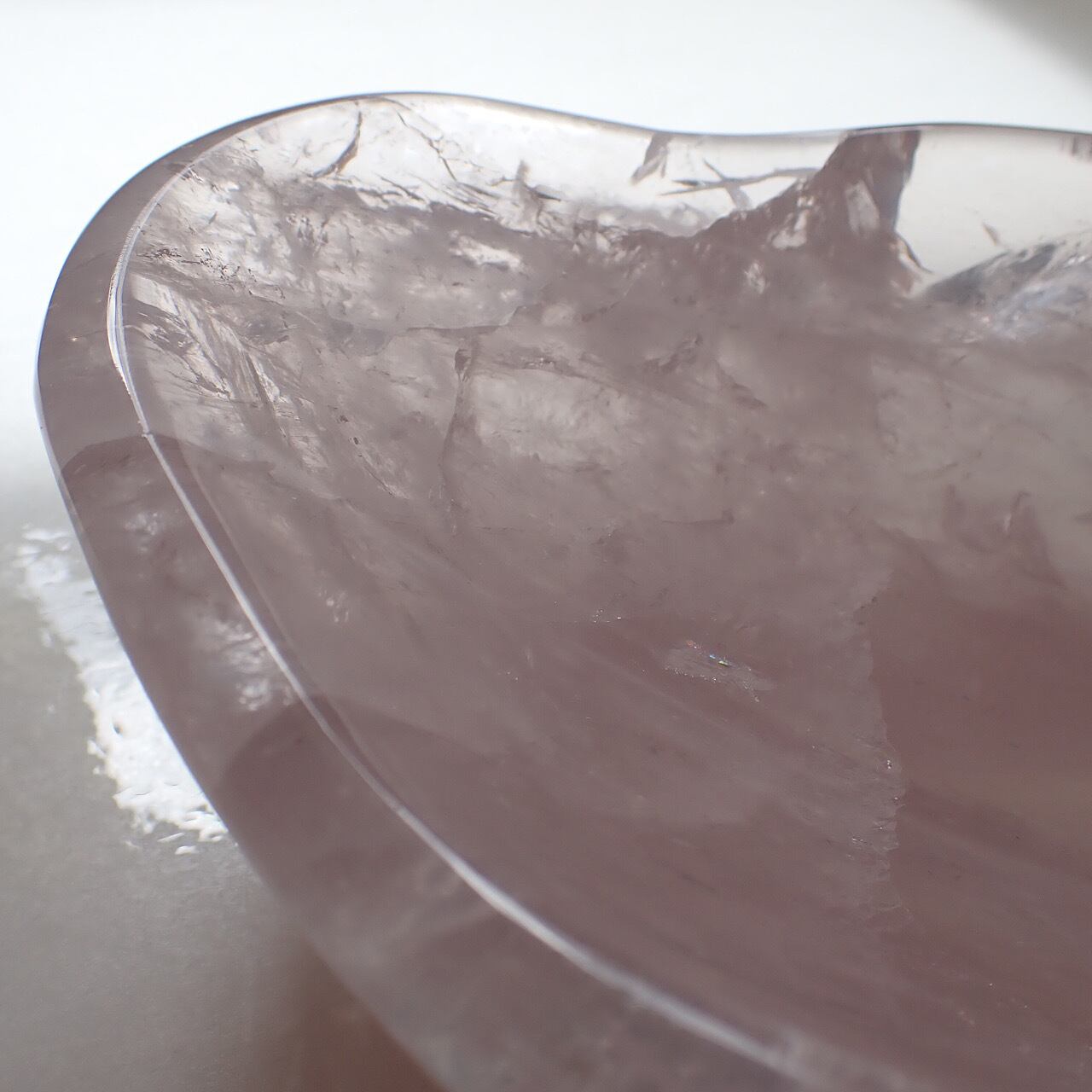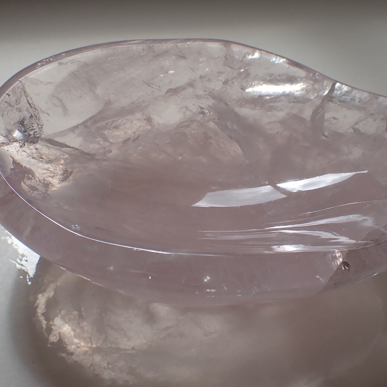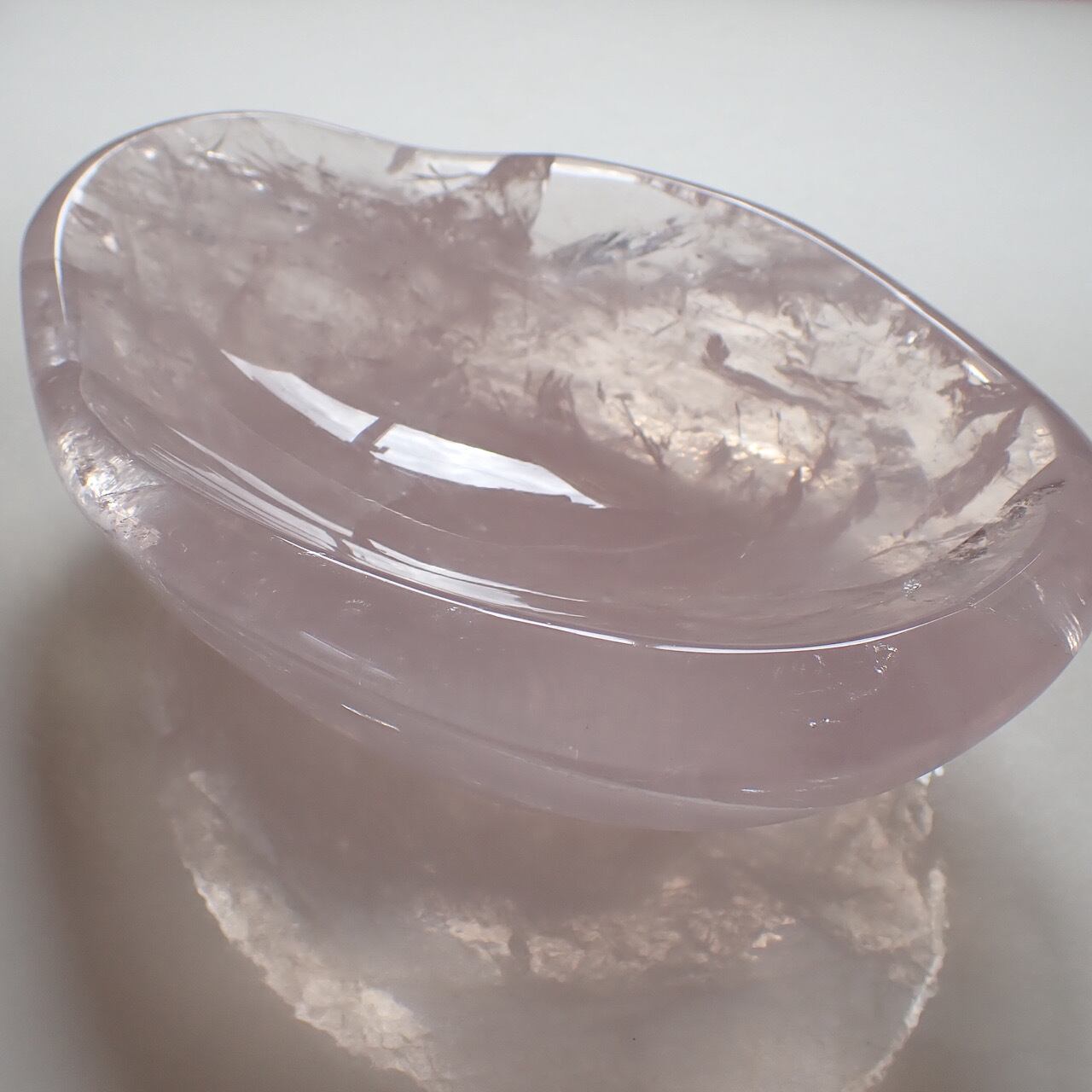 ローズクオーツのお皿です。とてもかわいく美しいです。