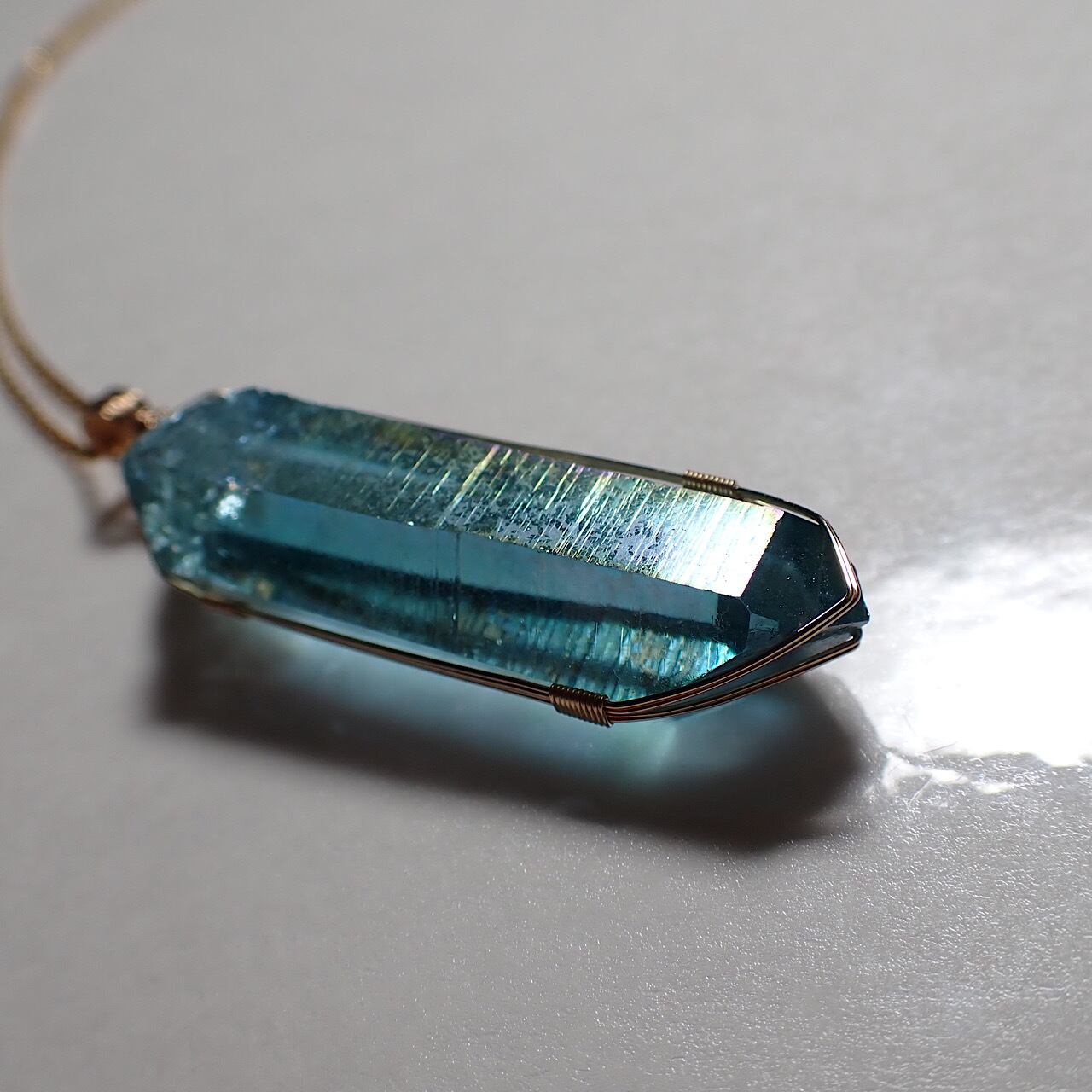 アメリカ・アーカンソーのアクアオーラを女神巻きペンダントトップにしました。