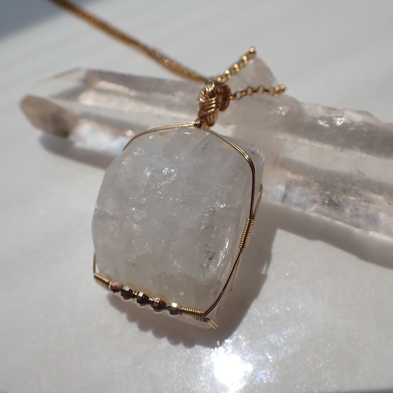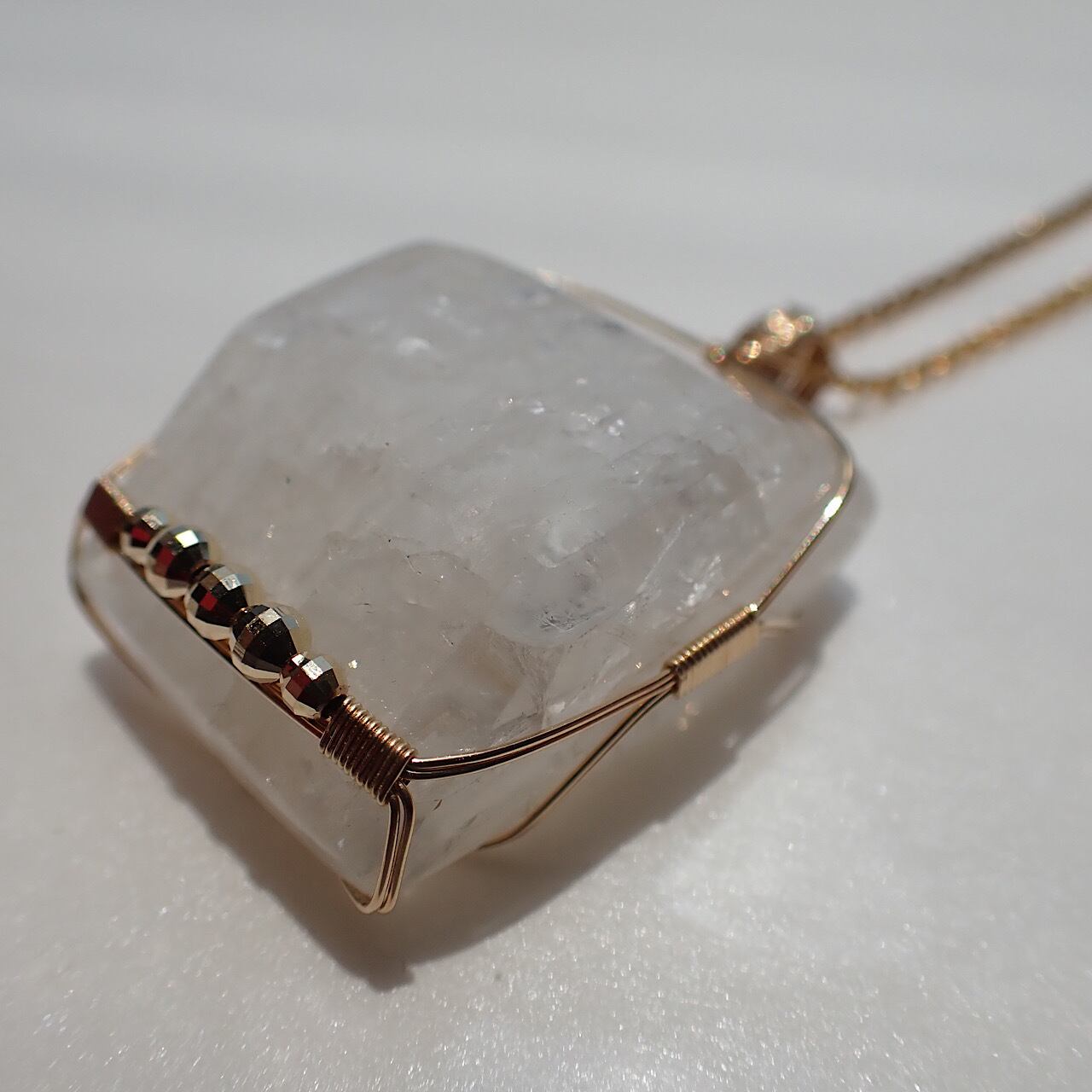 ペタライトに10kビーズを施した女神巻きペンダントトップです。スクエアで存在感があります。