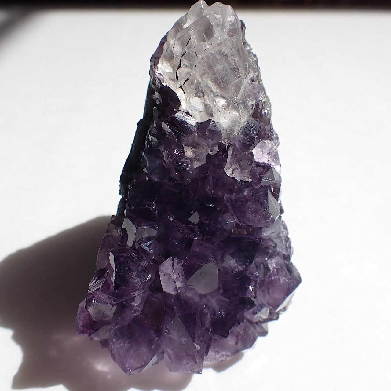 小さなサイズのブラジル産アメジストです。母岩部分が研磨されているので、立てて置く形になります。上の白い部分はカルサイトです。とてもスピリチュアルな強いエネルギーを発するアメジストですが、インテリアとしてもとてもかわいいと思います☆