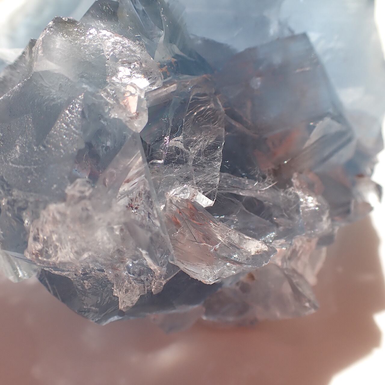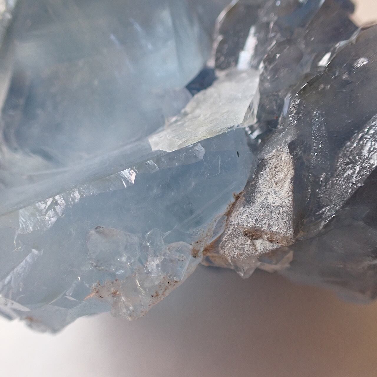 結晶が大き目のマダガスカル産セレスタイト原石です。ある程度の重さはありますが結晶が大きいので(細かい結晶部分もありますが)握りやすいかと思います。