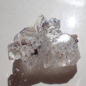 大きな結晶が2つ、小さな結晶4つがひとつに繋がったニューヨーク州ハーキマーのハーキマー水晶です。