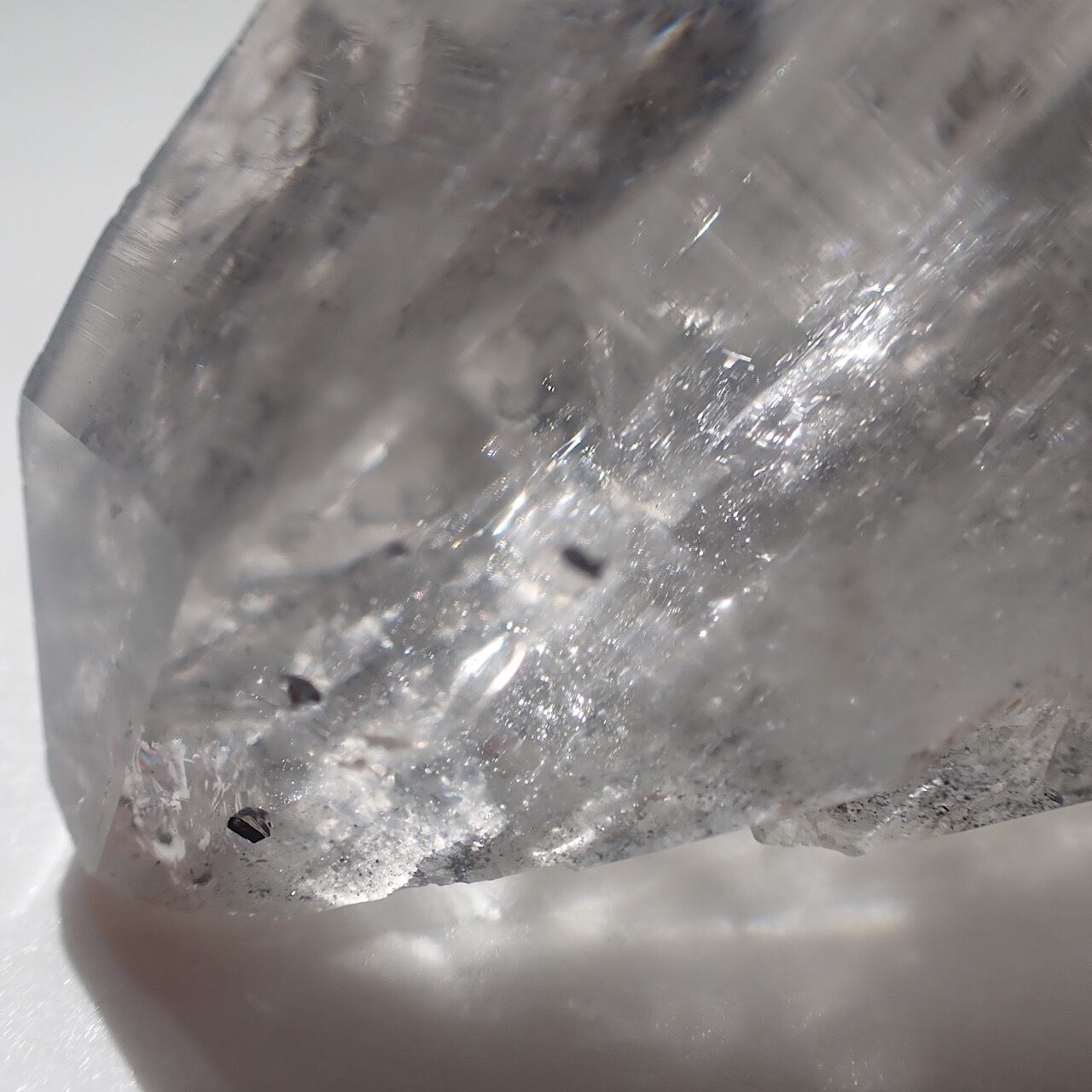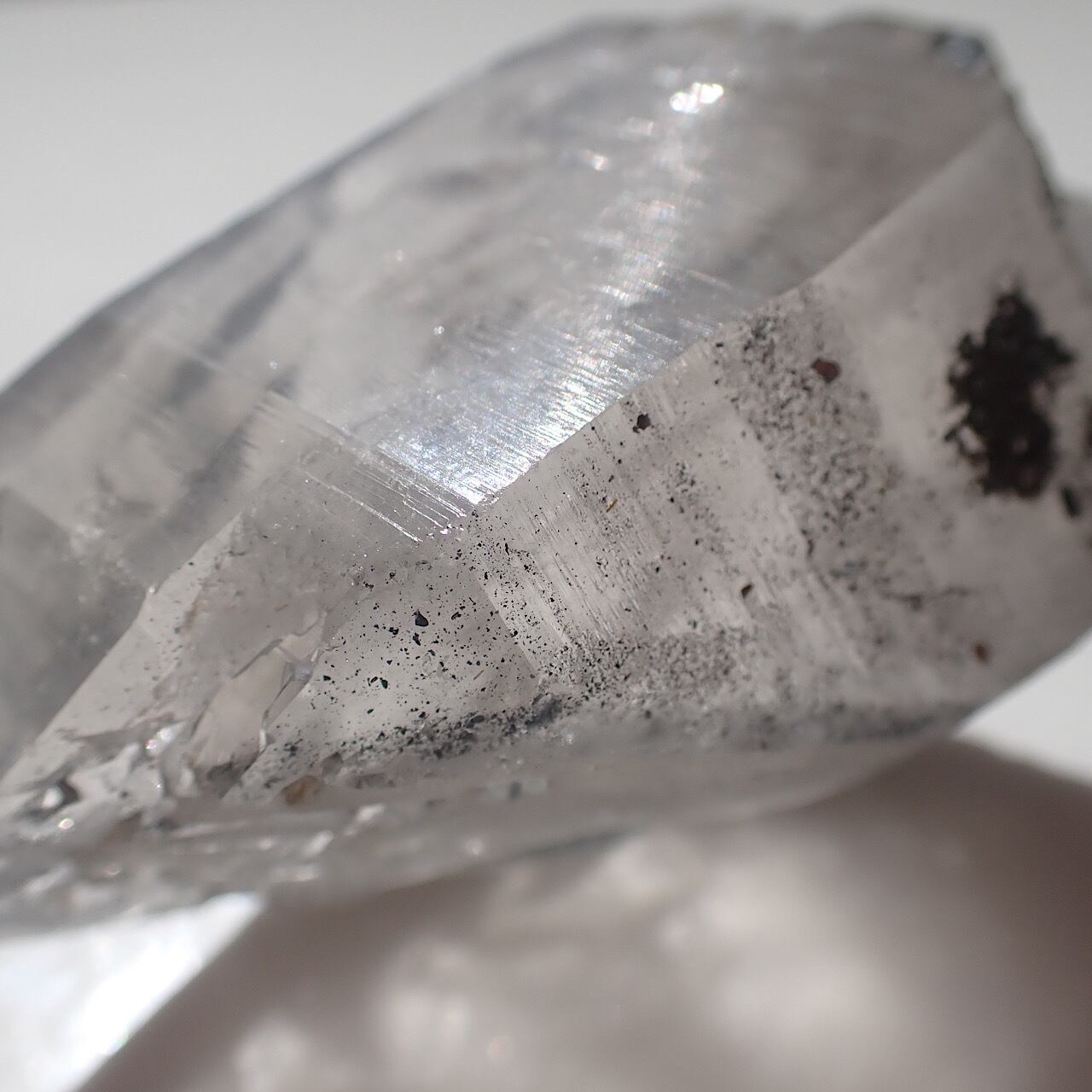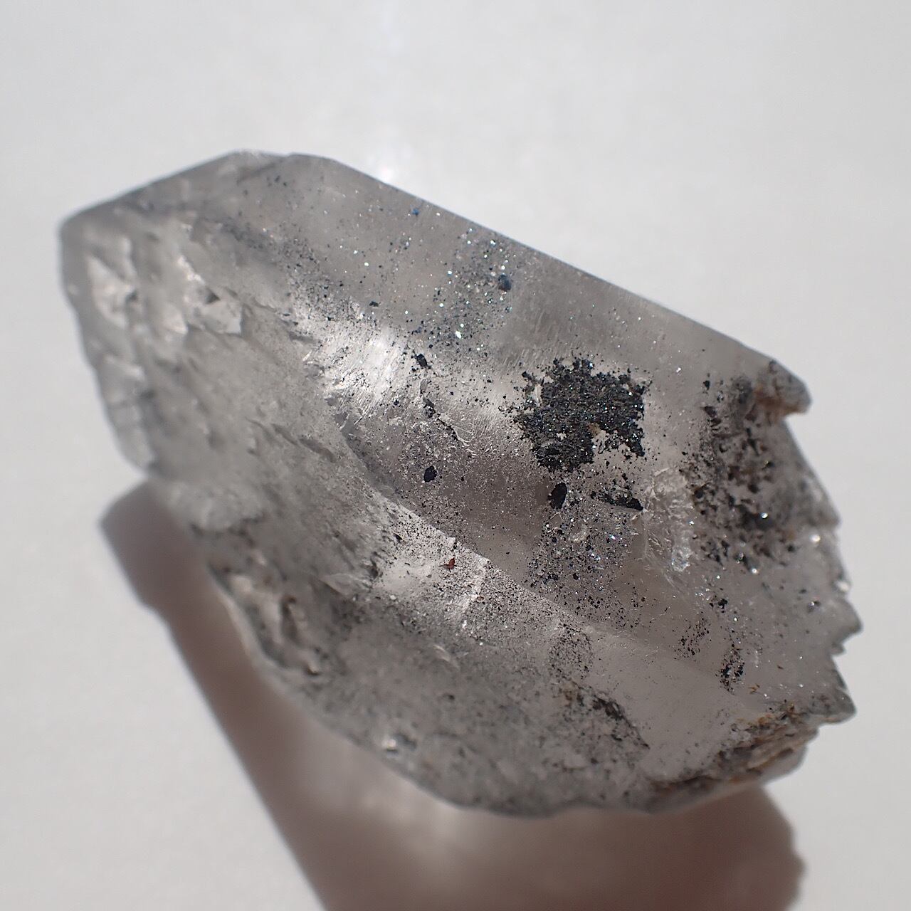 ブラジル・コリント産のヘマタイトが入った水晶です。そのため色はグレーっぽいですが、きらめきがギャラクシーのように美しいです。とてもワイルドでセルフヒールドもとてもかっこ良くていつまでも見ていられます。おススメ原石です☆