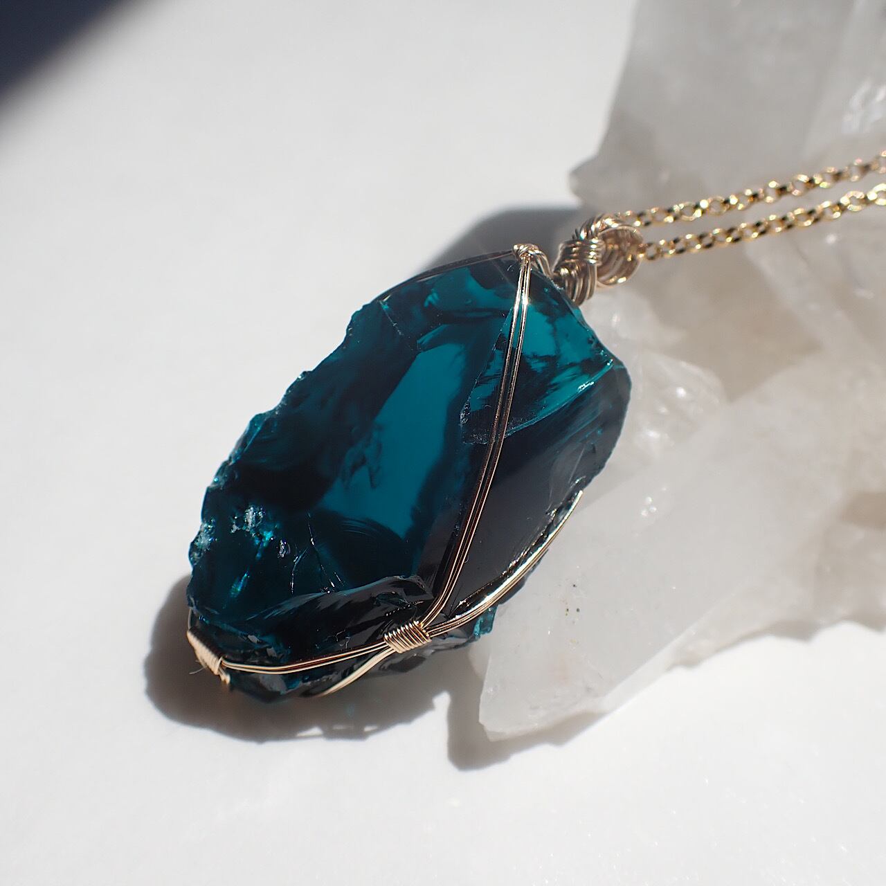 青、緑、エメラルドが混ざったようなイナンナウィズダムという色のシエラネバダ産のアンダラクリスタルです。
