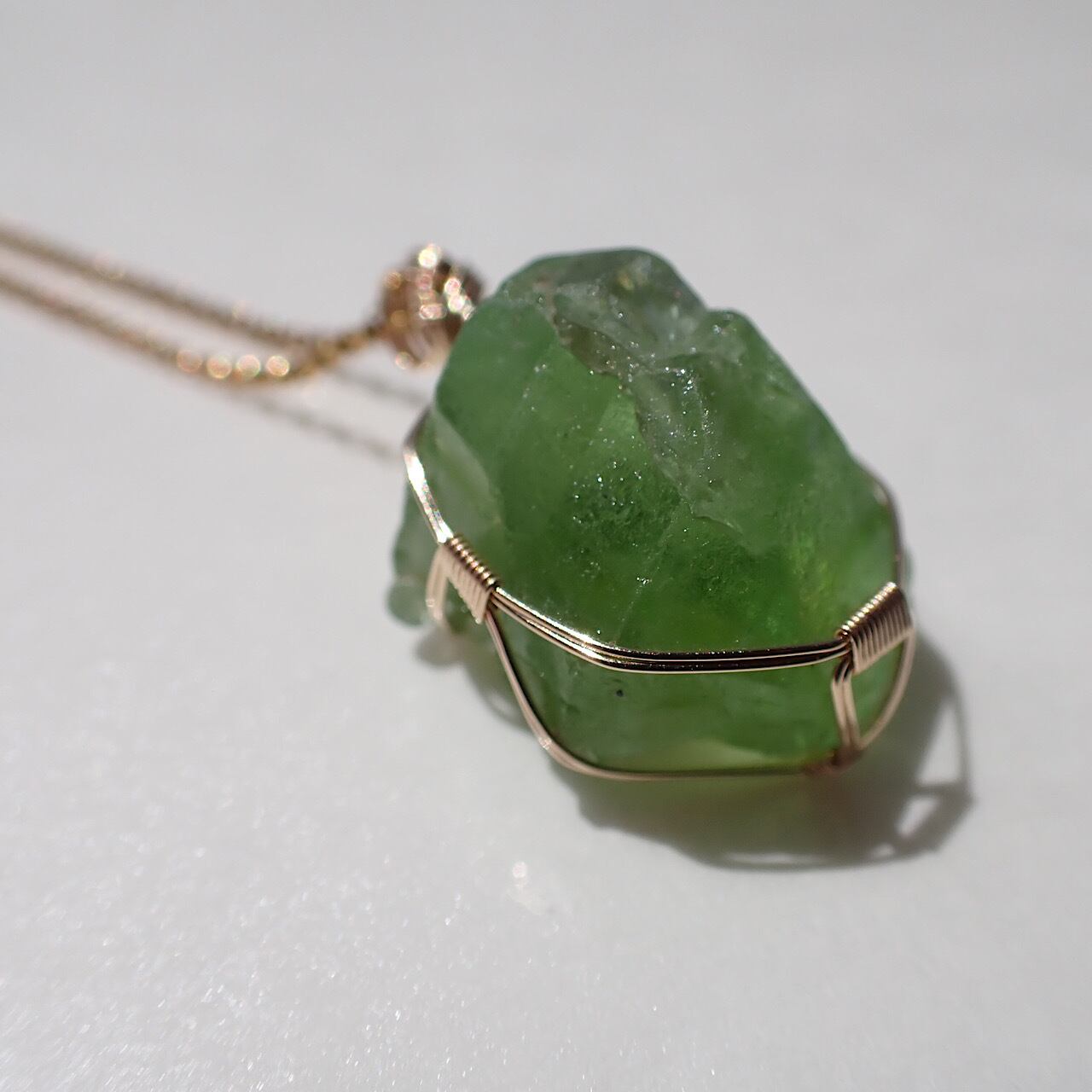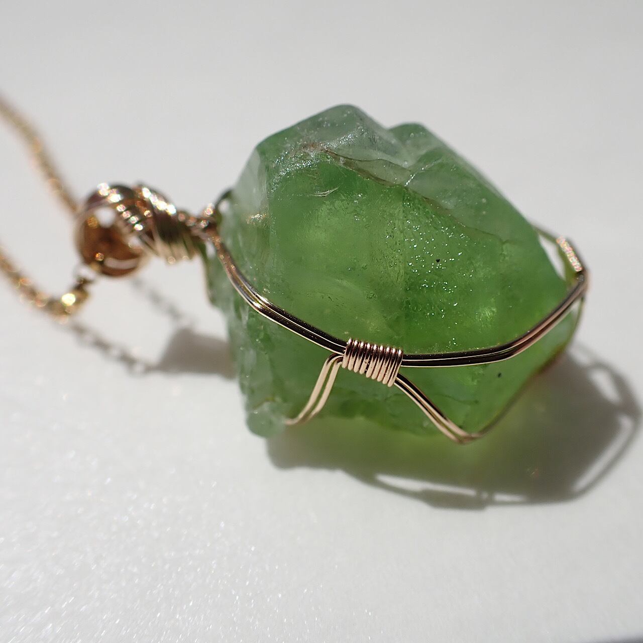 パキスタン産ペリドット原石の女神巻きジュエリーです。
