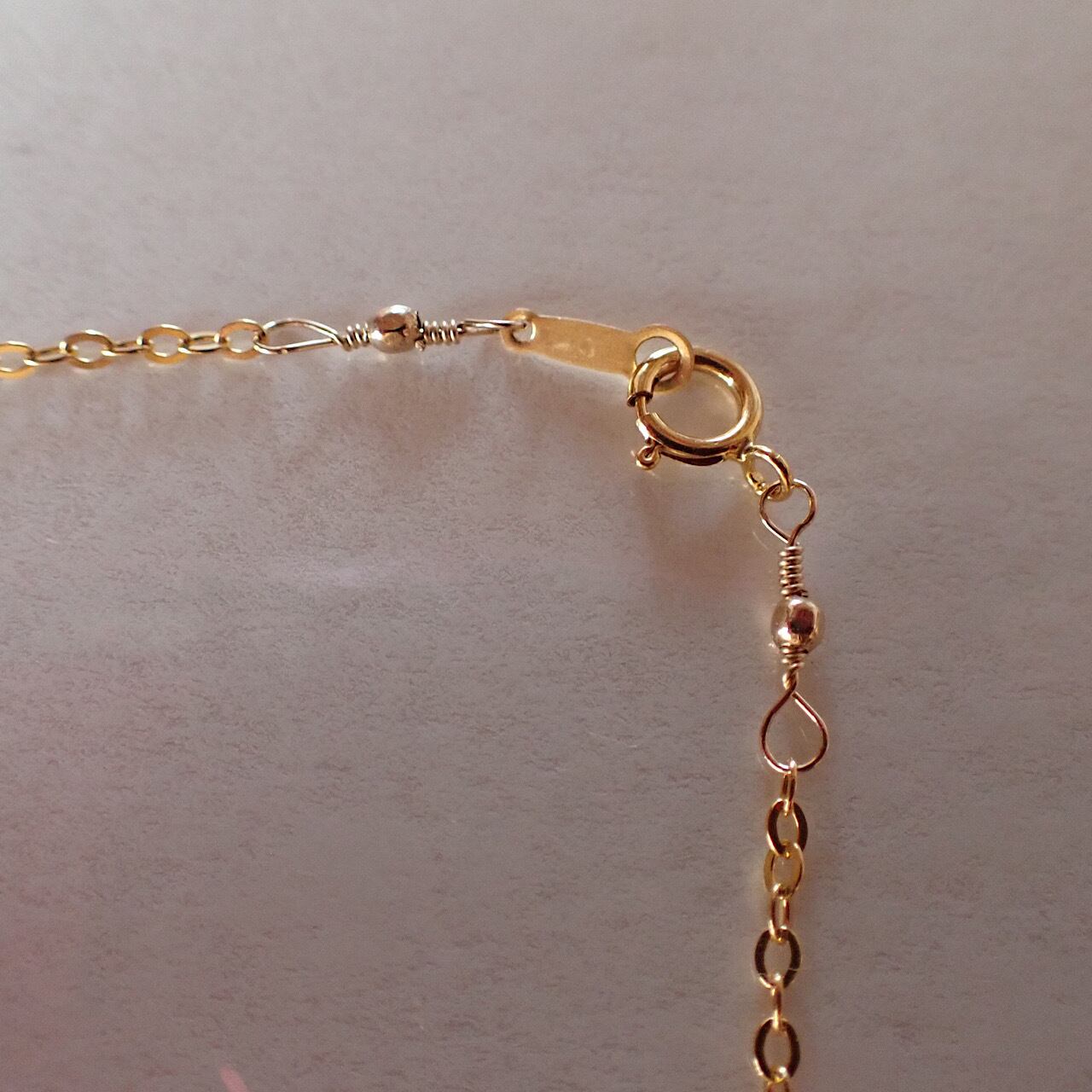 14KGF(14金ゴールドフィルド)は、真鍮に14金の層を高熱と圧力で圧着させたもので、14金の層の重量が総重量の1/20以上のものをいいます。