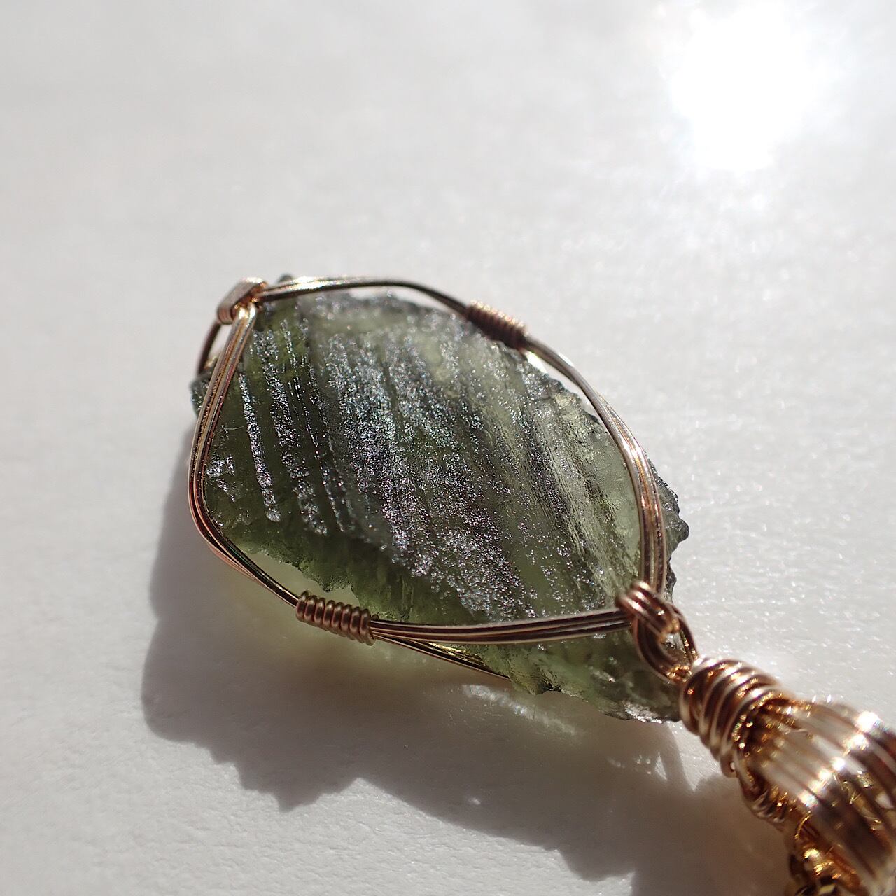 芸術的で美しいビジュアルの小さなモルダバイトです。何か音色を奏でているような、規則的な流れの美しさ、尊さが石の表面にも刻まれているような印象です。