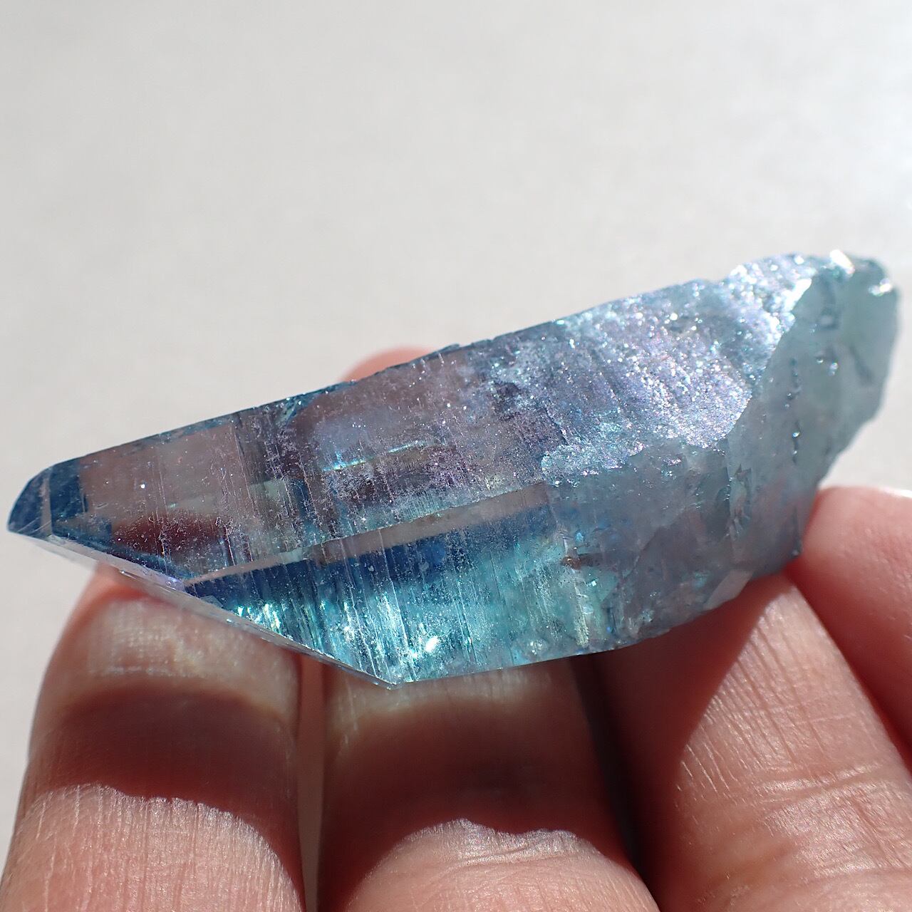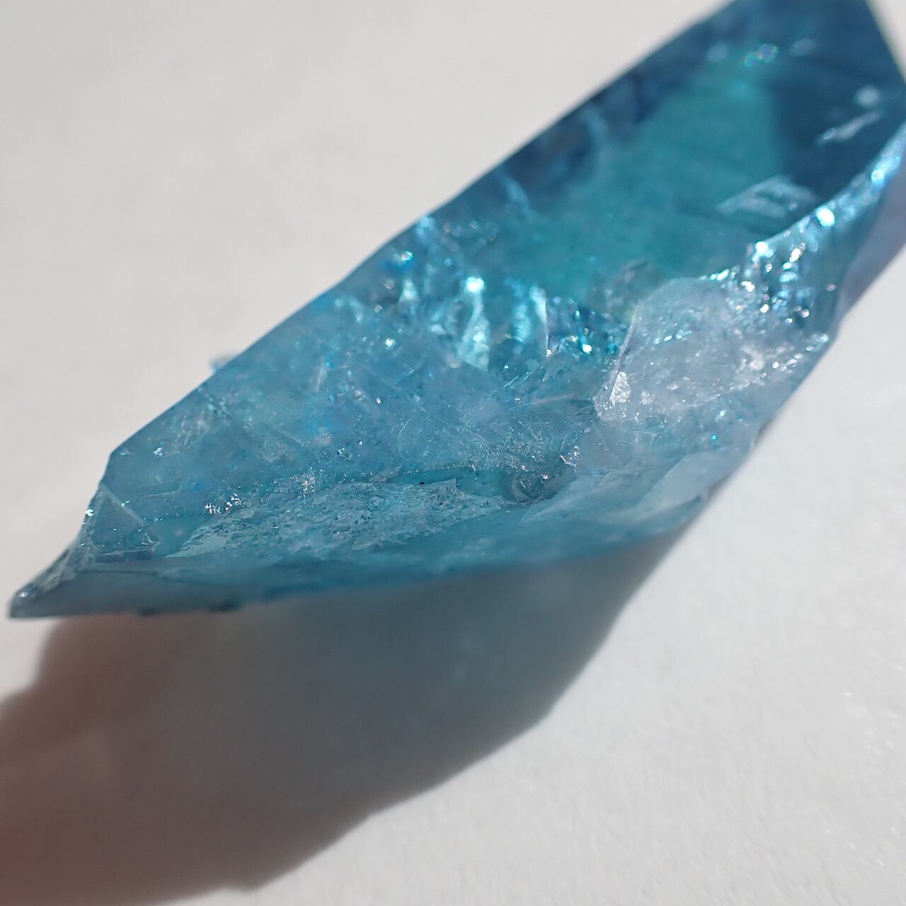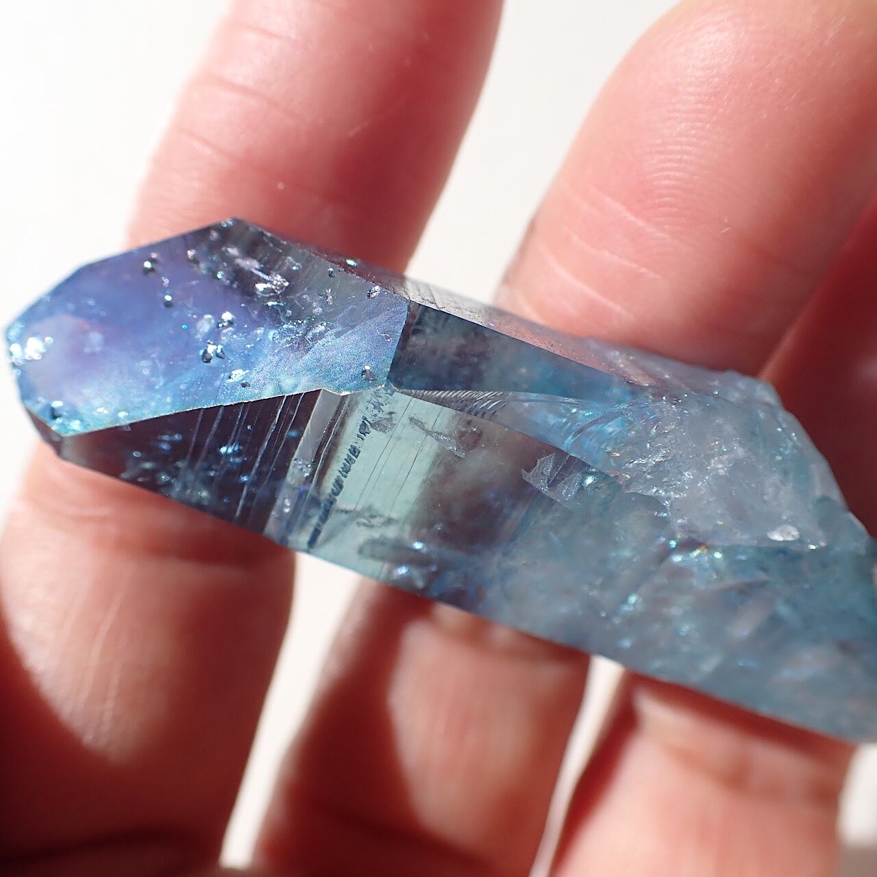 アクアオーラ水晶はアトランティスと縁が深いと言われることもありますが、錬金術とこの青い色が何かを思い出させるのかもしれません。とても美しいアクアオーラ水晶です☆