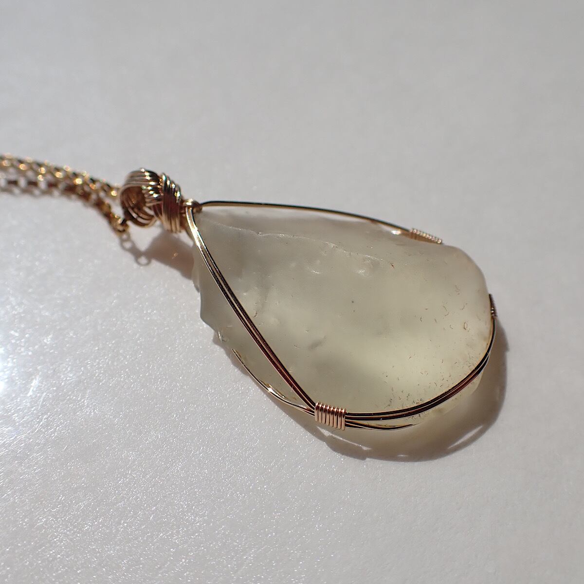女神巻き®︎リビアングラス原石のペンダントトップ