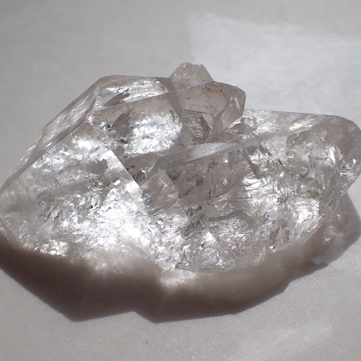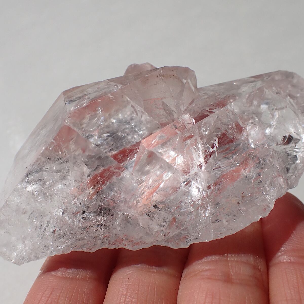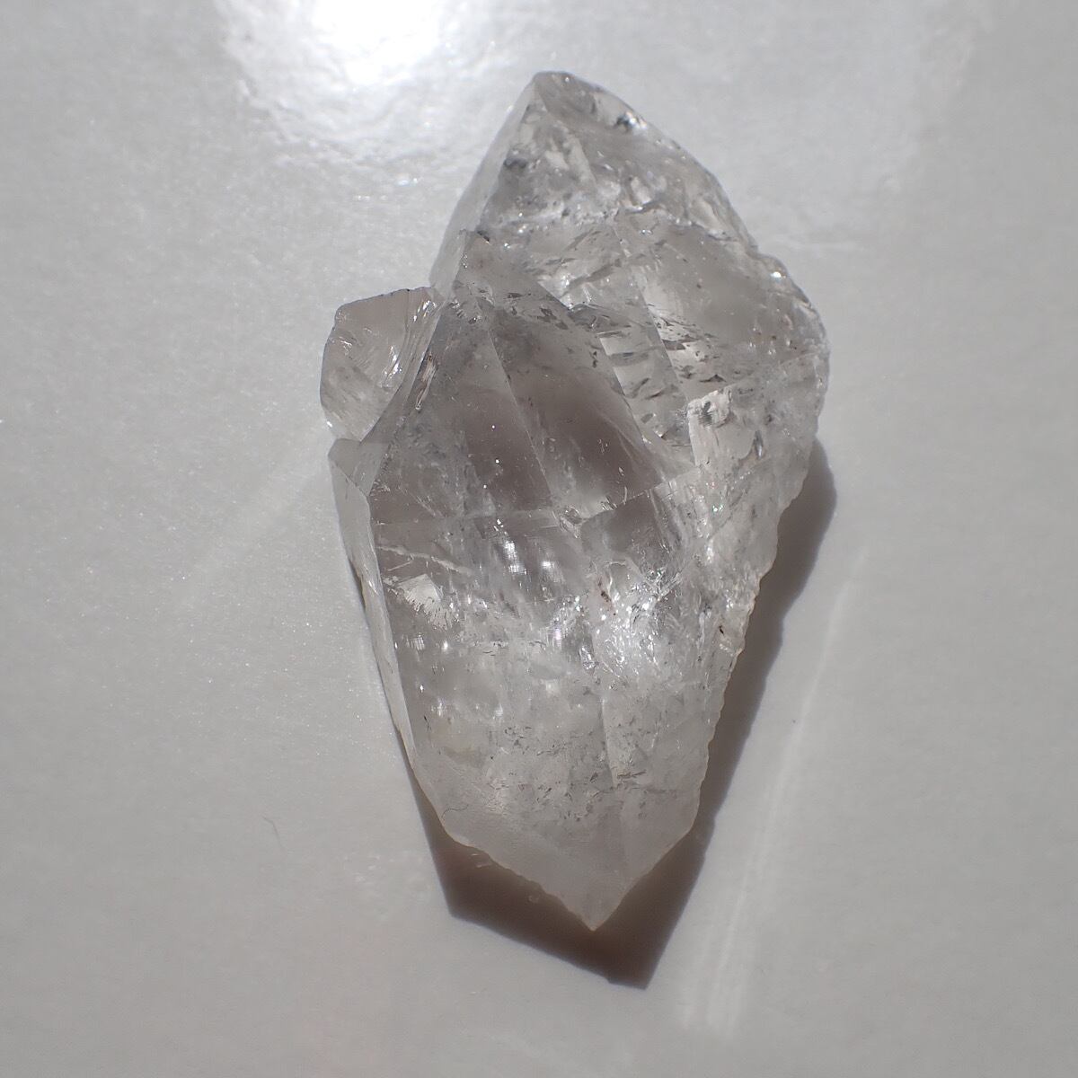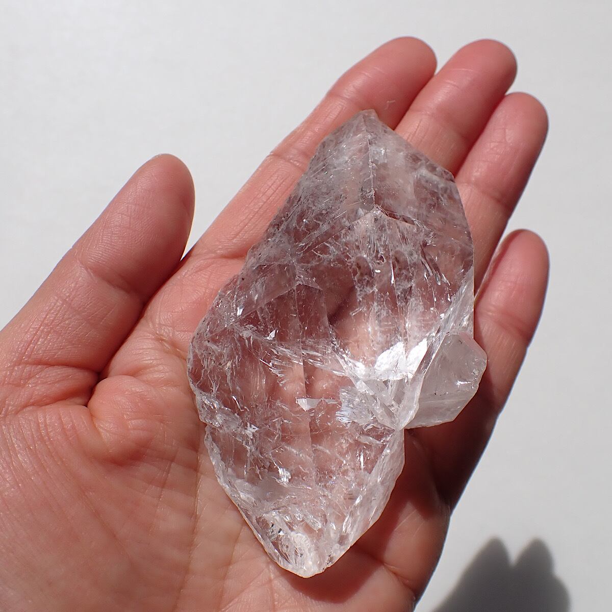 ブラジルの手のひらサイズの水晶原石です。ふたつの結晶が繋がっているクラスターのような感じです。
