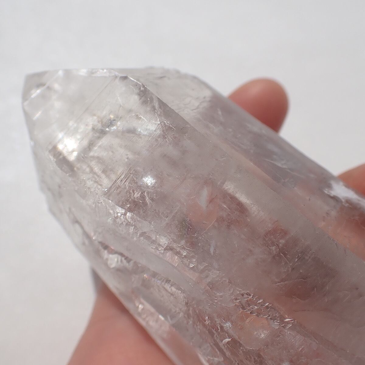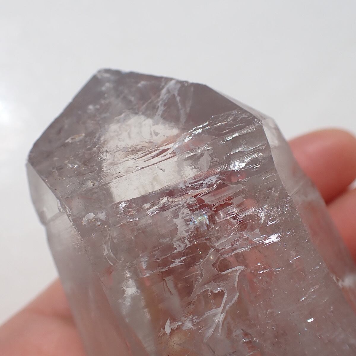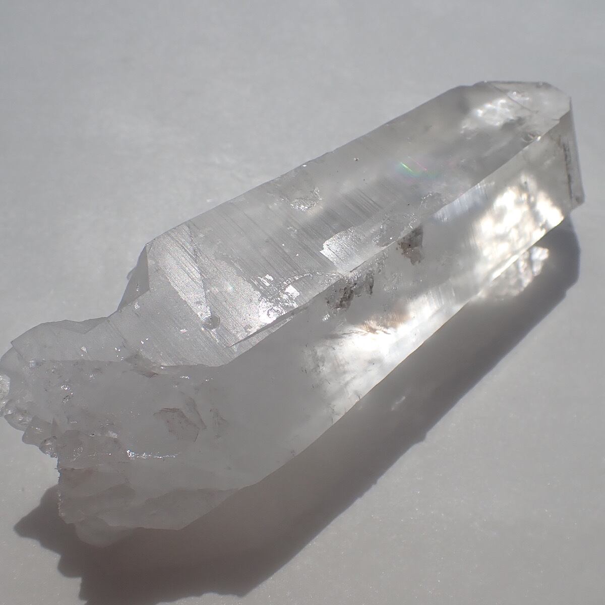 ブラジル・ディアマンティーナ産のクリスタルです。表面は少しボコボコした部分や傷もあり、それも含めてワイルドな見た目ですがとっても綺麗な虹が出ていたり、何かを伝えるような剥離痕やステップと呼ばれる段差もある魅力的な水晶です。