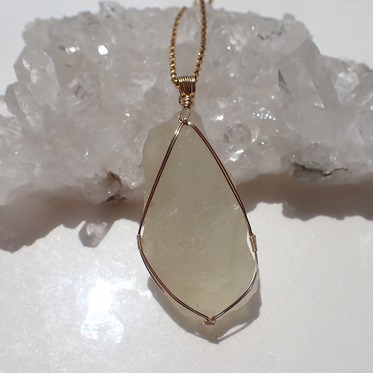 女神巻き®︎リビアングラス原石のペンダントトップ