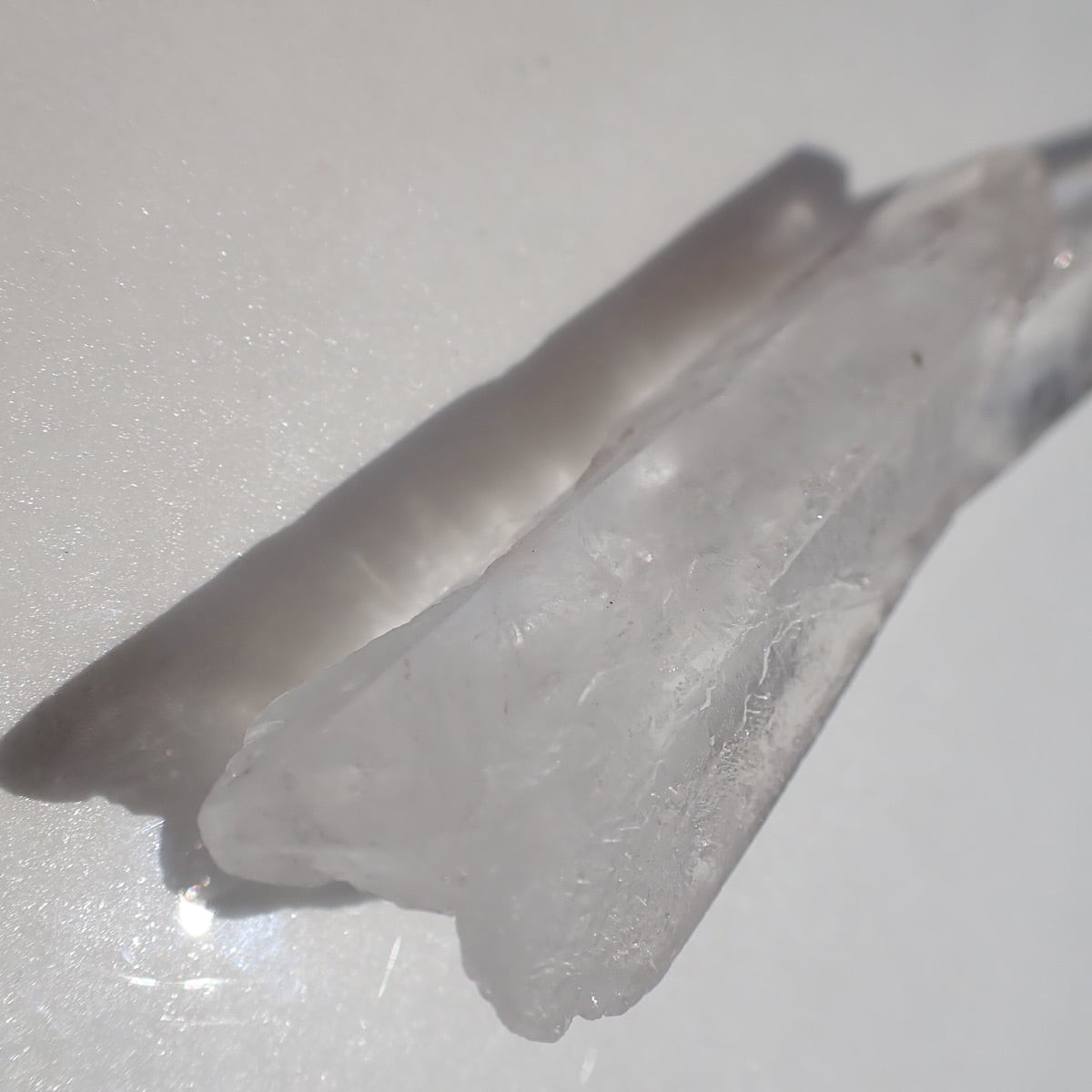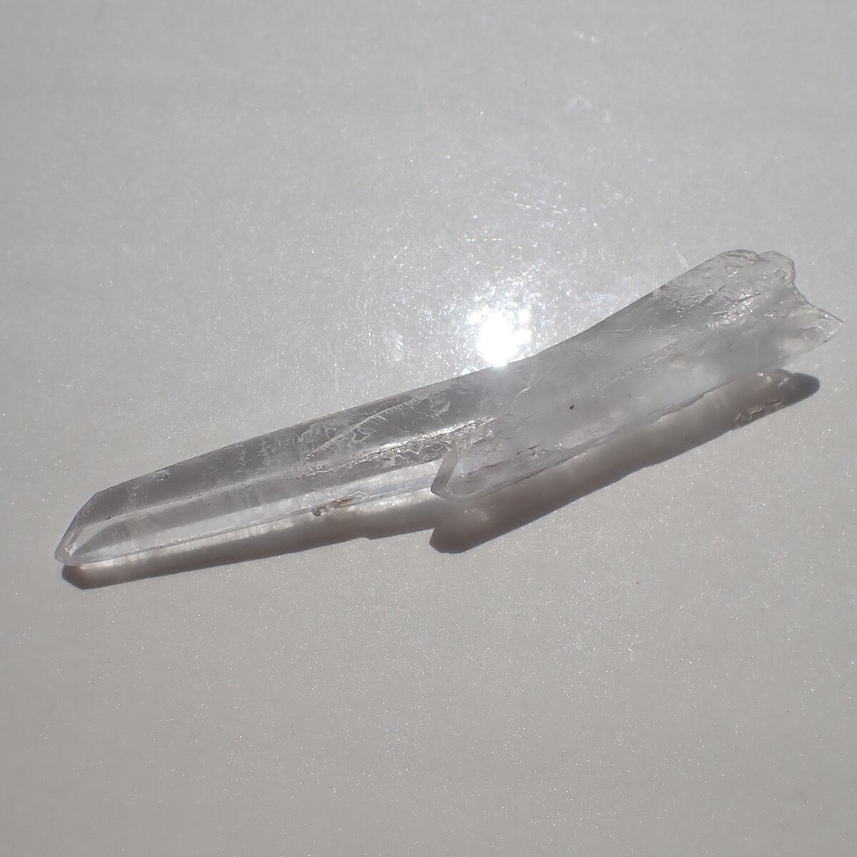 ブラジル・ディアマンティーナ産のレーザークリスタルです。形が独特で二つの結晶が途中から一つになっているようで曲がっているように見えます。