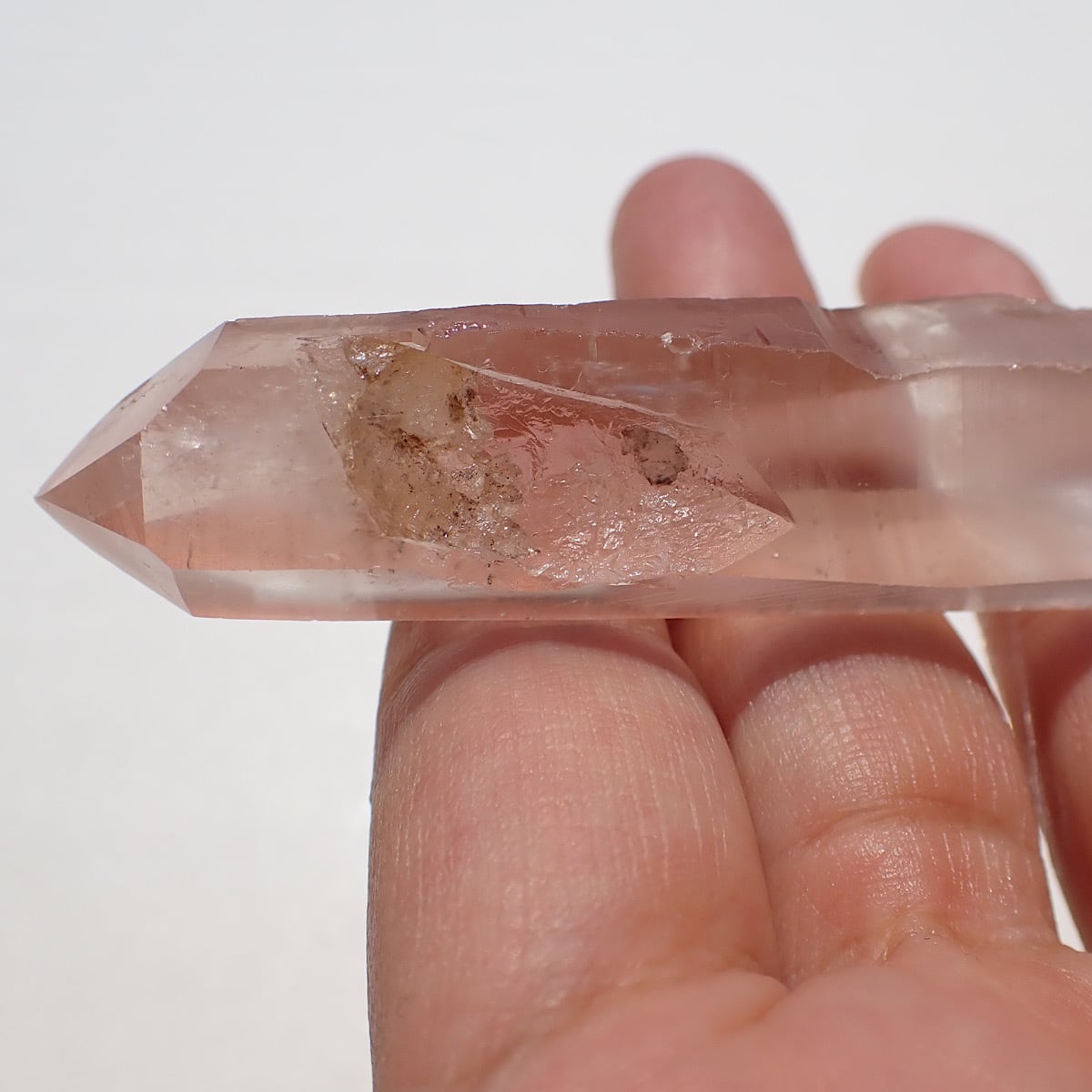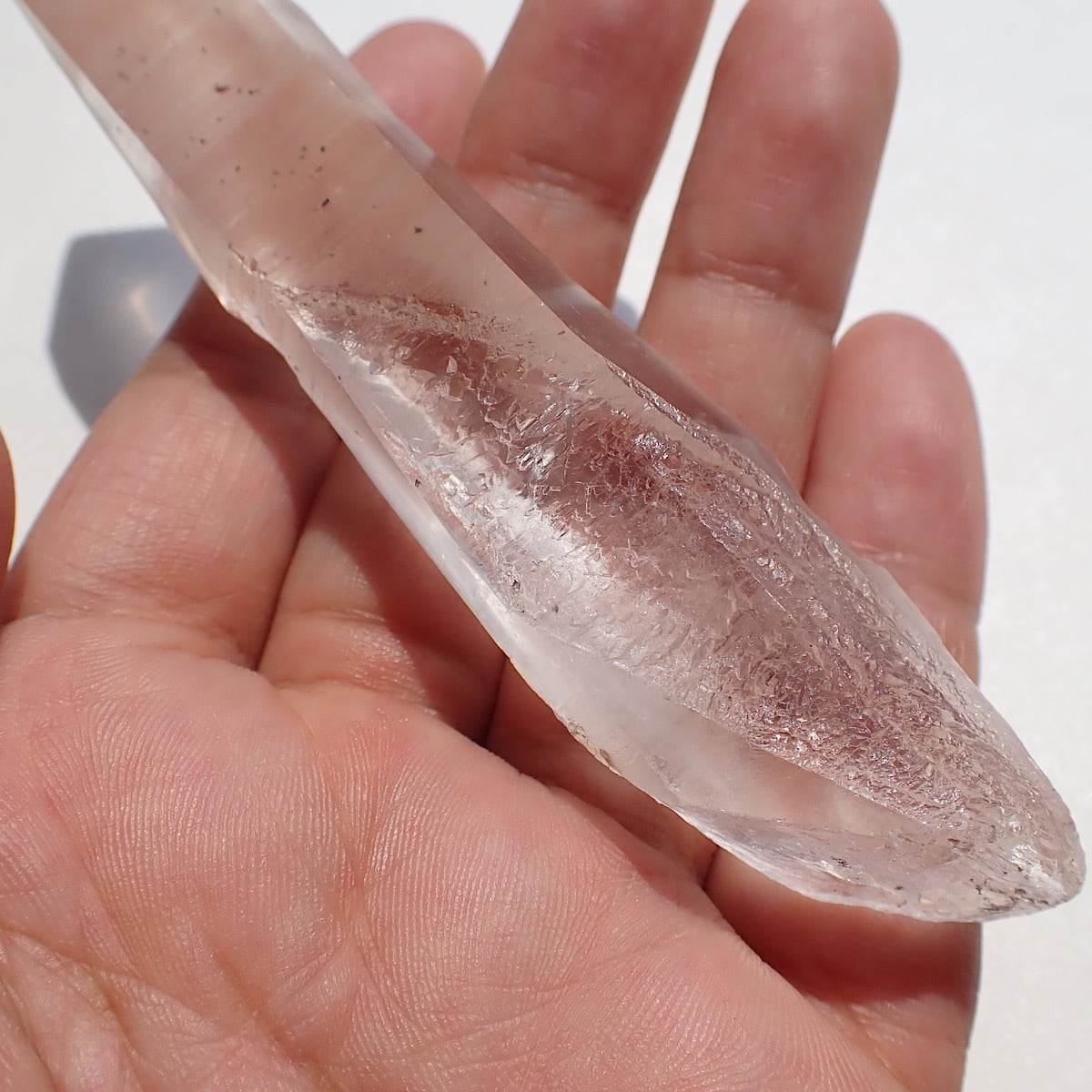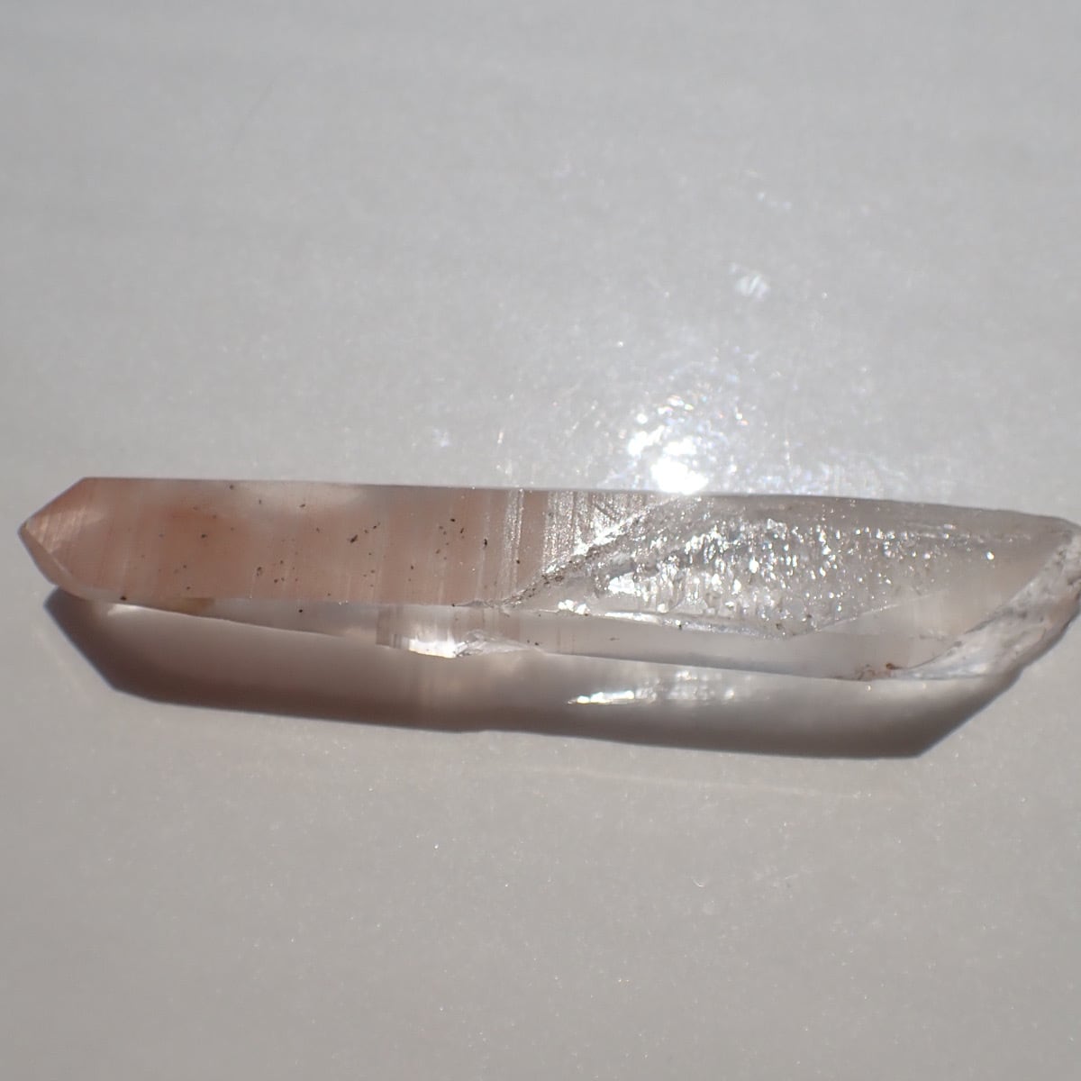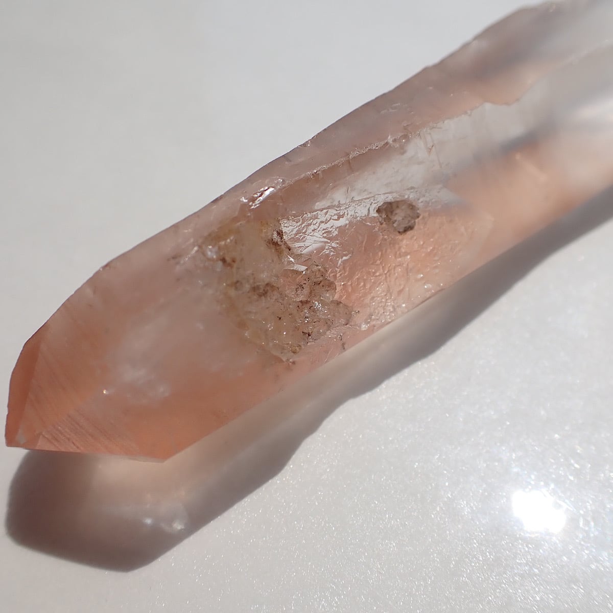 ブラジル・カブラル産のピンクレムリアンシードです。横に欠けや剥離がありますが個性的な形でとても素敵です。このクリスタルの剥離痕にはどんな記憶、記録が刻まれているのかと考えてしまいます。