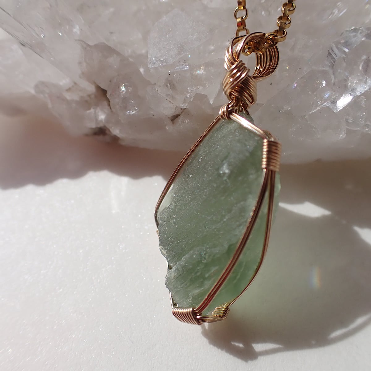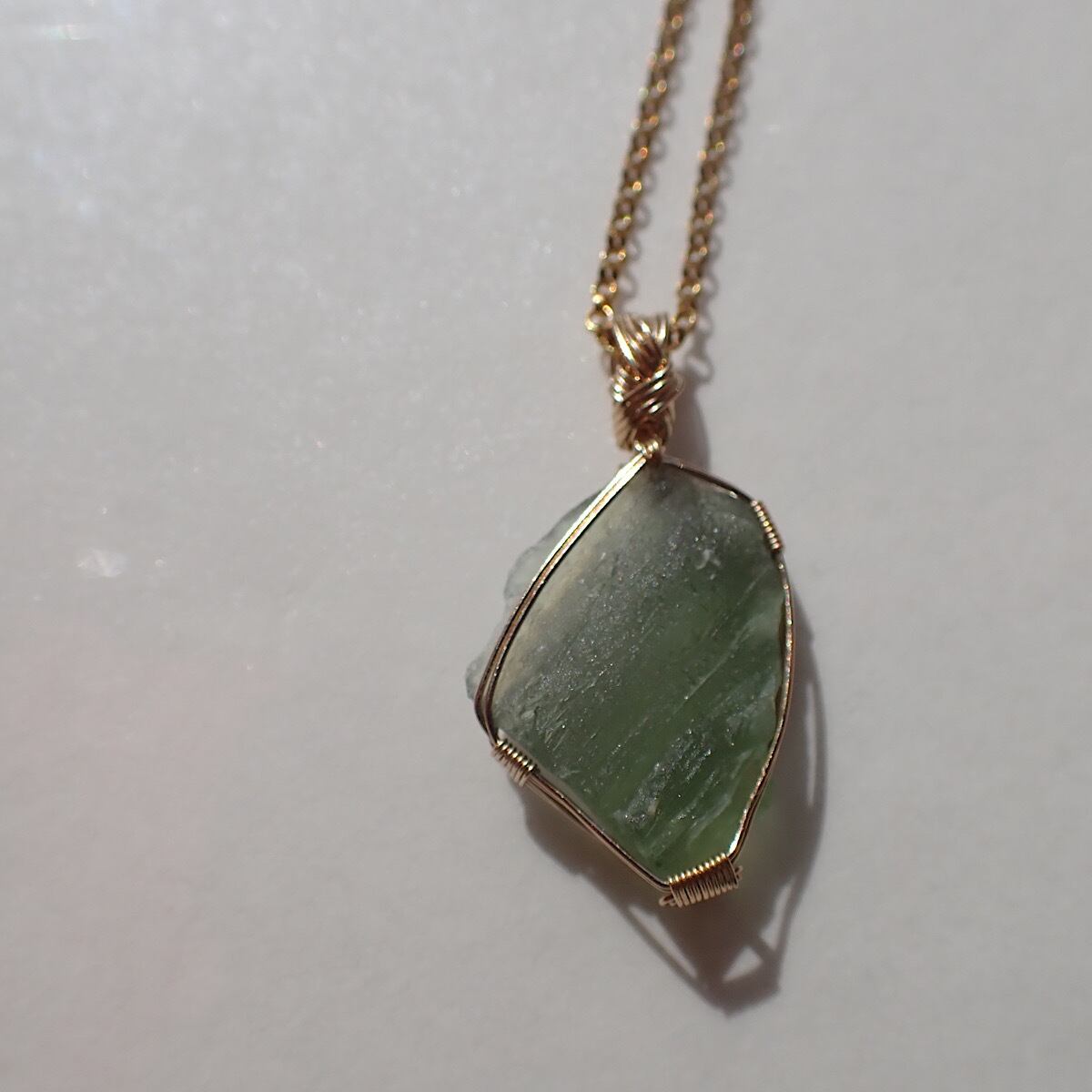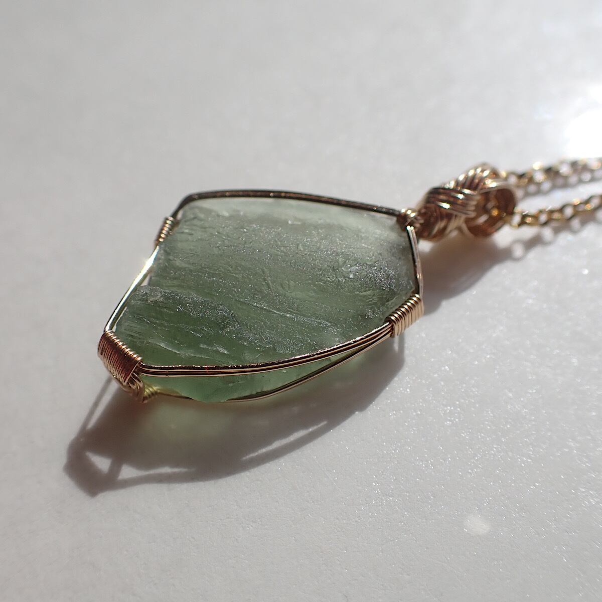 小さなモルダバイト原石です。厚みがないので優しいグリーン、オリーブカラーのような印象です。