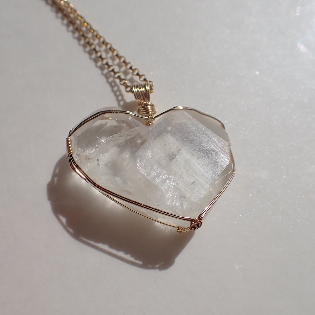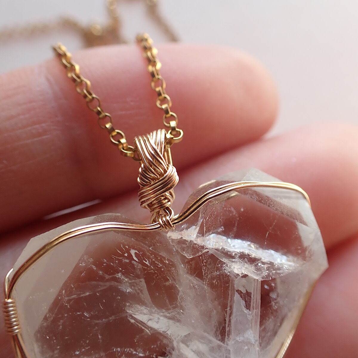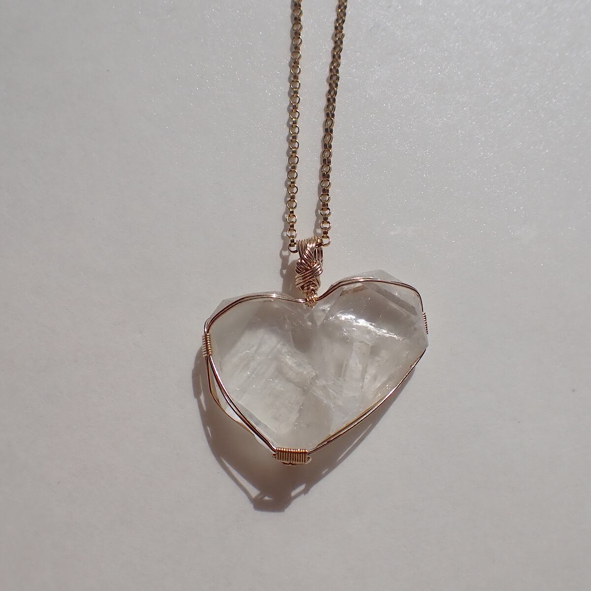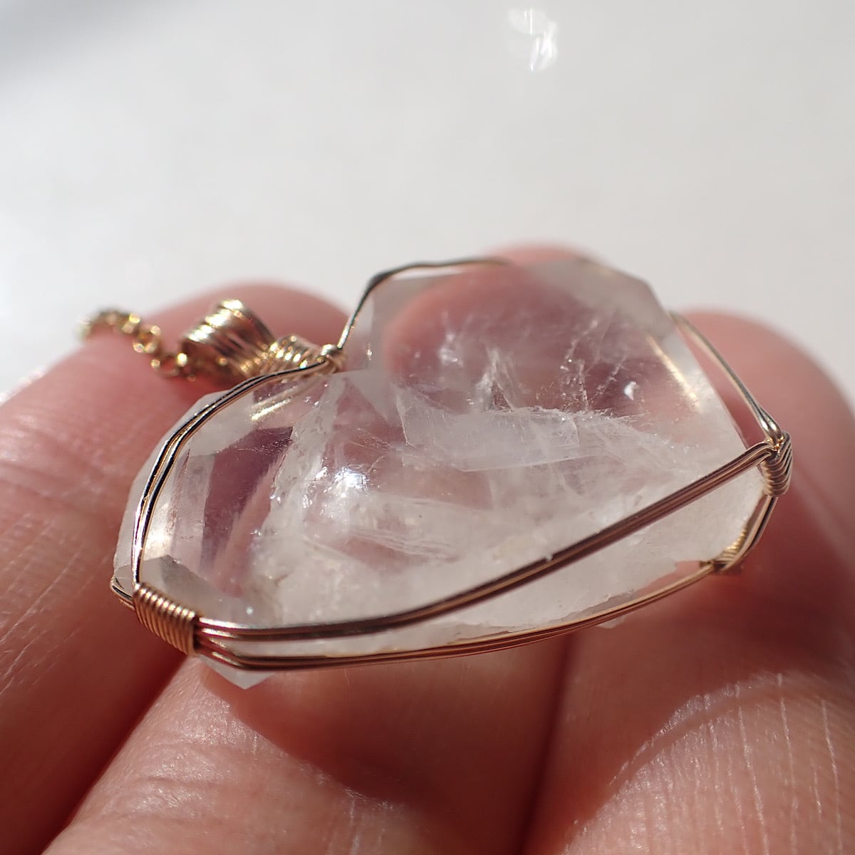 長崎県産の日本式双晶水晶です。ハートに近いの形だったのでそれをいかして女神巻きジュエリーにお創りしました。この形、石を見ているとハイヤーセルフとの統合を高めてくれる気がしてきます。本来私たちはいつでも完全体であるという意識を思い出させてくれるのかもしれません。素敵な水晶です。