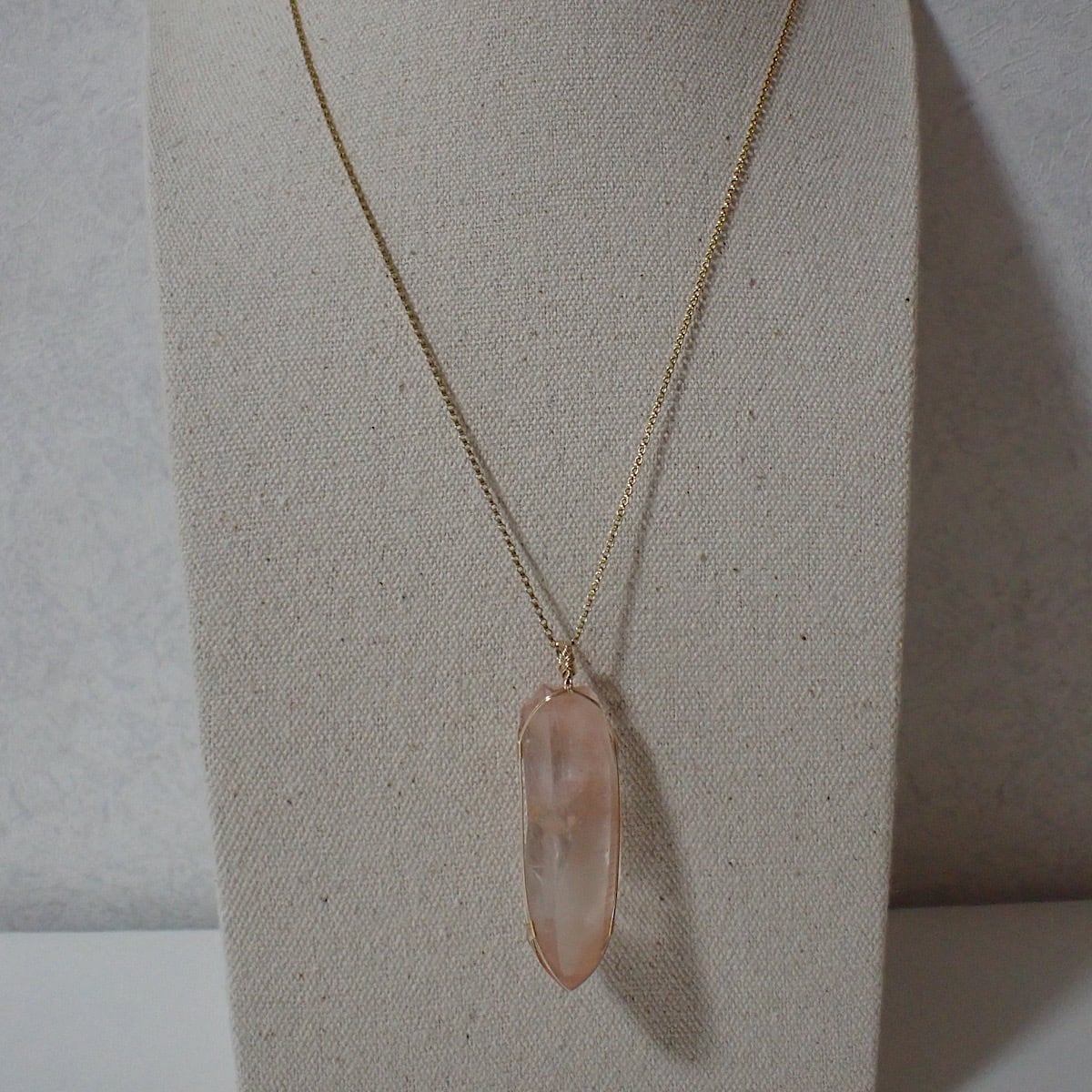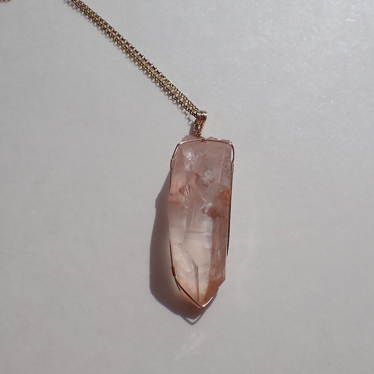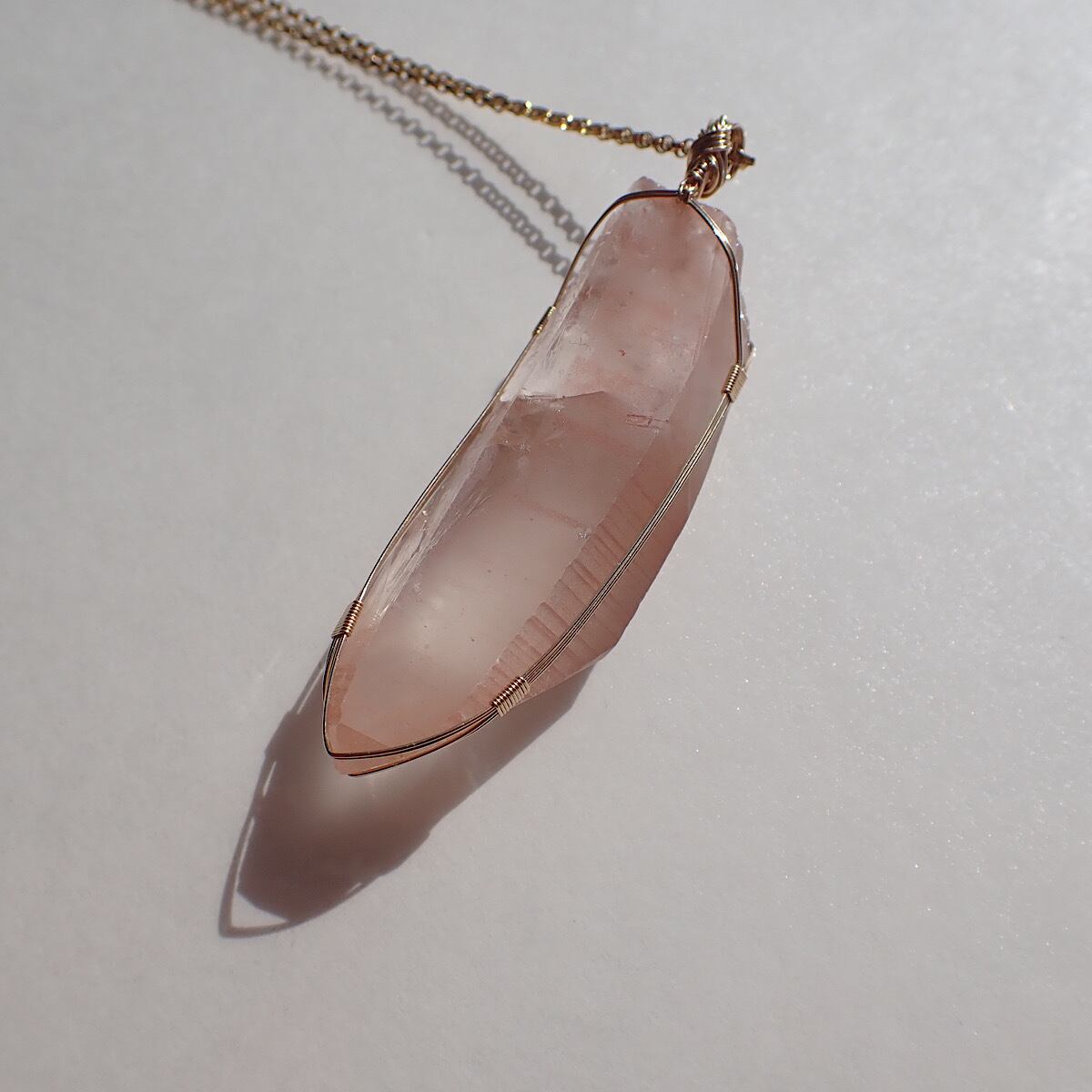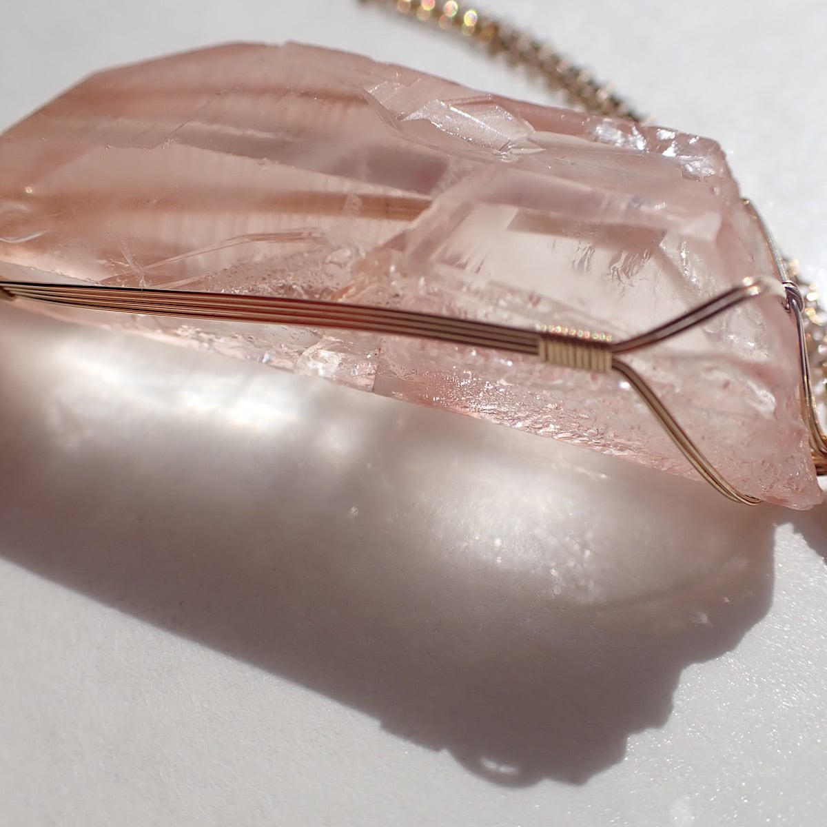 ブラジルのピンクレムリアンの女神巻きジュエリーです。いくつかあったピンクレムリアンの中からこちらが気になってお迎えしました。周囲にあったであろう水晶の痕跡を残しているような模様がとても素敵です。かわいくて癒されるピンクレムリアンです。